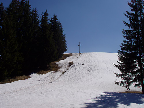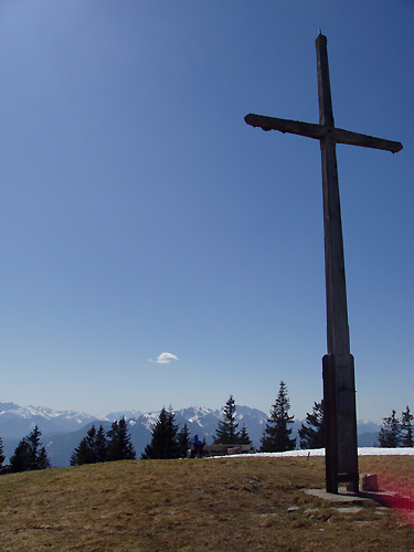 von dort zu Fuß auf den Gipfel. Das momentane Wetter ist ideal für die sonnseitige Tour. Der Weg war trocken und schneefrei.