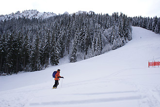 Tourenverhältnisse: Man kann vom Parkplatz mit Ski losgehen, Schneehöhe ca. 30 cm, grundloser Pulver.