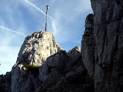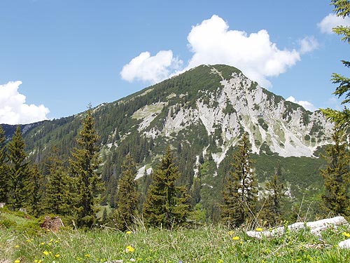 Aufstieg: Zu Fuß über einen herrlichen Weg durch lichten Wald und später über Almwiesen, vorbei an der Rieselbergalm und zur Ritzelbergalm. Weiter über die Südflanke hinauf und über bröselige Rinne (mit fragwürdigem Drahtseilen), dann über den Latschenkamm zum Gipfel.