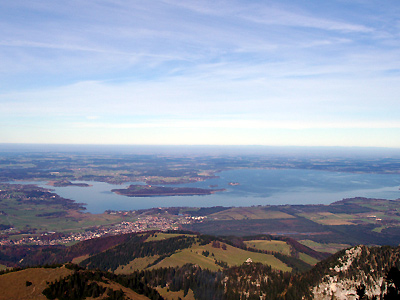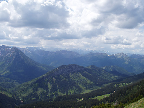 Die Sicht war nicht besonders gut und reichte nur bis zu den nächsten Gipfeln (Brauneck, Benediktenwand, Schönberg etc. Die Nordseiten dieser Gipfel dürften für Wanderungen noch nicht geeignet sein - da liegt noch viel Schnee.