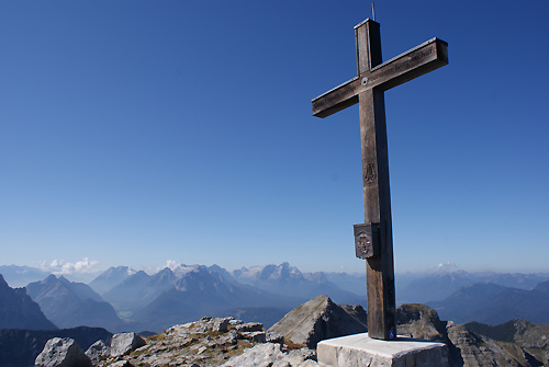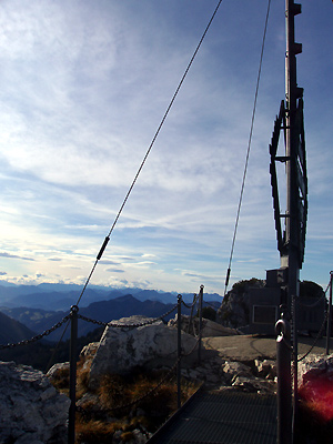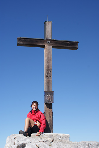 Aufstieg von dort zu Fuß über den markierten Weg, der direkt bei der Hütte beginnt und an einem Kreuz vorbei auf einen Rücken führt. Warum dort ein Schild "Steig nicht begehbar" auftaucht, ist mir nicht ganz klar. Der Weg führt u. a. durch ein schönes Moor und über ein paar Holzstege, von denen einige durchgeknickt sind. Derzeit kann man diese Stellen trockenen Fußes umgehen. Später mündet man in die markierte Route, die von der Bayer. Wildalm heraufführt und erreicht so von der Südseite den super aussichtsreichen Gipfel.