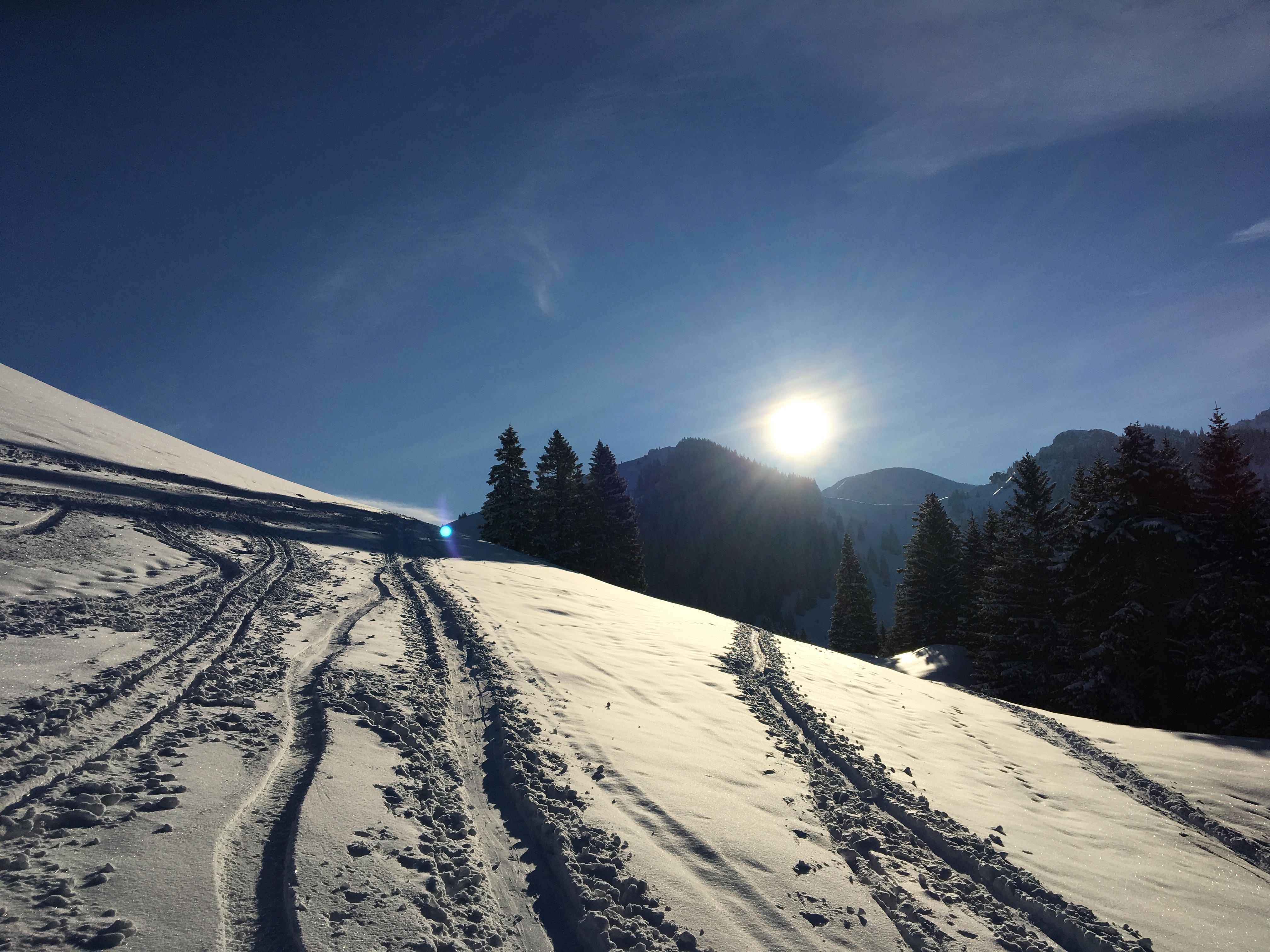 Sonstiges: Am Rauhkopf-Gipfelhang schöner Pulver auf gefrorenem Untergrund, ab Schönfeldalm talwärts Harsch und Eis.