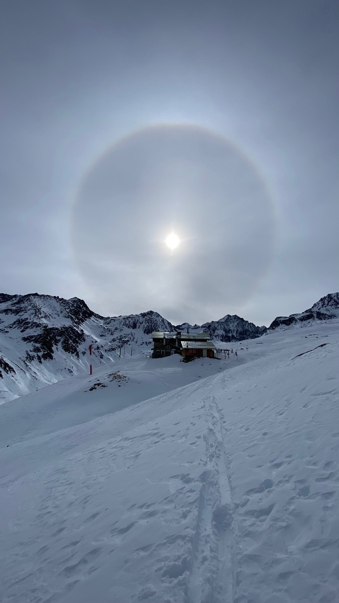 Gute Bedingungen, schattseitig Pulver, südseitig Firn, ab P Hochfügen mit Ski möglich auf der Rodelbahn, geringe Law Gefahr, zw. 15 und 20 cm Pulver,