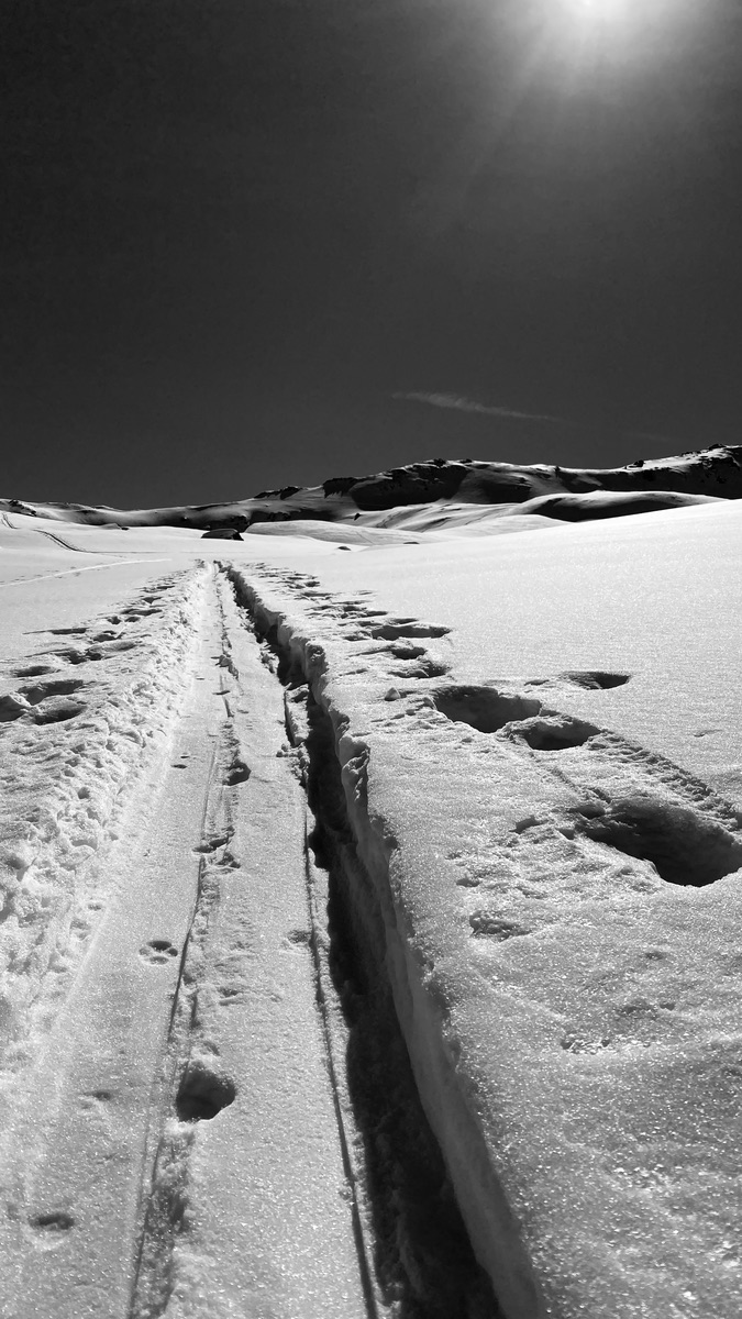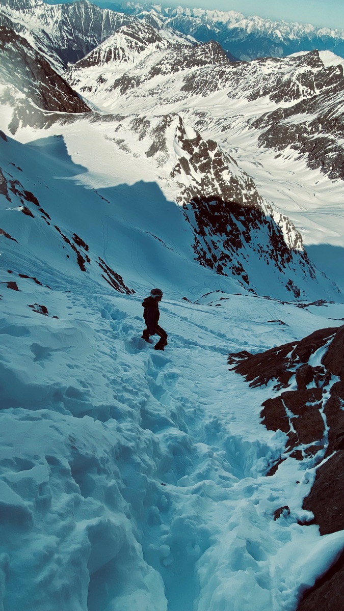 Noch zweimal wiederauffellen, unten am Mittelleger eher schon wenig Schnee, geht aber noch a zeitlang