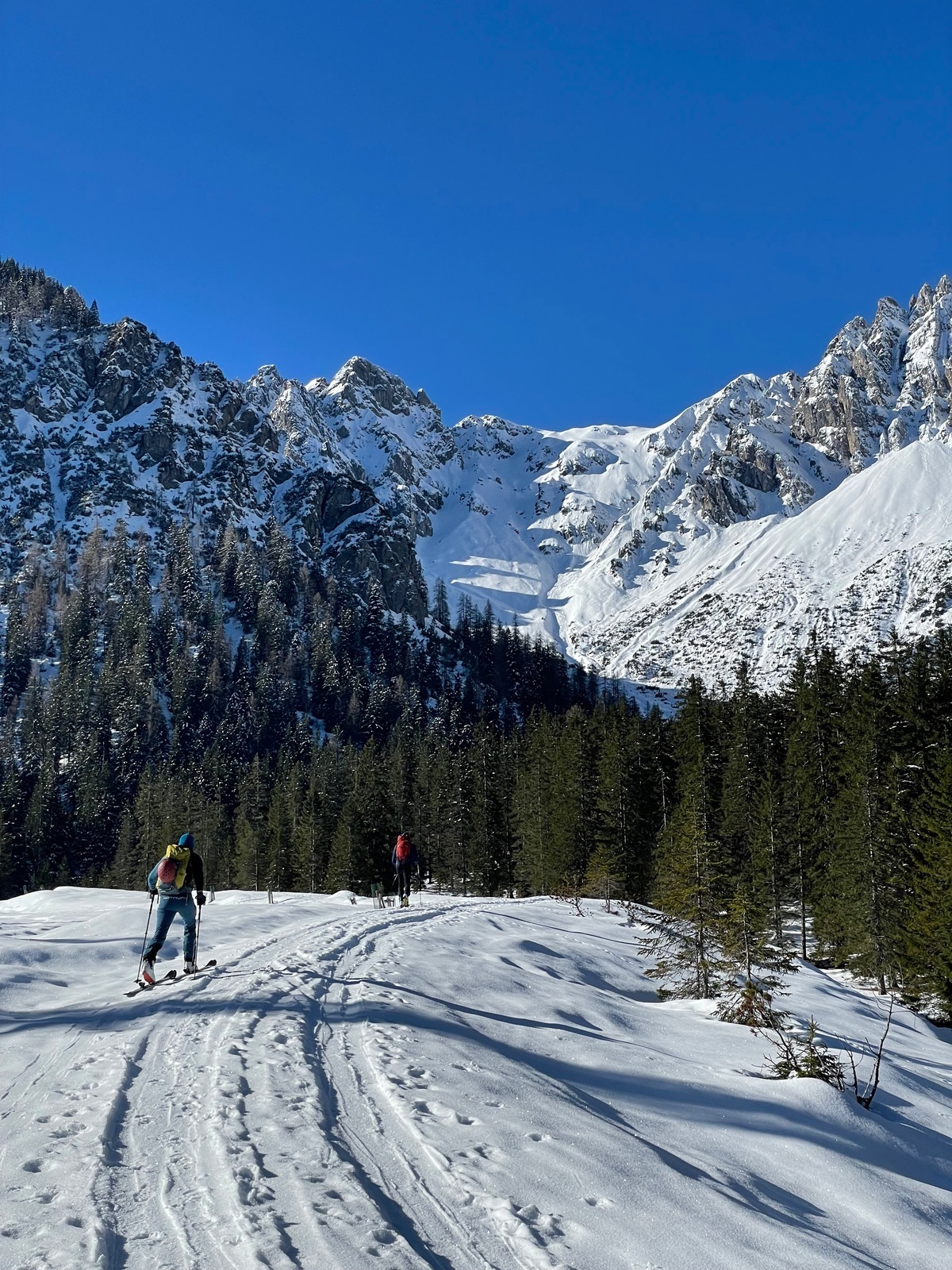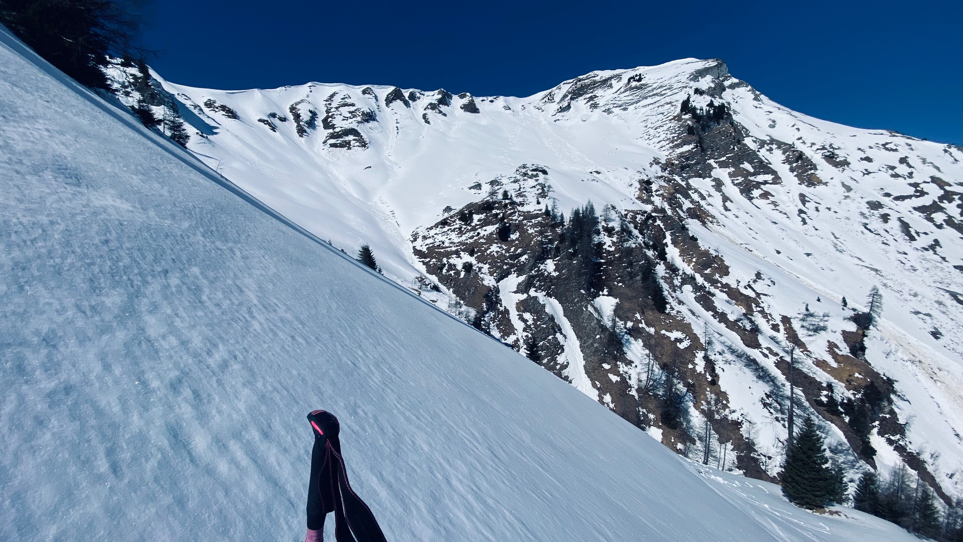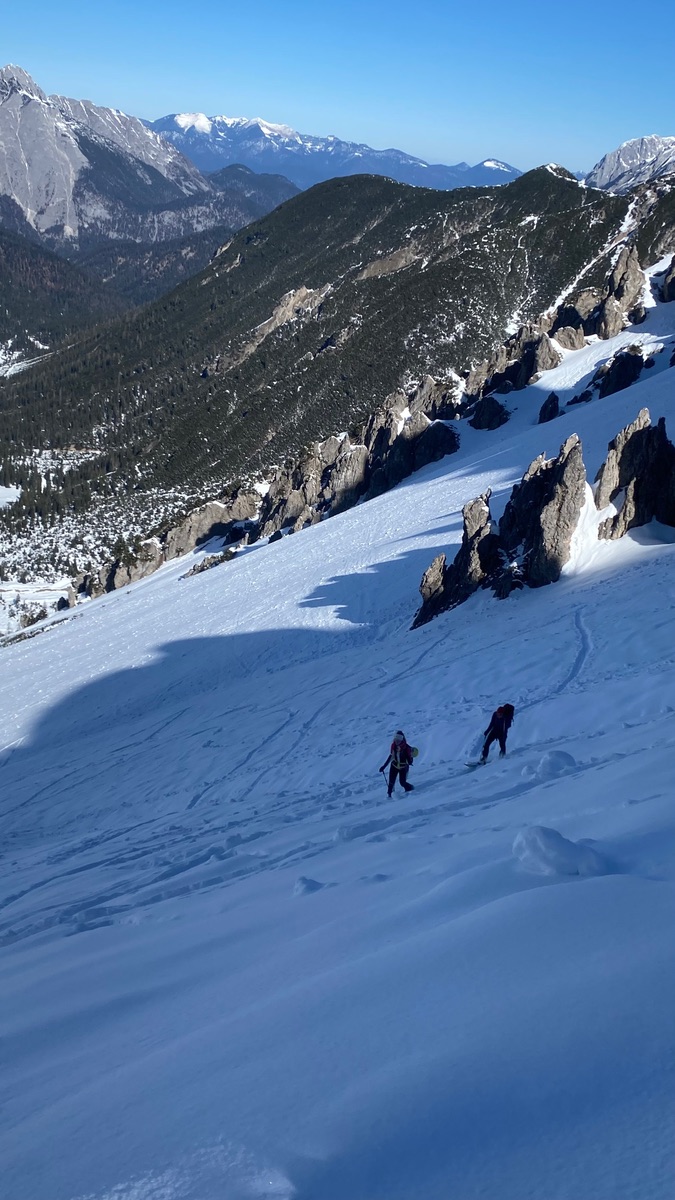 Per Bike den Forstweg ins Unterautal, Schnee ab der Messstelle Ri Gröbner/ Retherkopf. Süd/Südosthänge schneefrei, nordost/ ostseitig hart gefroren bzw. gegen 9-9.30 Ihr super aufgefirnt 😊 sehr lohnend, ca. 200 hm feinster Firn, wenn man mehrmals aufsteigt, außer Gemsen niemand😁