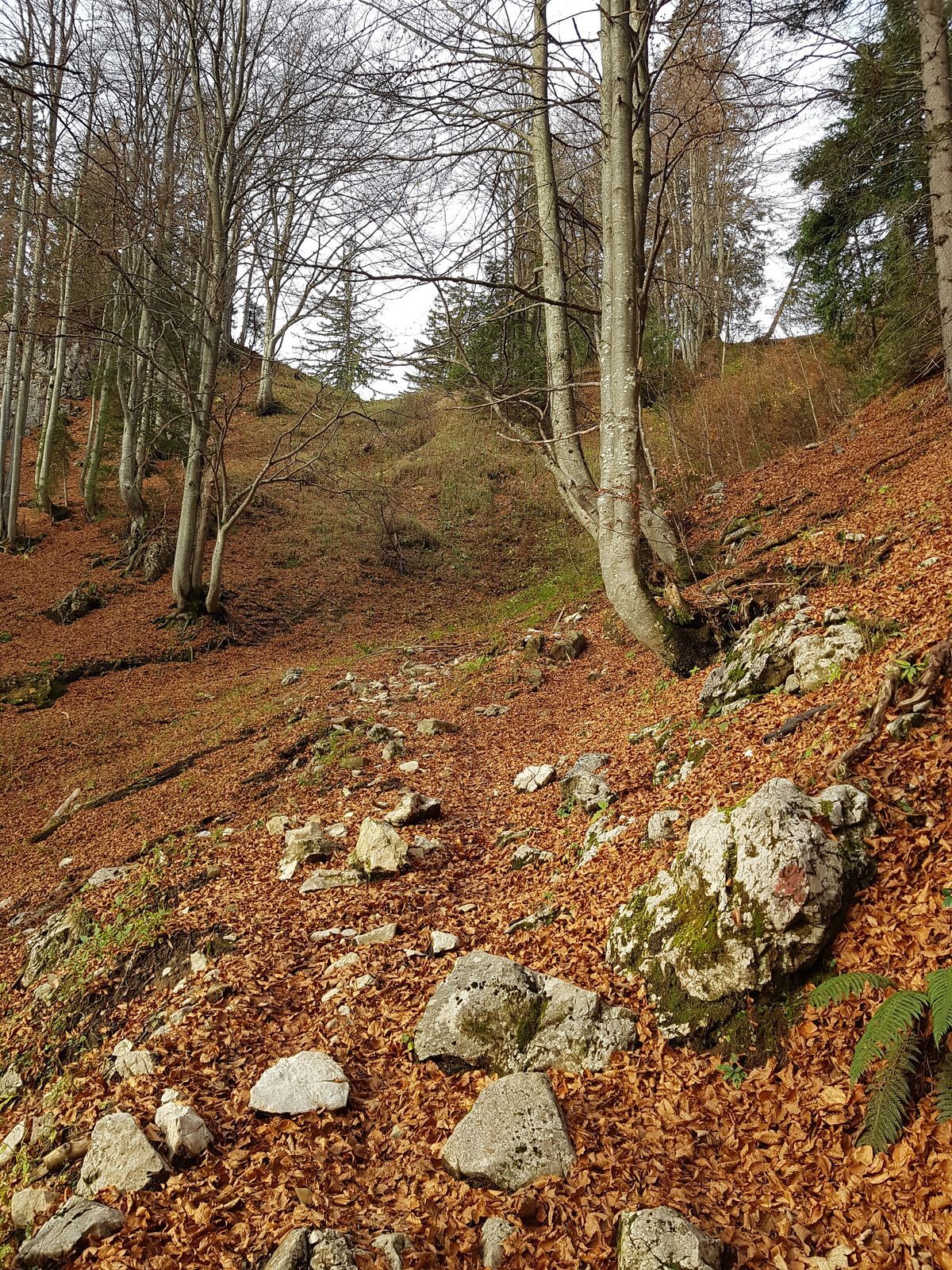 über den "Skihang" hinauf - mehr ausgetreten, nachdem die beiden Wege zusammen gekommen sind
