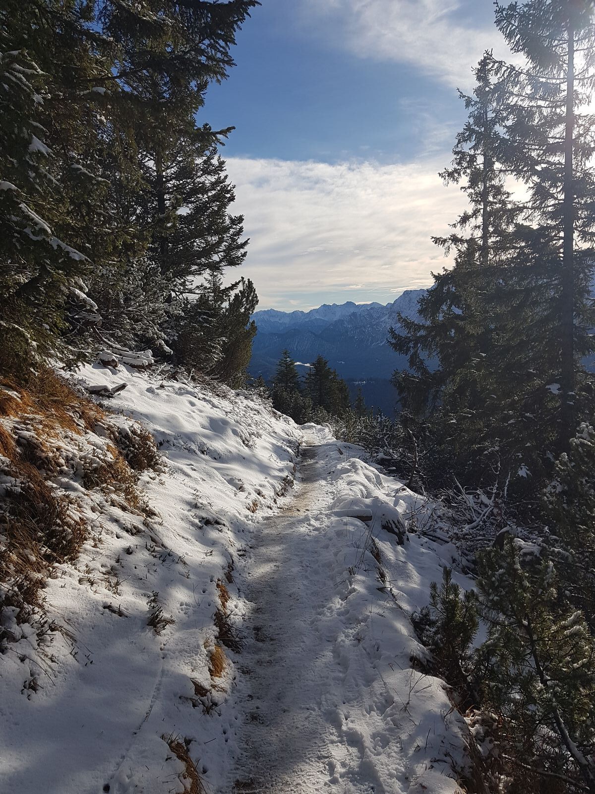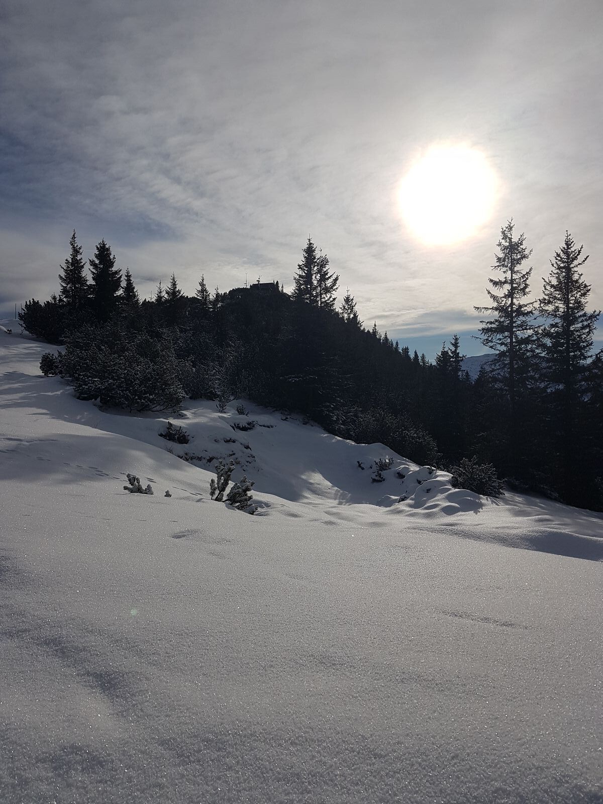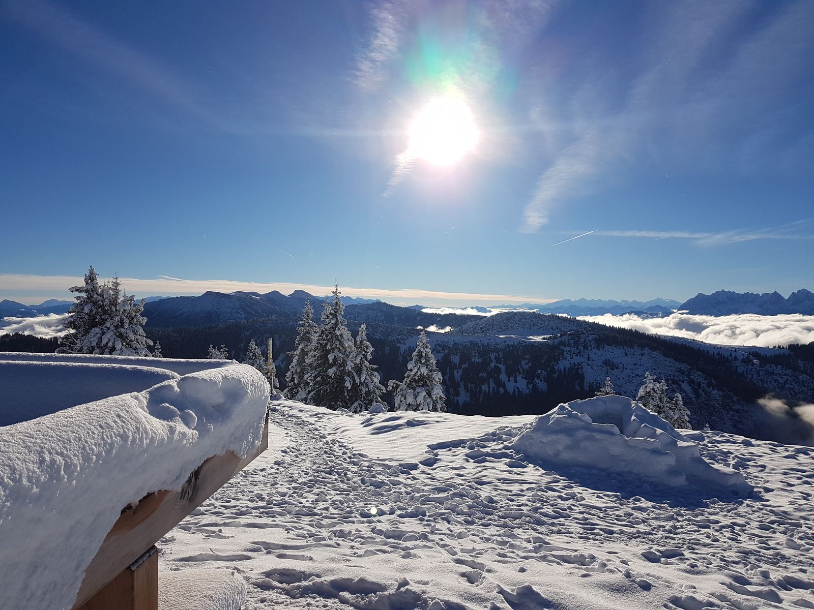 Aufstieg über Jägersteig problemlos möglich. Erst ab ca. 1300m geschlossene Schneedecke, aber Sulzingalm / ca. 1500m dann deutlich mehr Schnee. Es gibt eine gute Stapfspur (aber anscheinend nicht so häufig begangen) auf dem oberen Weg unterhalb der Wandspitze sowie eine stärker begangene Spur direkt runter zur Bergwachthütte. Morgens Spuren hart, mittags in der Sonne aufgefirnt wie an Ostern. Im letzten Stück einiges Schnee in den Latschen, dadurch kaum Felsstufen, sondern "Mini-Schnee-Hänge", aber machbar. Leute sind von allen Seiten hoch gekommen. Priener Hütte hat noch bis 26.12. zu, es gibt aber Getränke zu kaufen. Rodelstrecke großteils aper, unten im Schatten dann aber längere Stücke mit hart gefrorenem Schnee. Der Steig / die Abkürzung der Fahrstraße ist dagegen komplett schneefrei.
