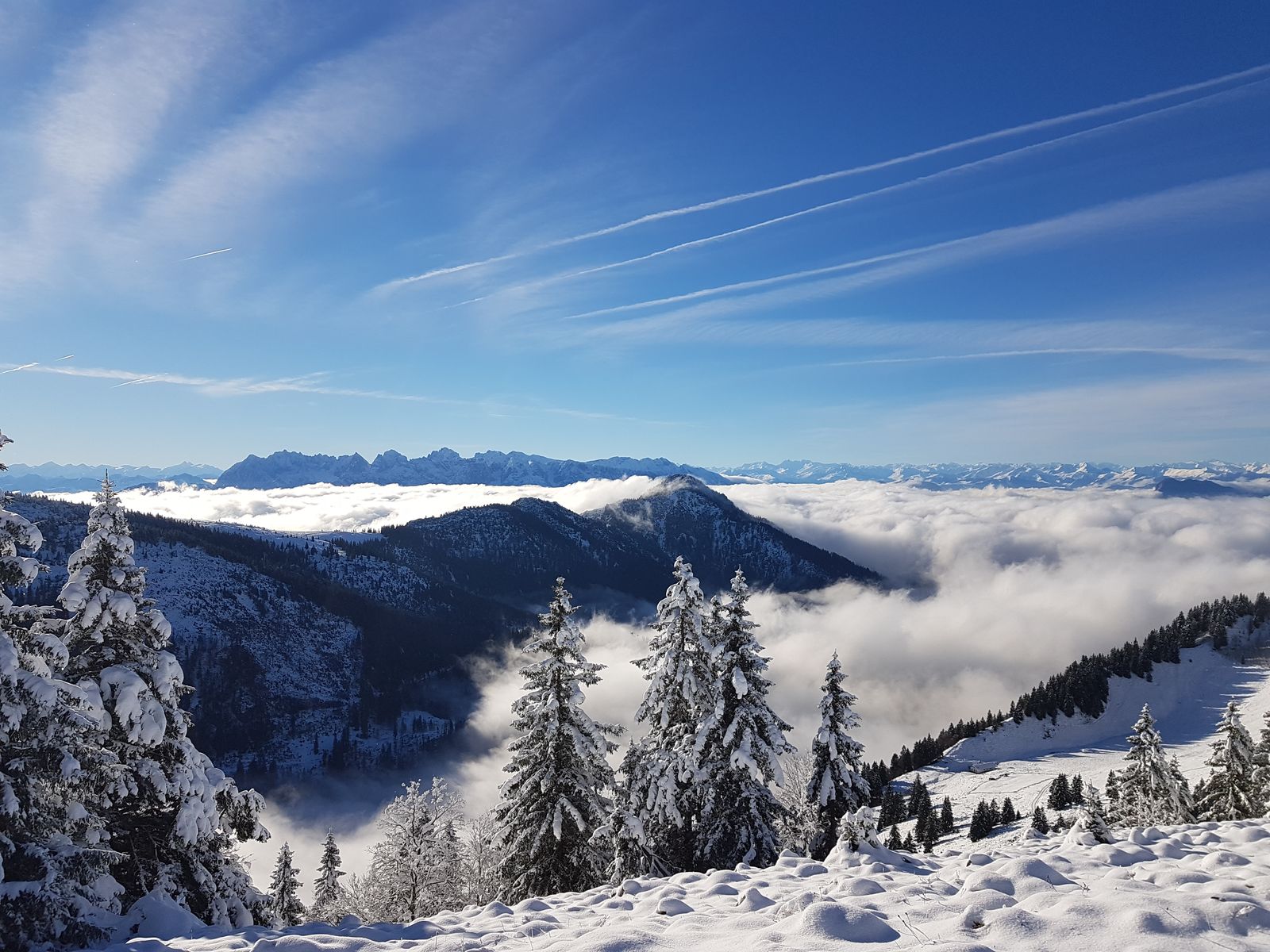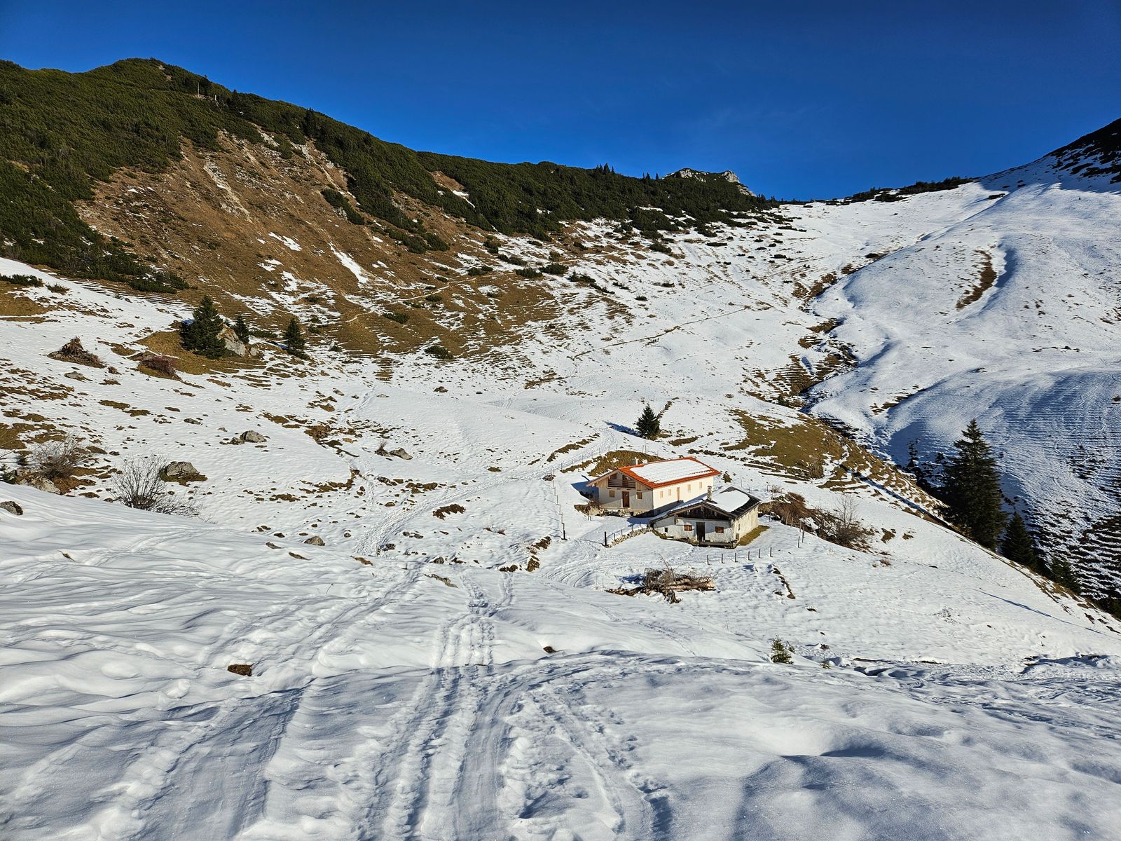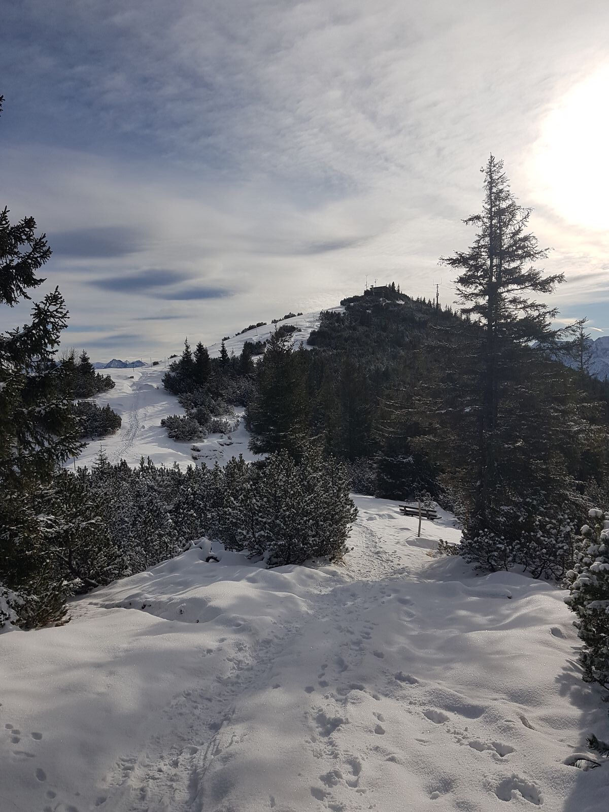 Aufstieg über Jägersteig problemlos möglich. Erst ab ca. 1300m geschlossene Schneedecke, aber Sulzingalm / ca. 1500m dann deutlich mehr Schnee. Es gibt eine gute Stapfspur (aber anscheinend nicht so häufig begangen) auf dem oberen Weg unterhalb der Wandspitze sowie eine stärker begangene Spur direkt runter zur Bergwachthütte. Morgens Spuren hart, mittags in der Sonne aufgefirnt wie an Ostern. Im letzten Stück einiges Schnee in den Latschen, dadurch kaum Felsstufen, sondern "Mini-Schnee-Hänge", aber machbar. Leute sind von allen Seiten hoch gekommen. Priener Hütte hat noch bis 26.12. zu, es gibt aber Getränke zu kaufen. Rodelstrecke großteils aper, unten im Schatten dann aber längere Stücke mit hart gefrorenem Schnee. Der Steig / die Abkürzung der Fahrstraße ist dagegen komplett schneefrei.