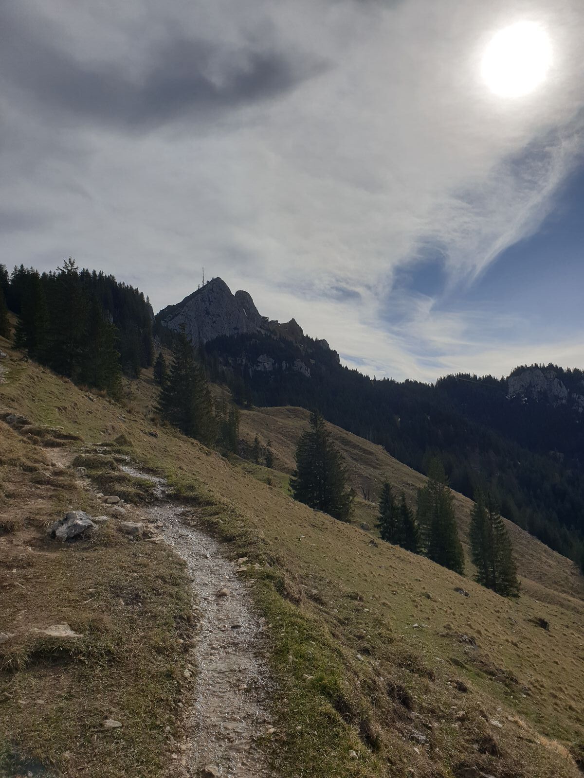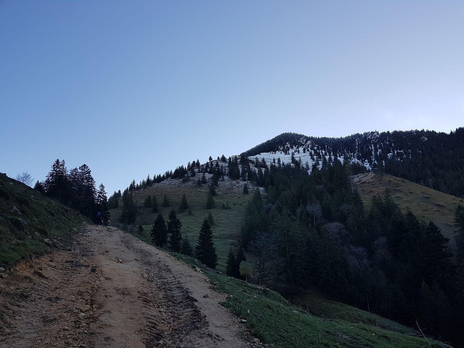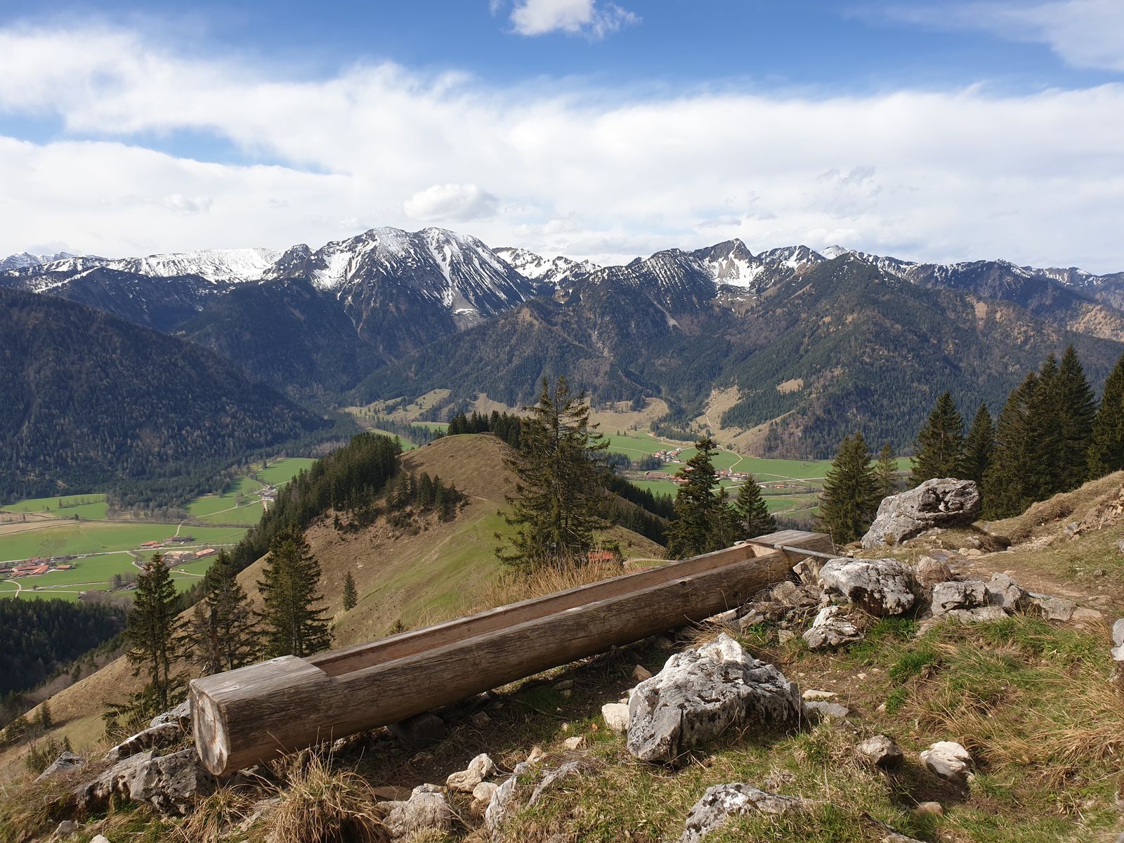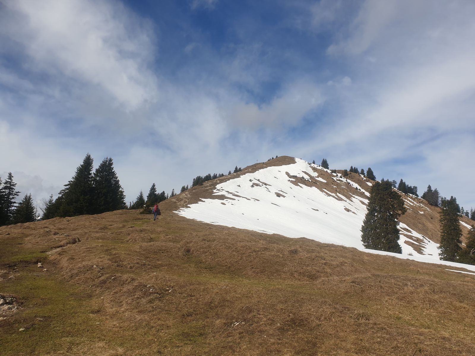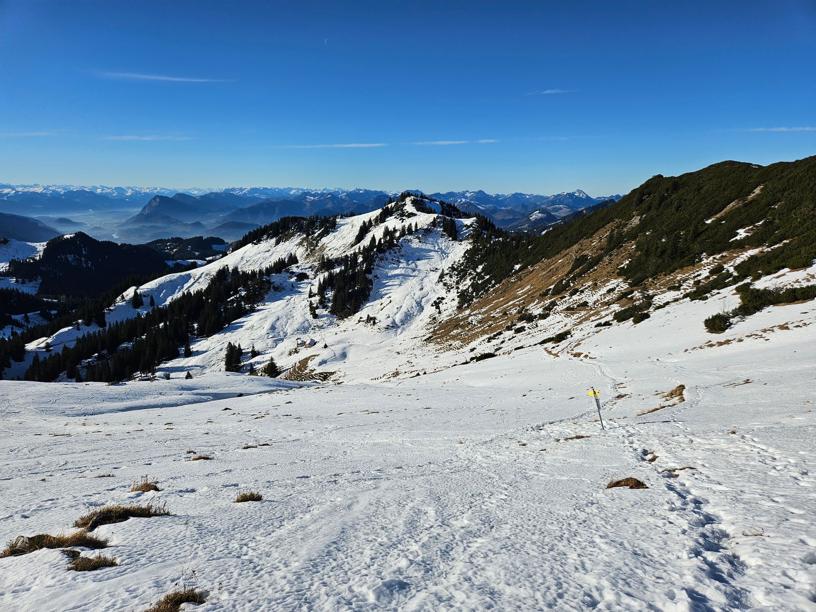 Blick Richtung Hochgern (rechts) hat ebenfalls nur noch eher wenig Schnee