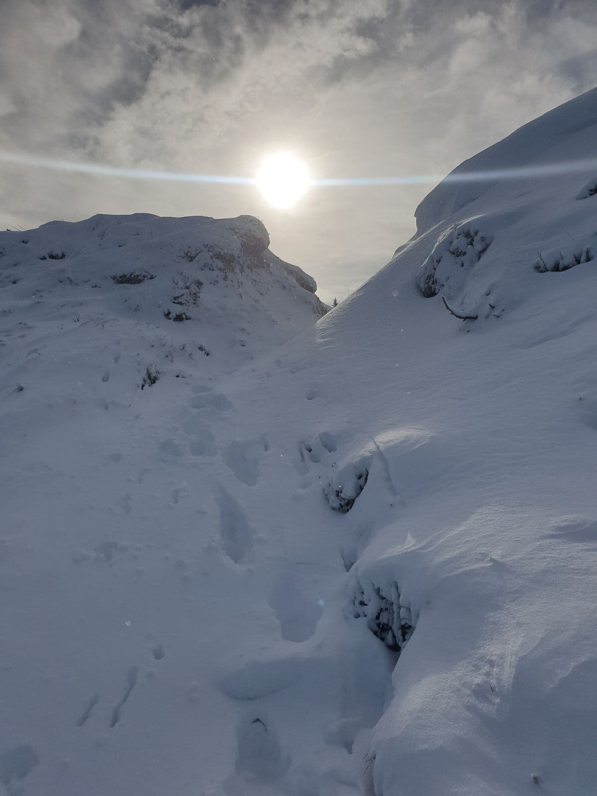viel Schnee ist bereits geschmolzen, trotzdem ist die Schneemenge zu Fuß nicht zu unterschätzen