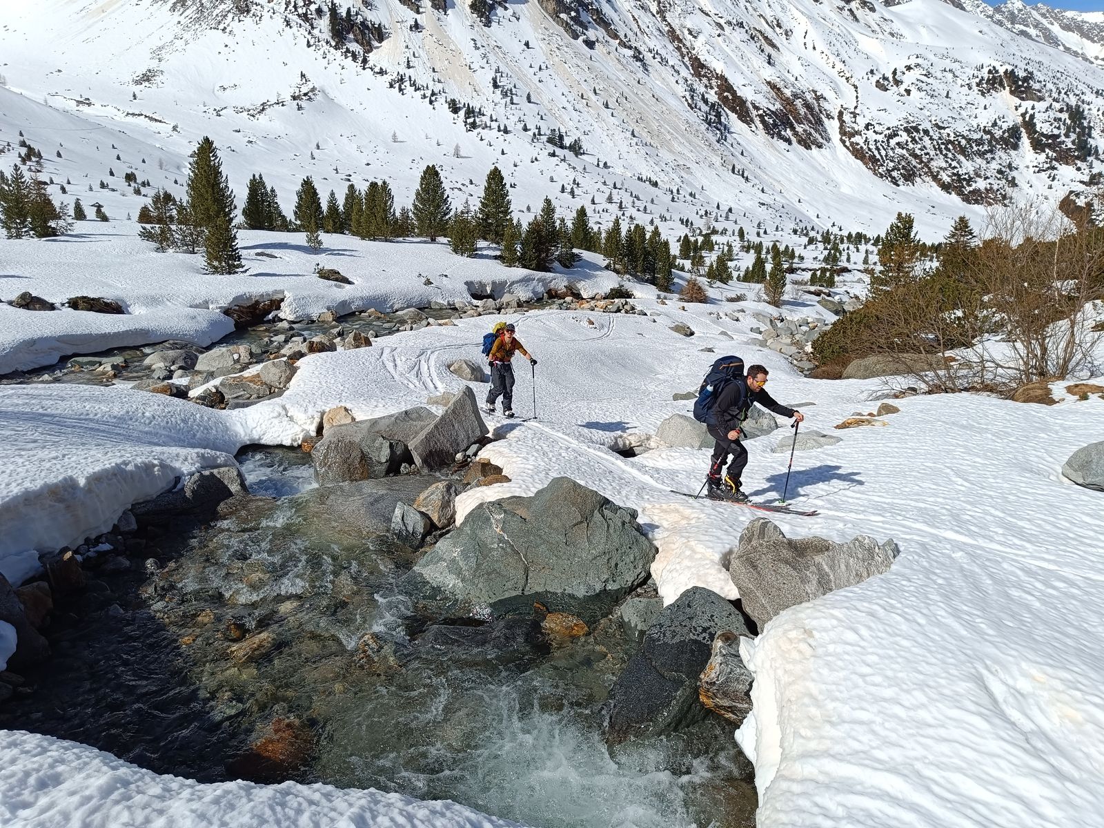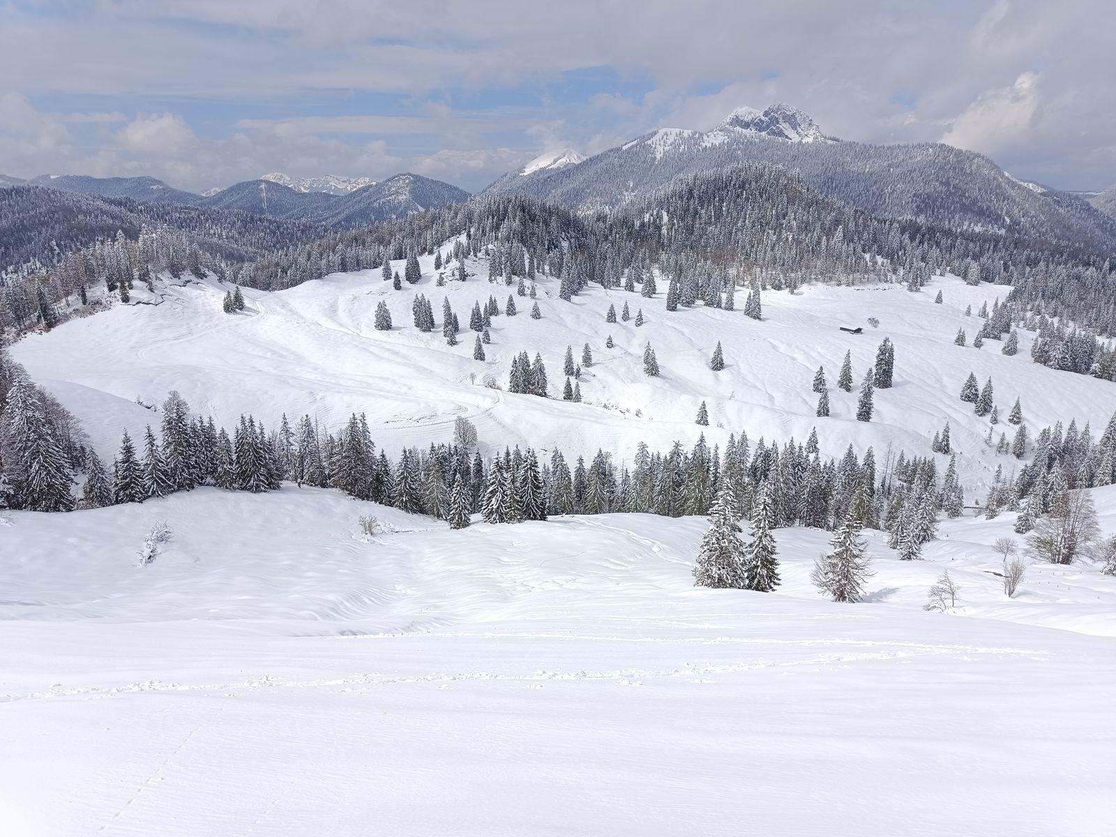 Lawinengefahr: nicht existent bei guter Zeiteinteilung; gefährdet ist hier ab spätestens Mittag der untere Teil der Kuhscheiben-Route, wo gestern und heute viele Nassschneelawinen runtergekommen sind.