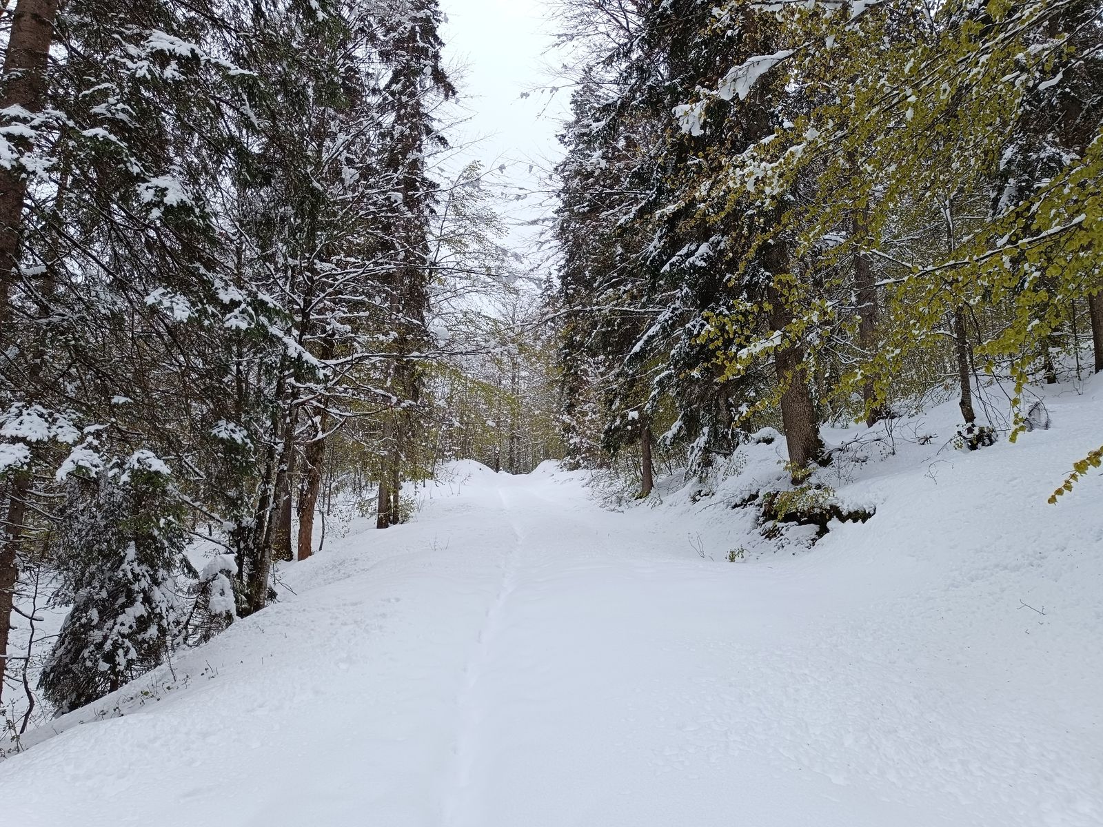 Auf der Forststraße zur Amberger etwa 90 Minuten Tragezeit.