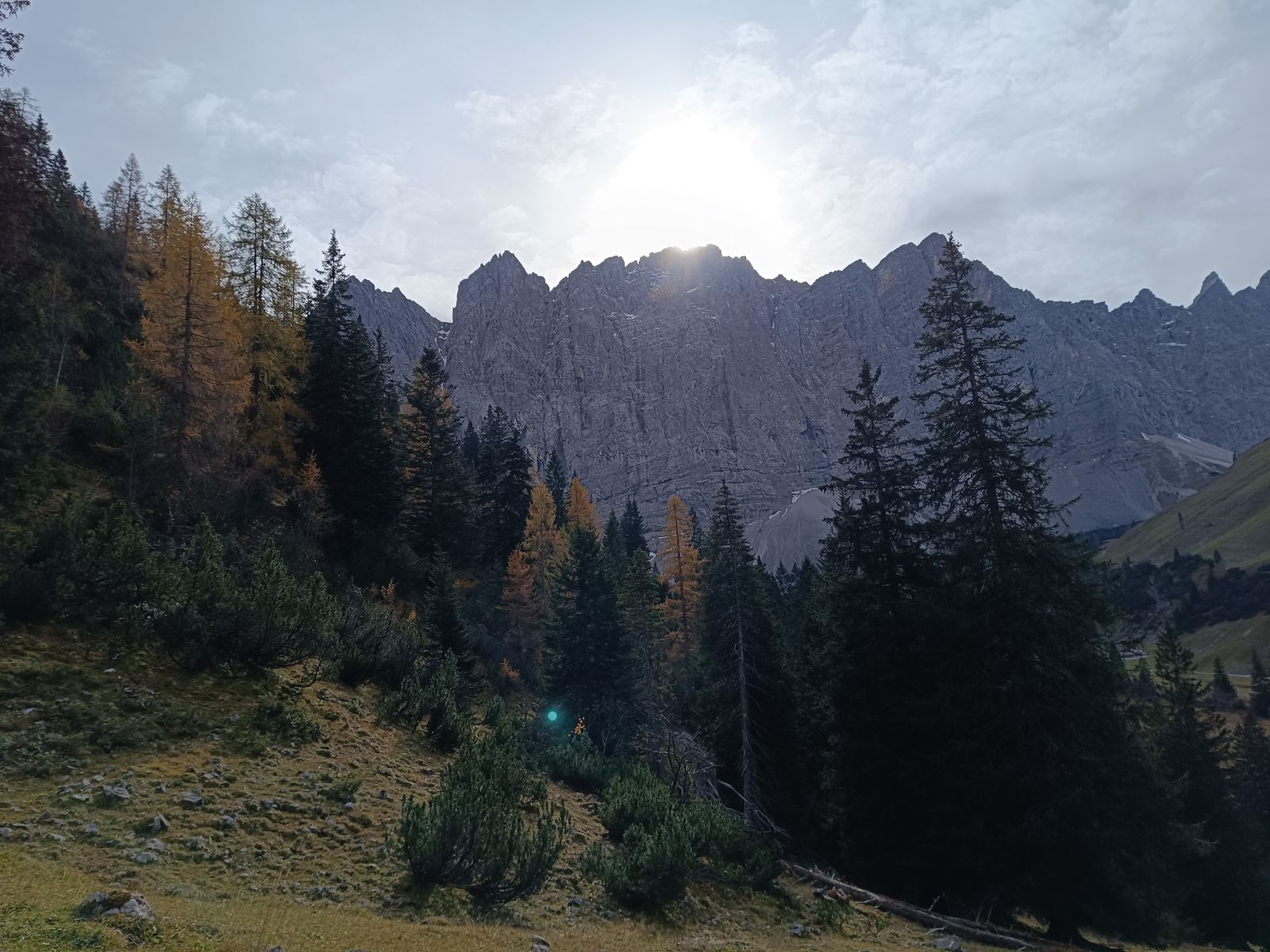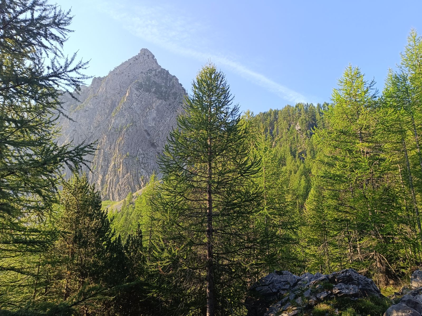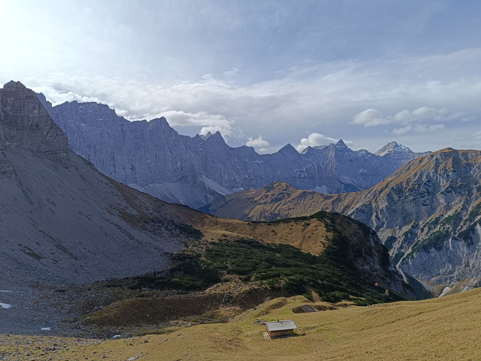 Heute bin ich in der Früh in die Eng gefahren und habe eine Rundtour aufs Gamsjoch gemacht. Hoch bin ich auf dem sehr steilen, aber unschwierigen Steig am Gumpenbach, der vor dem Gumpenjöchl auf den Hauptweg trifft. Über diesen zum Gipfel und wieder zurück ins Jöchl. Hier zweigt rechts unbeschildert und anfangs fast nicht zu erkennen ein Steig ins Lalider Tal ab, den ich sehr empfehlen möchte, auch wenn man dann zum Hohljoch nochmal 300 Hm Gegenanstieg hat. Diese Variante ist einfach wunderschön!