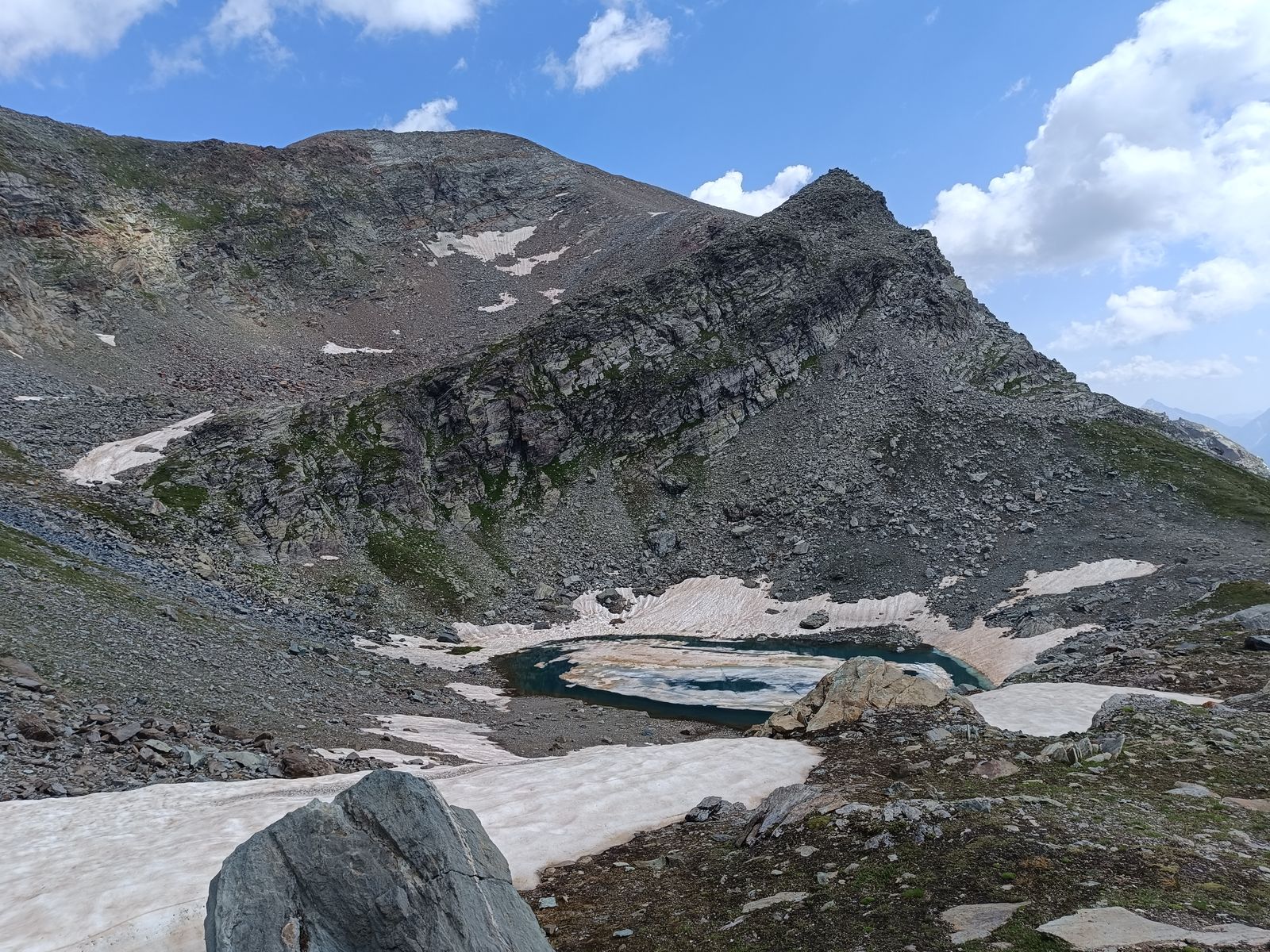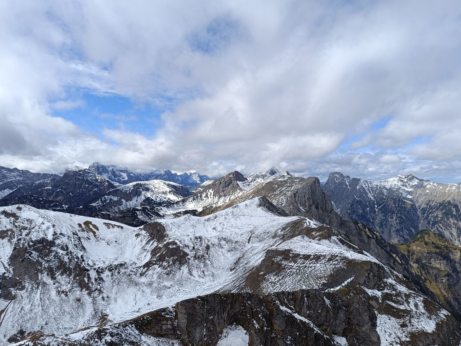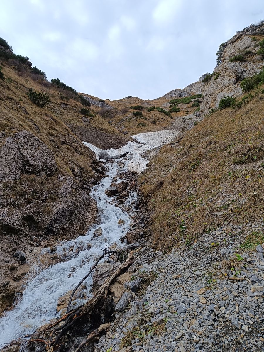 Heute bin ich in der Früh in die Eng gefahren und habe eine Rundtour aufs Gamsjoch gemacht. Hoch bin ich auf dem sehr steilen, aber unschwierigen Steig am Gumpenbach, der vor dem Gumpenjöchl auf den Hauptweg trifft. Über diesen zum Gipfel und wieder zurück ins Jöchl. Hier zweigt rechts unbeschildert und anfangs fast nicht zu erkennen ein Steig ins Lalider Tal ab, den ich sehr empfehlen möchte, auch wenn man dann zum Hohljoch nochmal 300 Hm Gegenanstieg hat. Diese Variante ist einfach wunderschön!