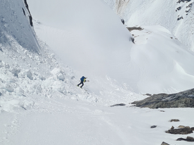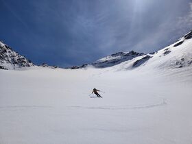 5: Guter Schnee in den steilen Mulden unter dem Gletscher.