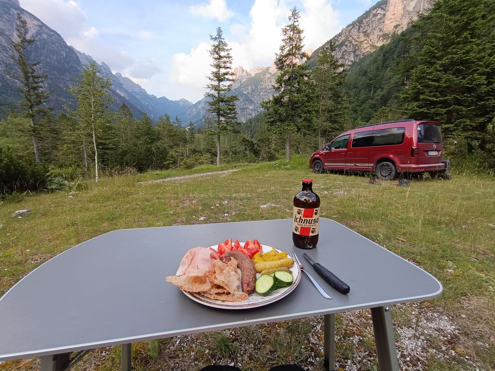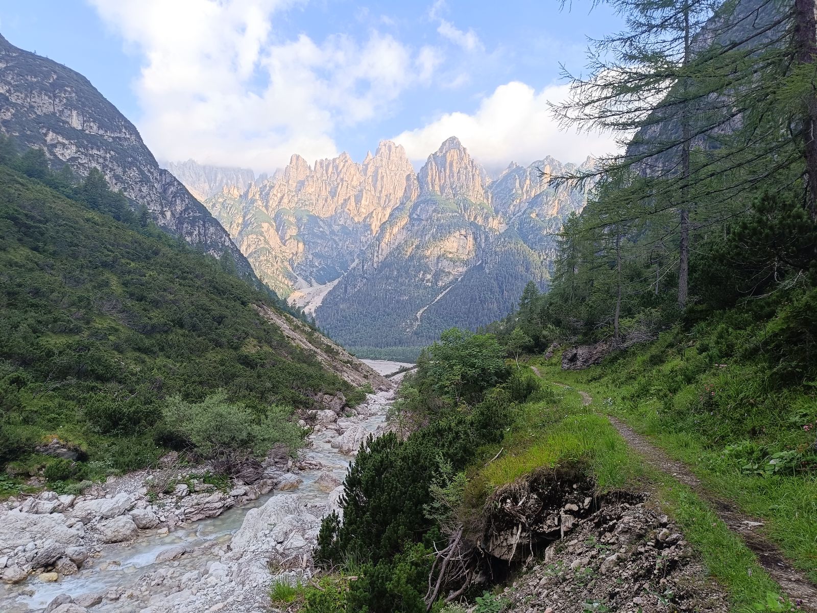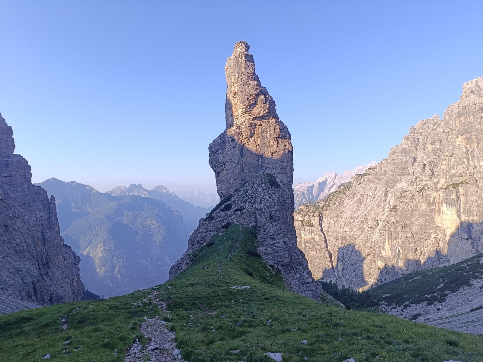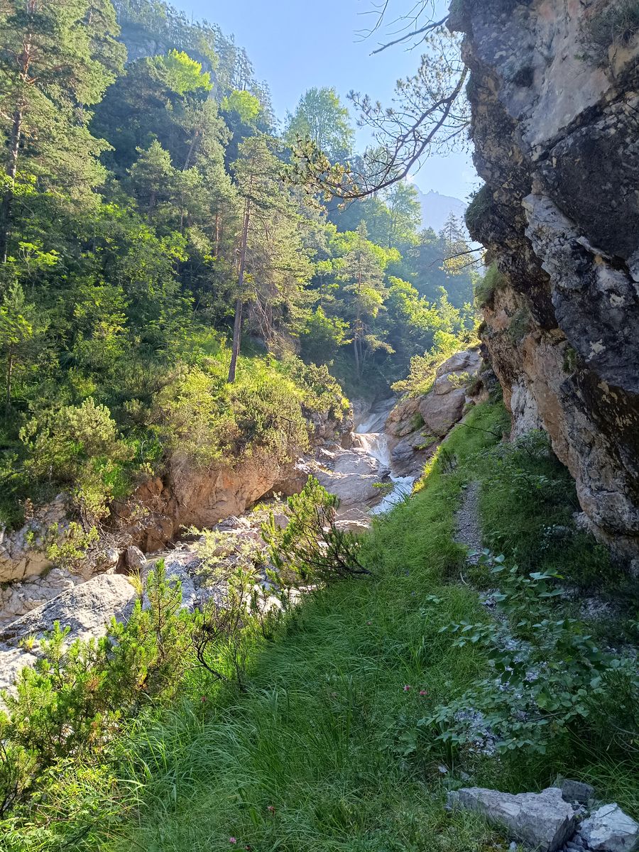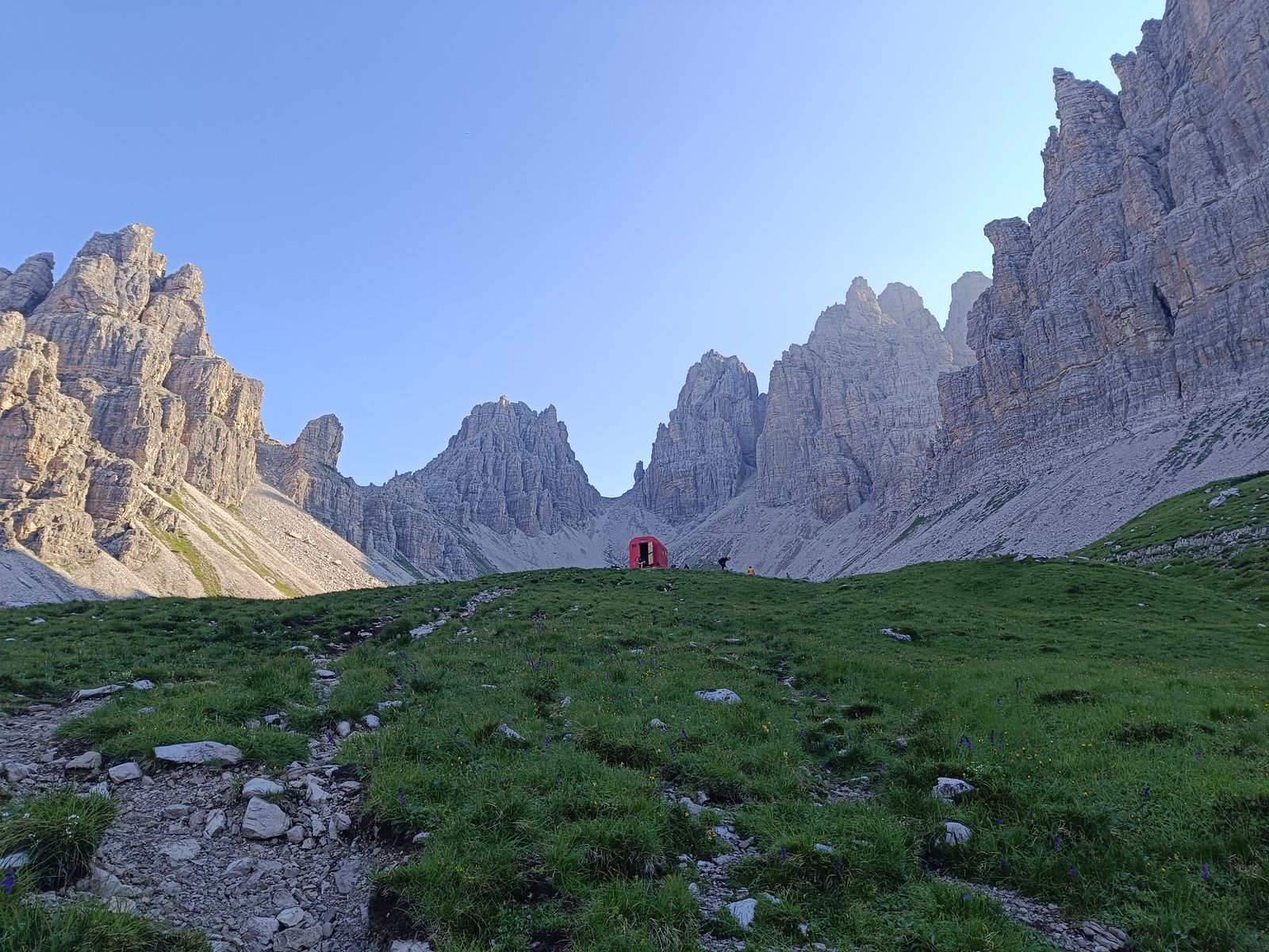 Grundsätzliches zu den Touren in den Friulanischen Dolomiten: Es gibt ein gut ausgebautes Wegenetz mit einigen Hütten und vor allem auch Biwakschachteln. Wirklich einfache Touren sind aber eher die Ausnahme. Bis auf wenige Hotspots (Campanile di Val Montanaia, wo am Samstag anscheinend 30 Leute campiert haben) sehr ruhig. Die Weidewirtschaft wurde hier übrigens mittlerweile aufgegeben.