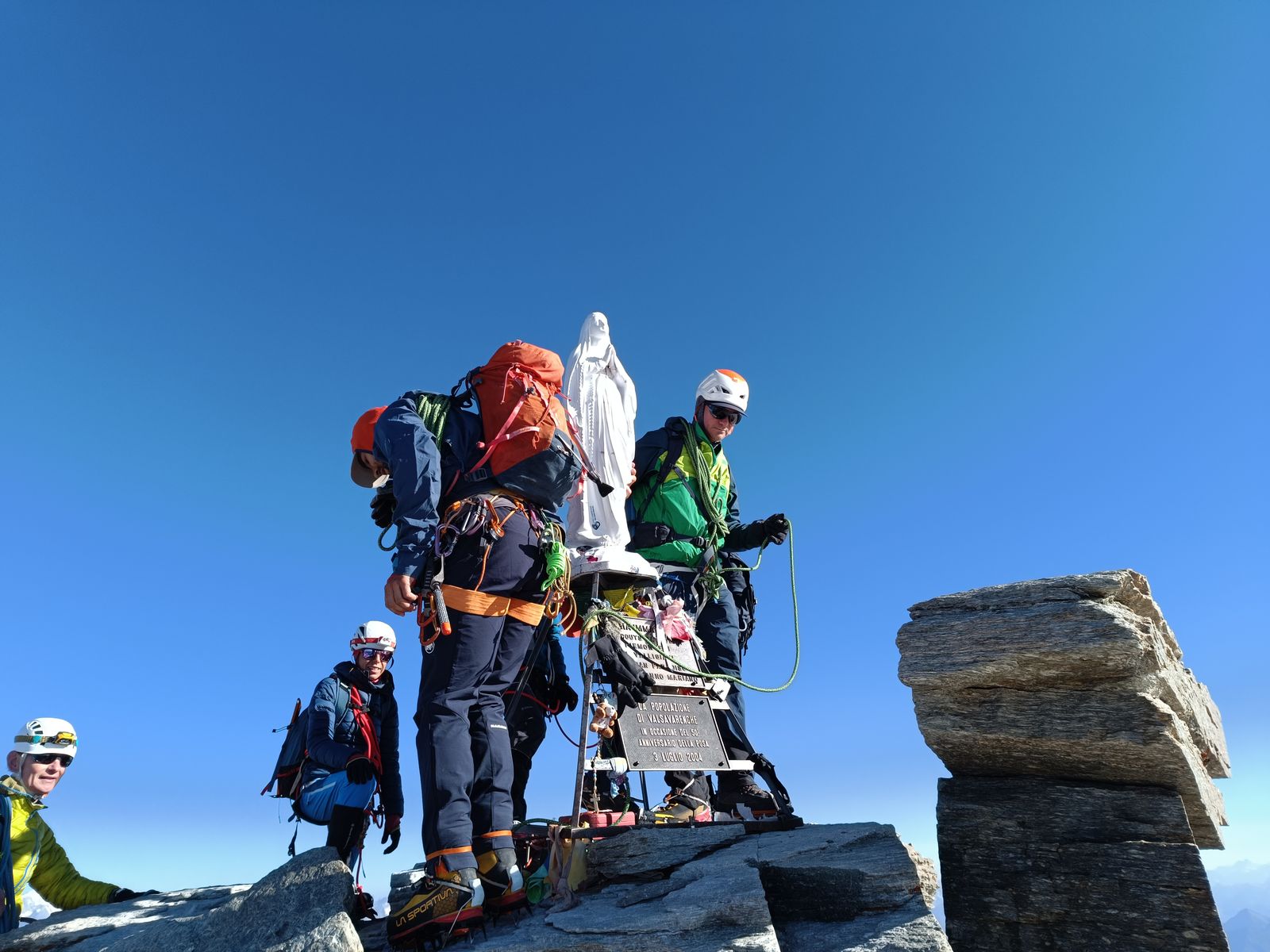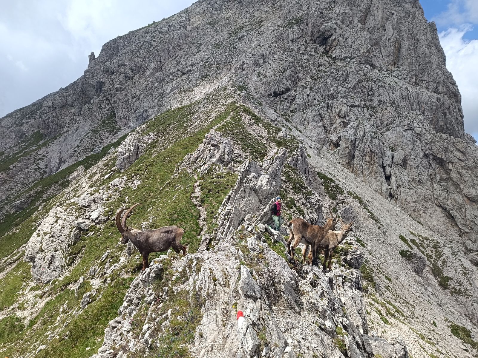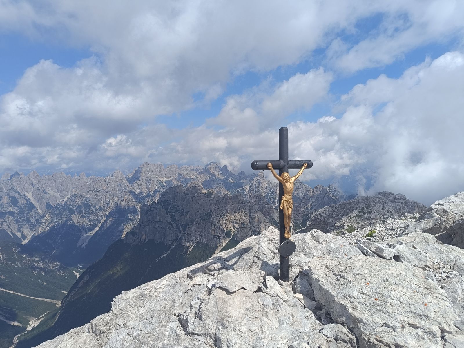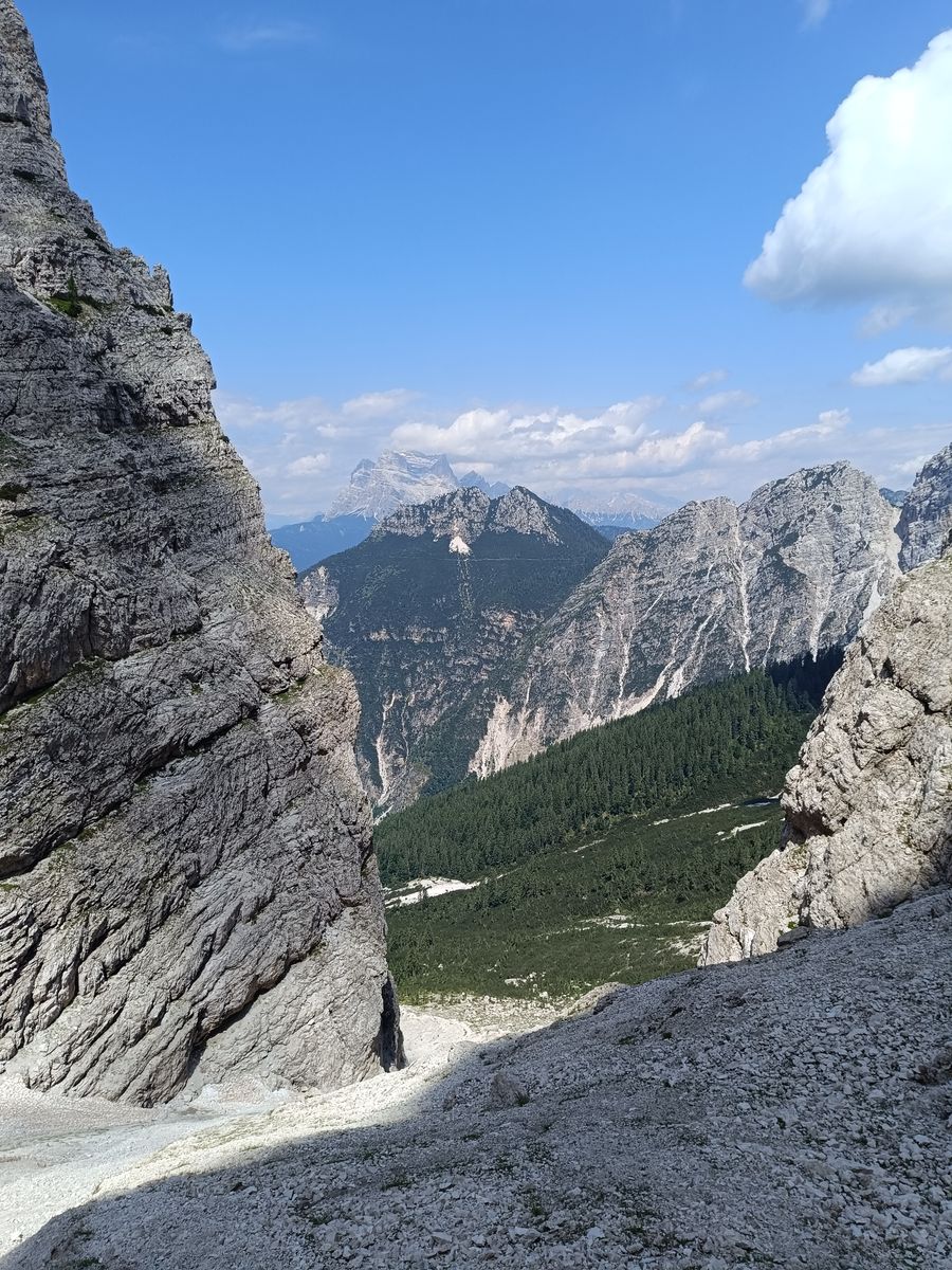 Gefahreneinschätzung: in den Karen wirklich extreme Steinschlaggefahr - Helm Pflicht. Was mir bei den wenigen Leuten, die ich getroffen habe, auch aufgefallen ist, ist, dass viele überfordert schienen. Wie zum Beispiel drei kreideweiße Italiener, die mir von der Forcella Cason entgegenkamen oder auch die drei jungen Burschen ("bruttissima"). Wir sind fast zusammen von der Scharte gestartet und als ich eine Stunde später in der Monfalconi-Scharte war, sind sie immer noch nicht unten gewesen - vermutlich haben sie umgedreht.