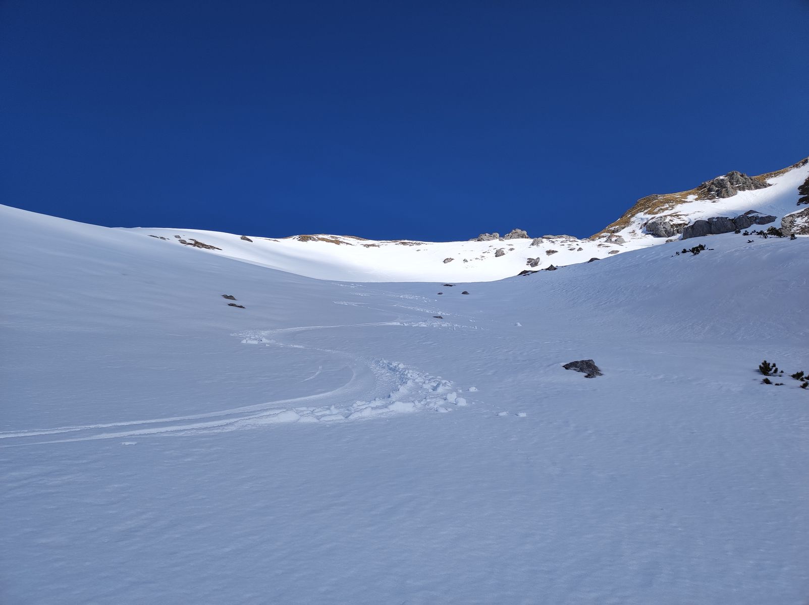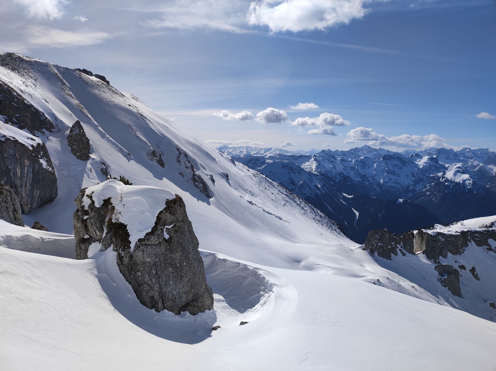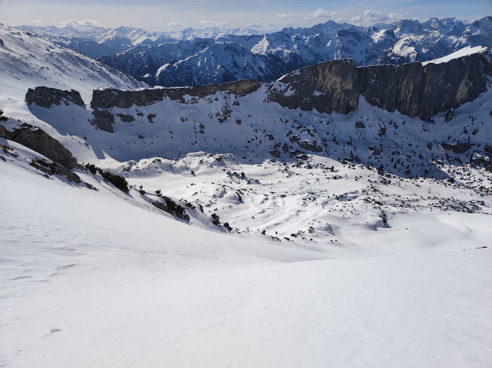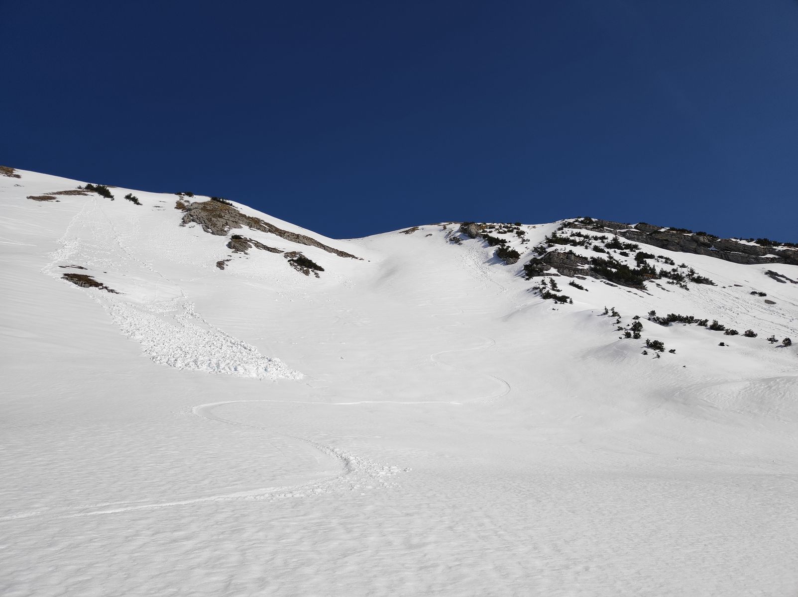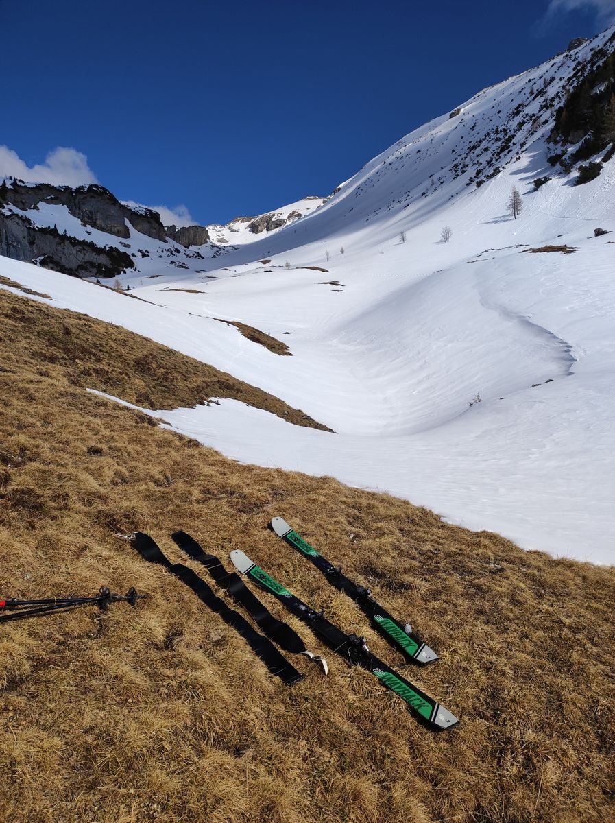 Lawinengefahr: Im Krummgampental grundsätzlich sehr gering. Im deutlich steileren Riffltal rechtzeitige Abfahrt bei Frühjahrsbedingungen wichtig.