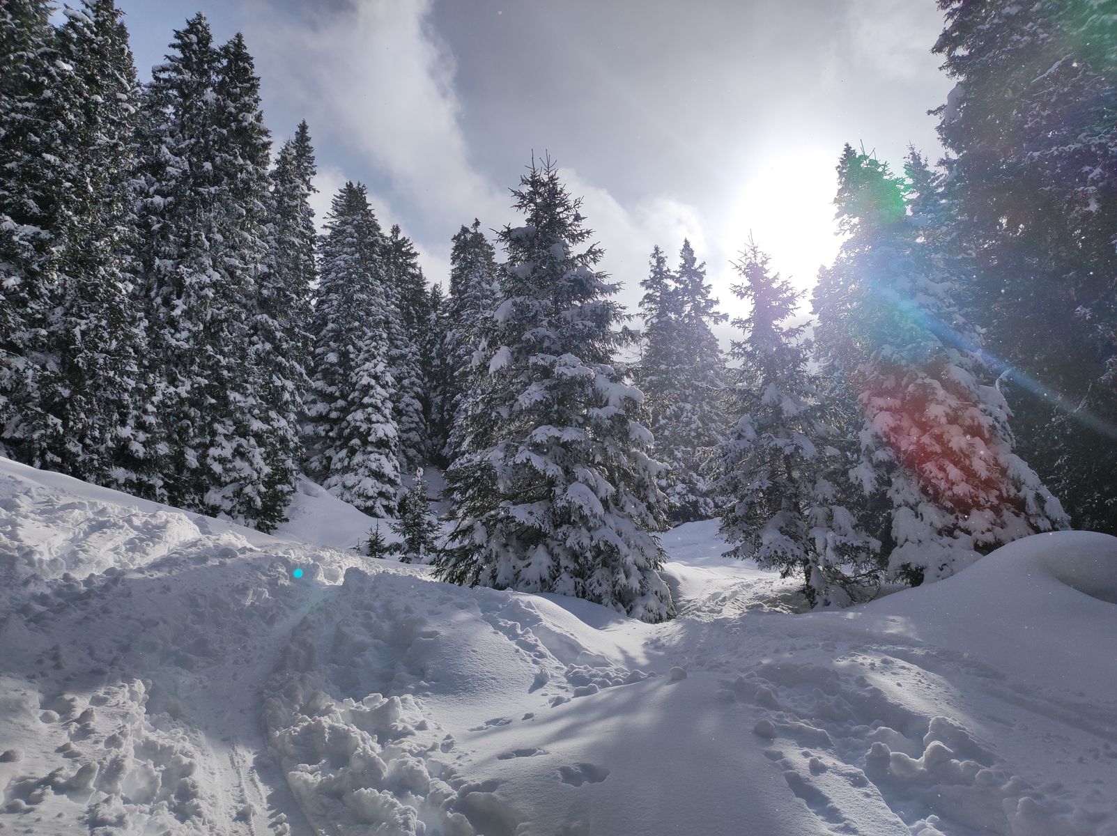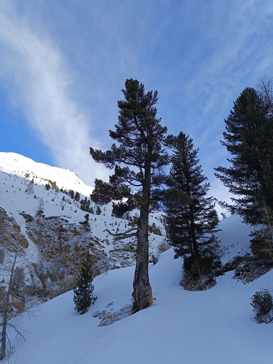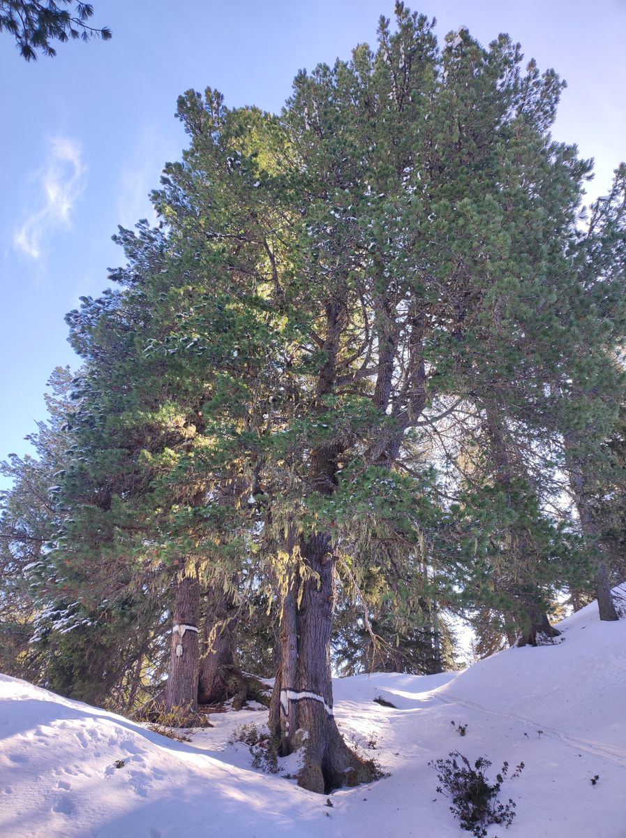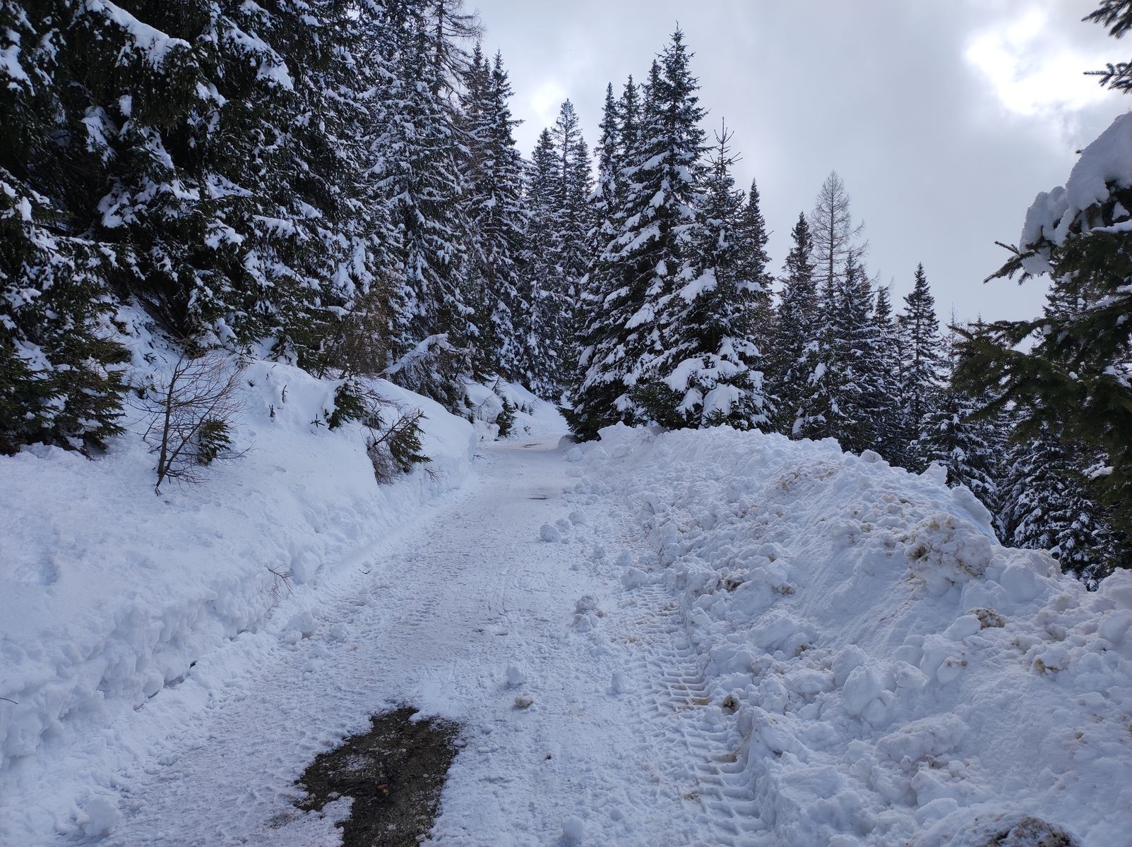 Gebietskenner werden vielleicht schon beim Ausgangspunkt "Schwarzenau" gestutzt haben, da die Skitour ja in der Regel beim Hochseilgarten gestartet wird, doch da fest davon auszugehen war, dass es bis weit hoch aper ist, bin ich bei Schwarzenau los, weil das zu Fuß schneller und viel schöner ist. Ein Radl würde auf der üblichen Route natürlich gute Dienste leisten, war aber nicht zur Hand. Die apere Strecke habe ich mit Bergschuhen absolviert; mit Skischuhen würde ich mir das nicht antun wollen. Der nächste Satz nur, damit nicht irgendein ortsunkundiger Uhu mal diese Tourenbeschreibung liest und meint, Schwarzenau wäre auch bei guter Schneelage ein sinnvoller Ausgangspunkt: Nein! Der enorm steile Kiefernwald ist bei Schneelage extrem lawinengefährdet!