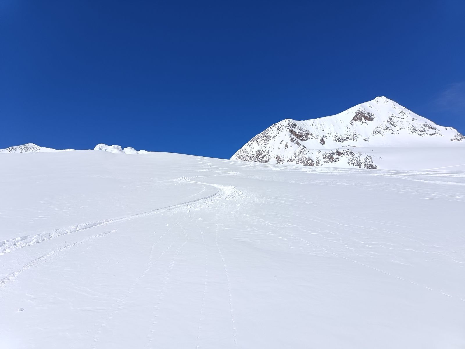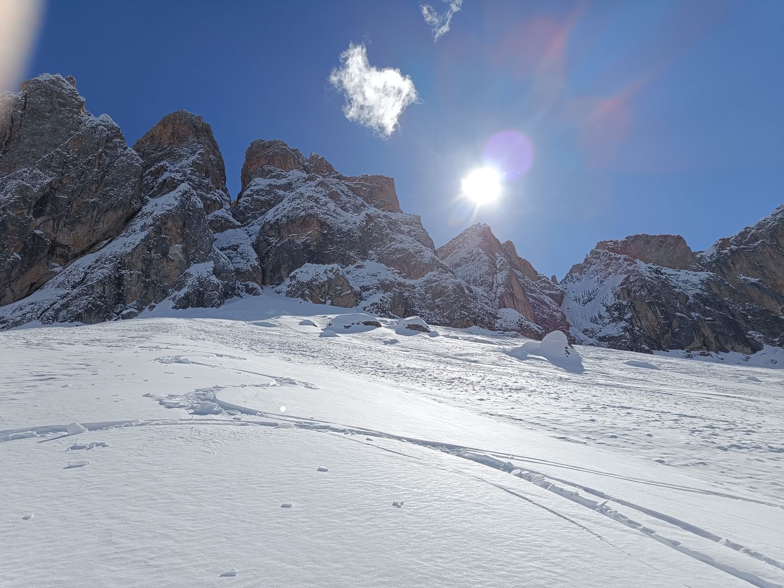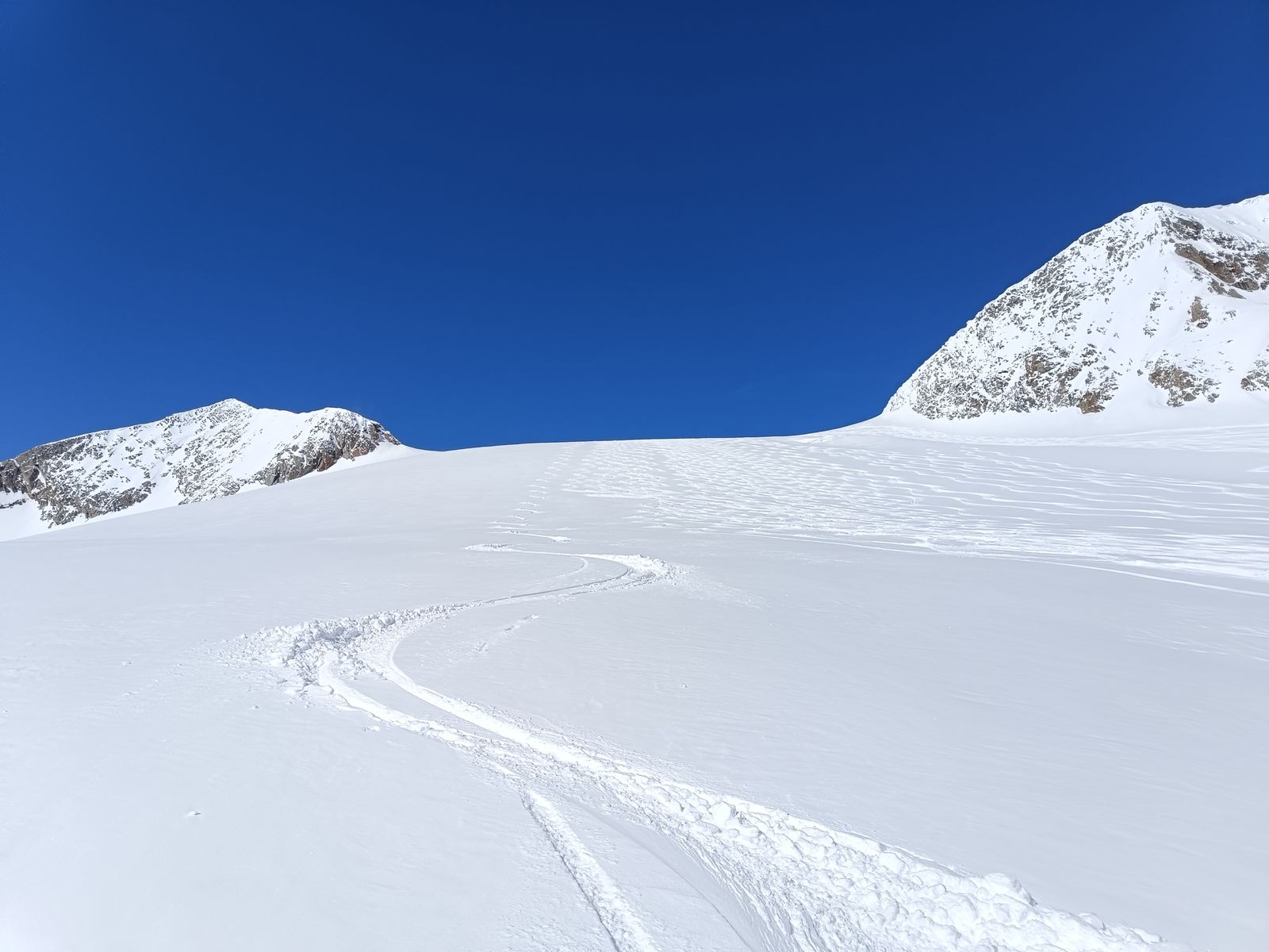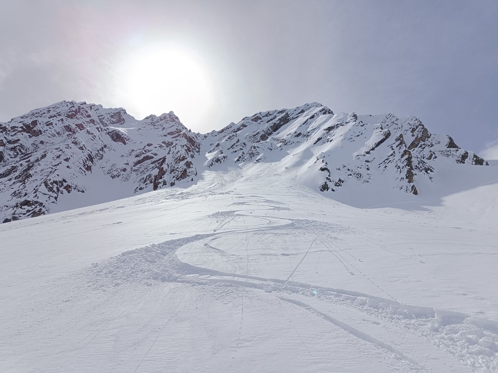 Fazit: Selten habe ich so genialen Firn erlebt! Das liegt in diesem Fall aber auch daran, dass in den letzten Tagen genau ein Kollege am Weg war und die Hänge daher komplett unverspurt waren. Ich hatte im Vorfeld auch überlegt, in Hochfügen auf Tour zu gehen. Da hätte ich zwar nicht tragen müssen und es hätte auch aufgefirnt, aber was wäre das für ein "Firn" gewesen bei den sicher maximal verspurten Hängen?