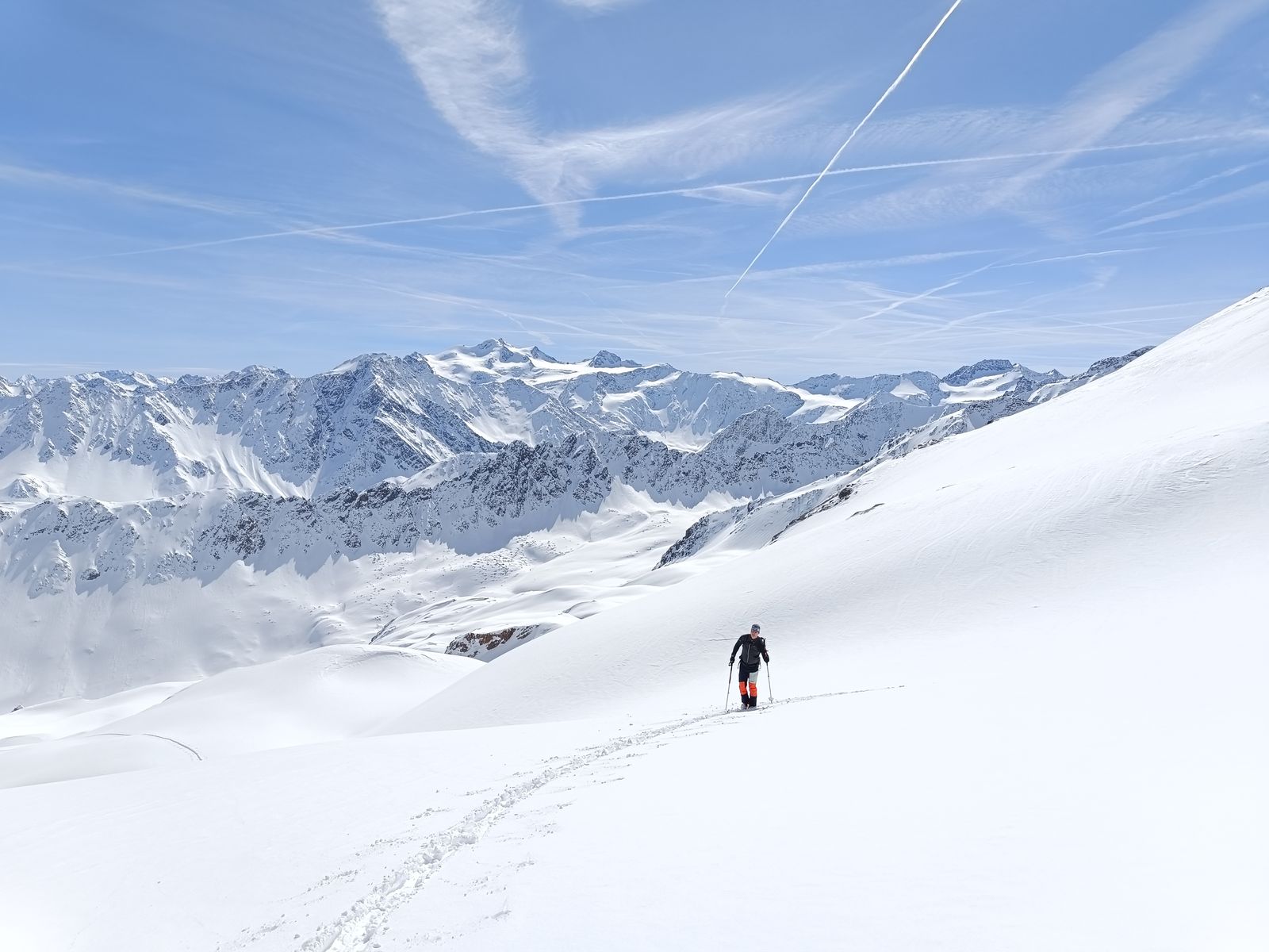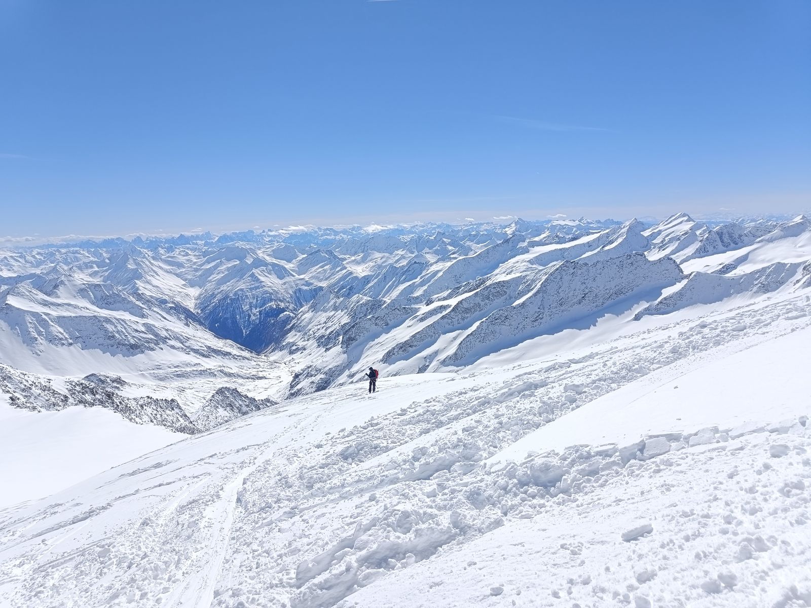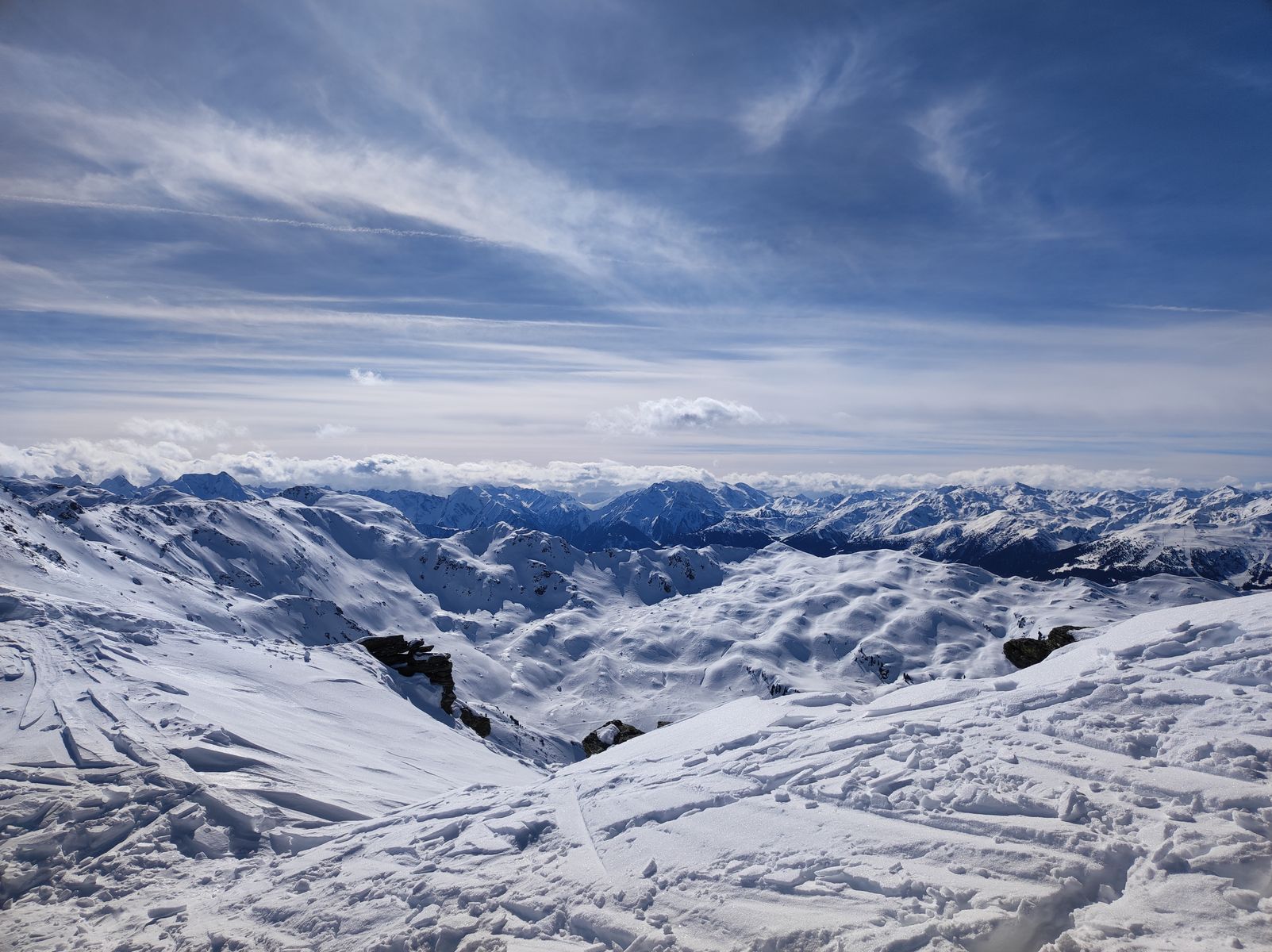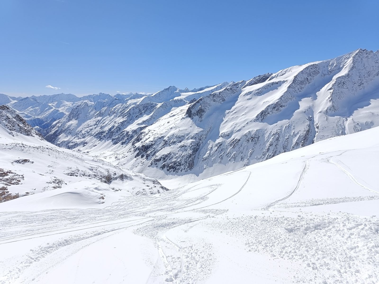 Fazit: Selten habe ich so genialen Firn erlebt! Das liegt in diesem Fall aber auch daran, dass in den letzten Tagen genau ein Kollege am Weg war und die Hänge daher komplett unverspurt waren. Ich hatte im Vorfeld auch überlegt, in Hochfügen auf Tour zu gehen. Da hätte ich zwar nicht tragen müssen und es hätte auch aufgefirnt, aber was wäre das für ein "Firn" gewesen bei den sicher maximal verspurten Hängen?