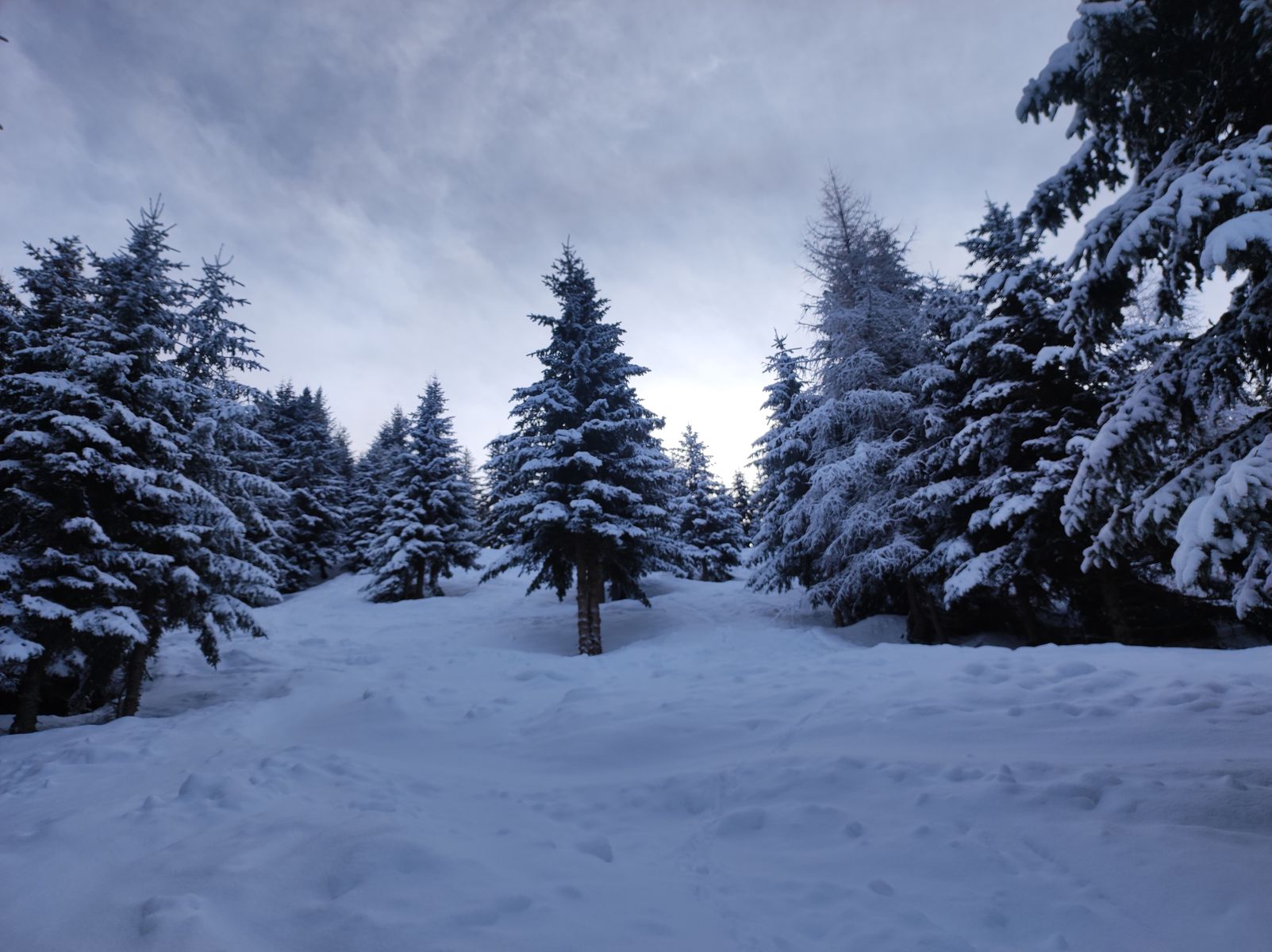 Zurück zur Tour: Die Ski müssen eine gute Stunde getragen werden; erst auf halber Strecke zwischen Kotalm-Niederleger und Mittelleger, genau dort, wo die Exposition von West auf Nord wechselt, geht es in die Bindung. Die Schneehöhe steigt dabei abrupt von 0 auf 50cm (ab den Hütten des Mittellegers dann sicher 1m), was natürlich auch heißt, dass die Verhältnisse oben noch eine Zeit lang brauchbar sein werden.