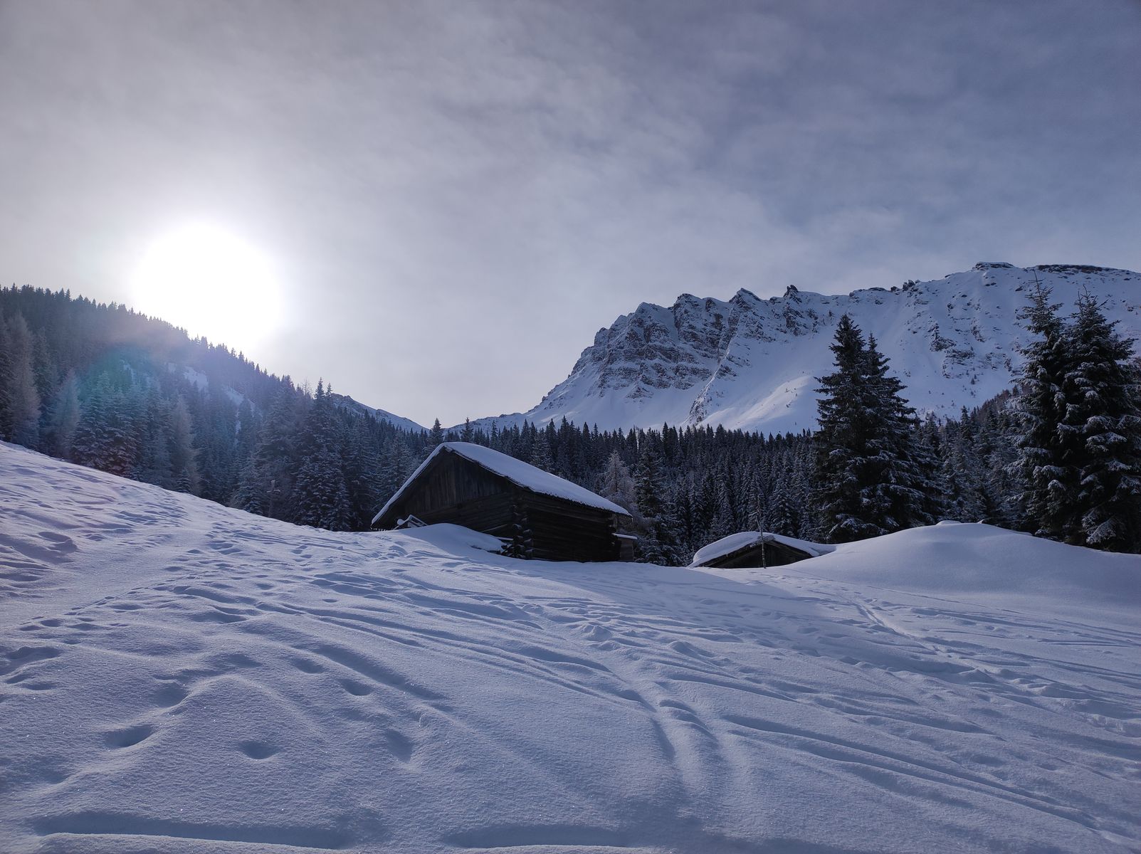 Jonas hat natürlich recht, wenn er schreibt, dass es anscheinend nicht so viele Leute gibt, die ihre Ski auch mal eine Stunde oder länger hochtragen. Wenn man aber so belohnt wird, wie ich heute, dann nehme ich das gerne in Kauf. Ich hätte heute natürlich auch etwas Anderes machen können, aber die Tour hab ich mir einfach eingebildet, weil sie sommers wie winters wegen der landschaftlichen Schönheit zu meinen absoluten Lieblingen gehört. Heute kam noch das prachtvolle Wetter hinzu, das Firn versprach.