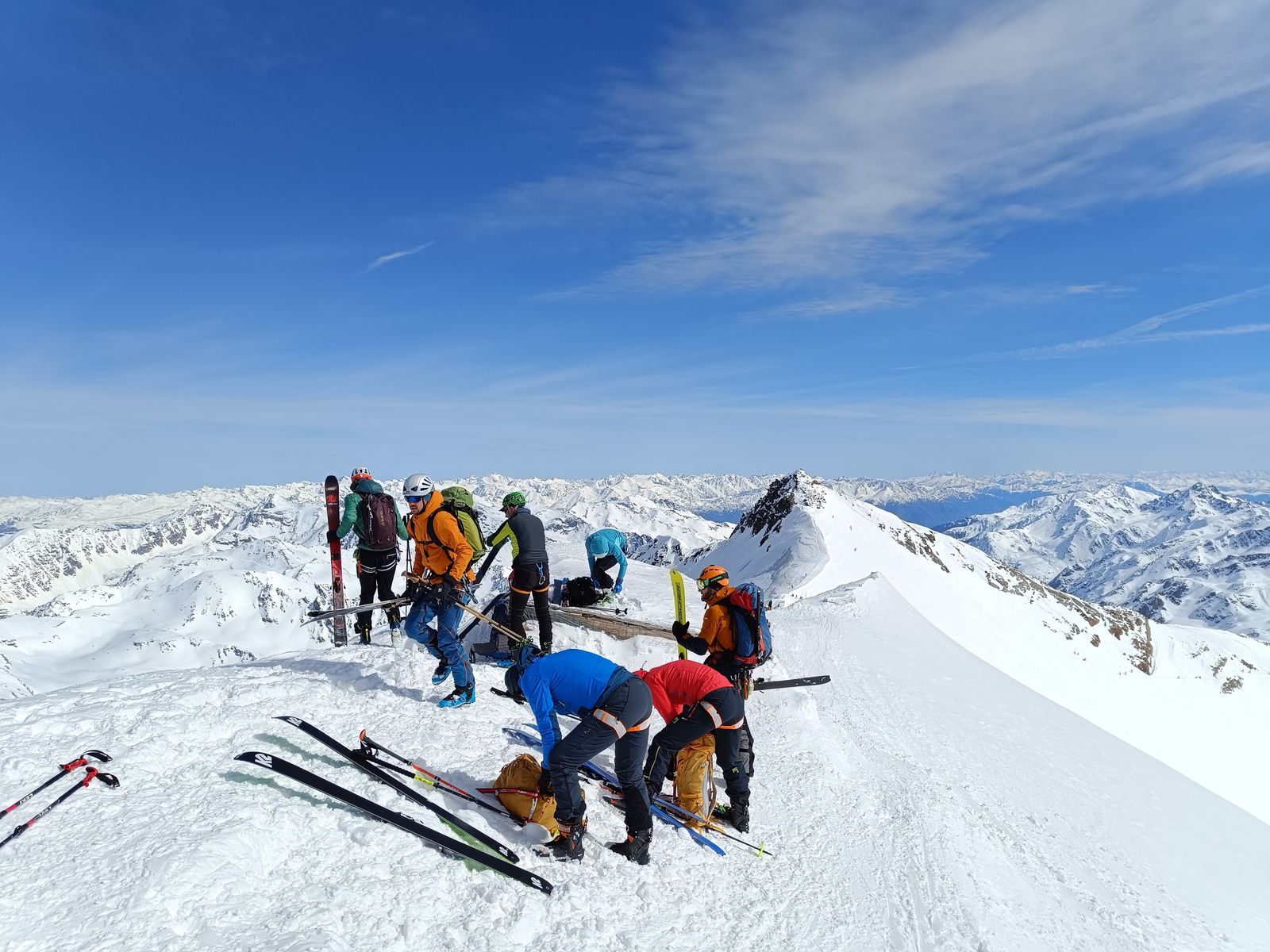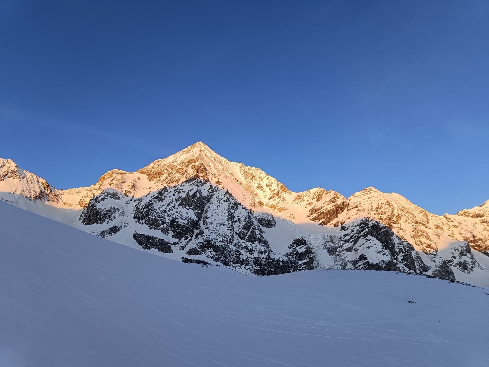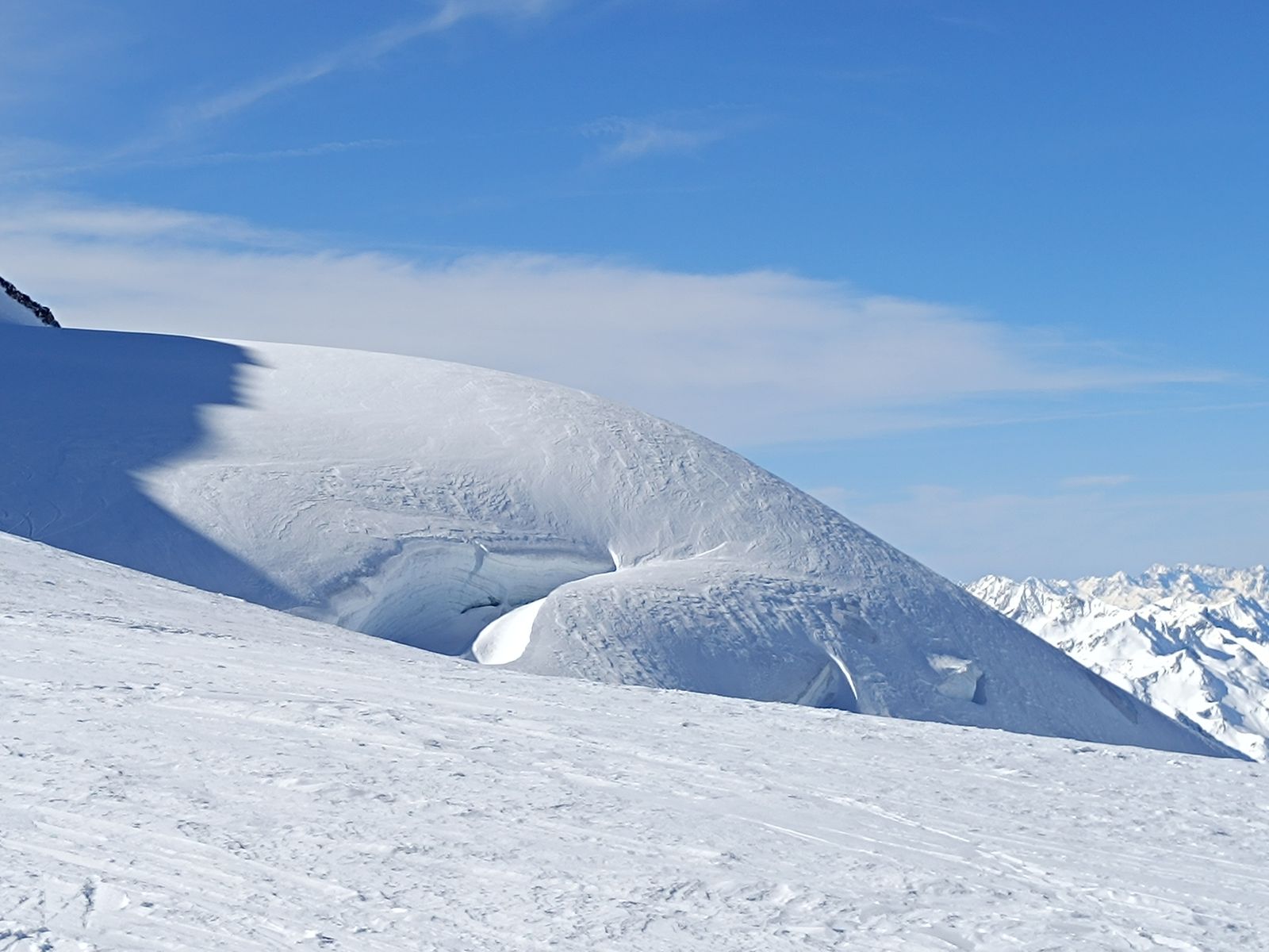 Gletscher: Der Madatsch-Ferner ist diesbezüglich nicht harmlos. In der Steilstufe (3000-3200 Meter) gibt es eine veritable Spaltenzone bzw einen Gletscherbruch. Aufgrund der hohen Schneelage kommt man aber in der Mitte ohne Probleme durch.