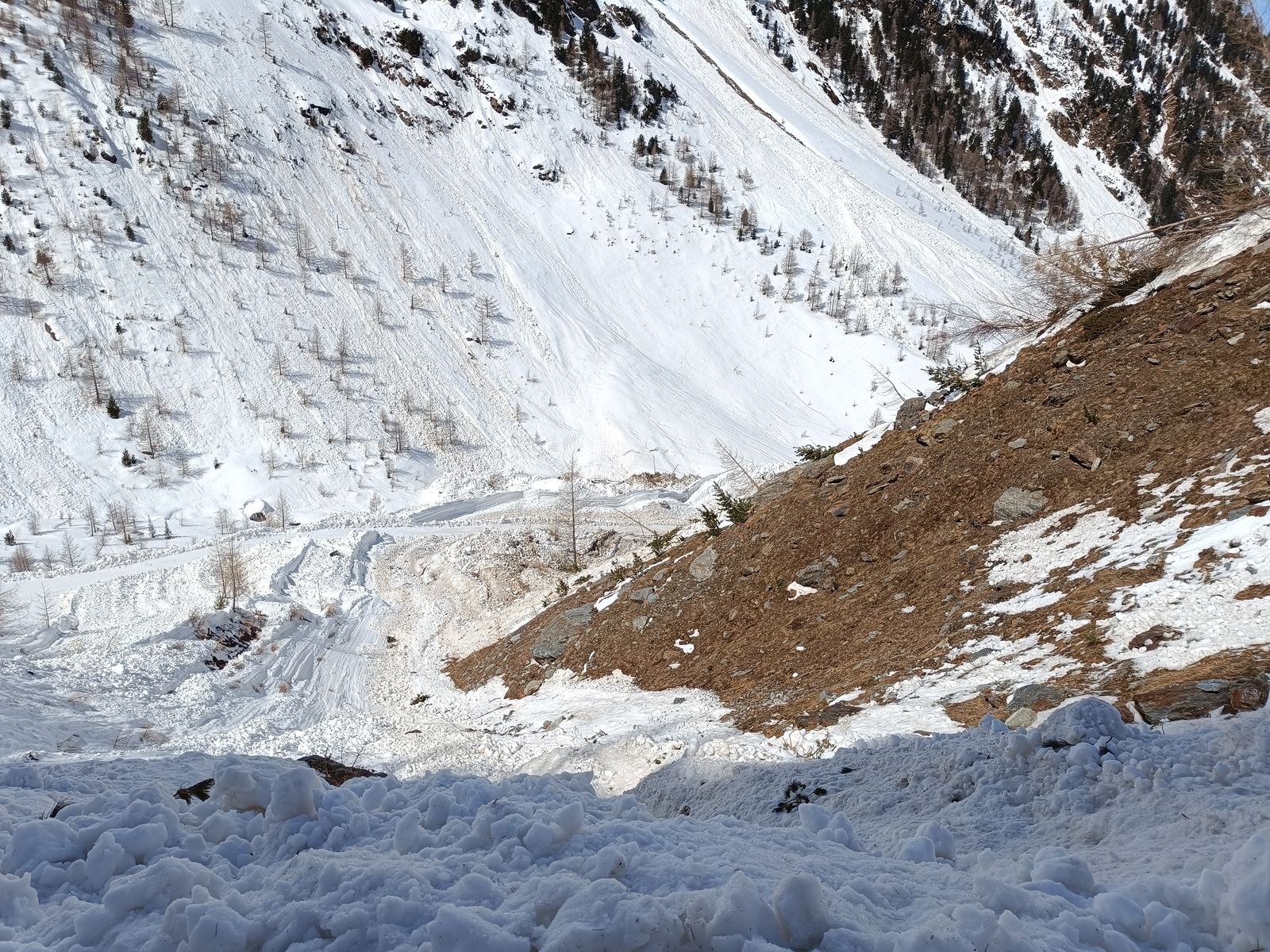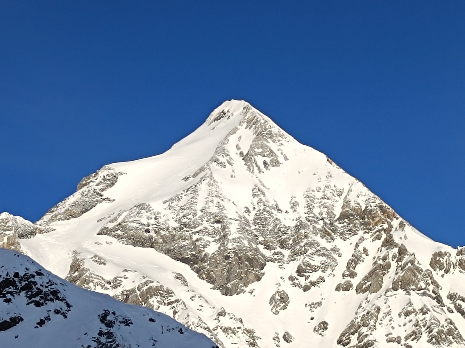 Lawinengefahr: Heute nicht relevant, aber der steile Gipfelhang (geschätzt bis 38 Grad) ist mit Vorsicht zu genießen. Heute war es auch noch "relativ" kühl, auch im ganzen Gebiet erst wenige Locker- und Nassschneelawinen: da wird morgen der "große Tag" sein.