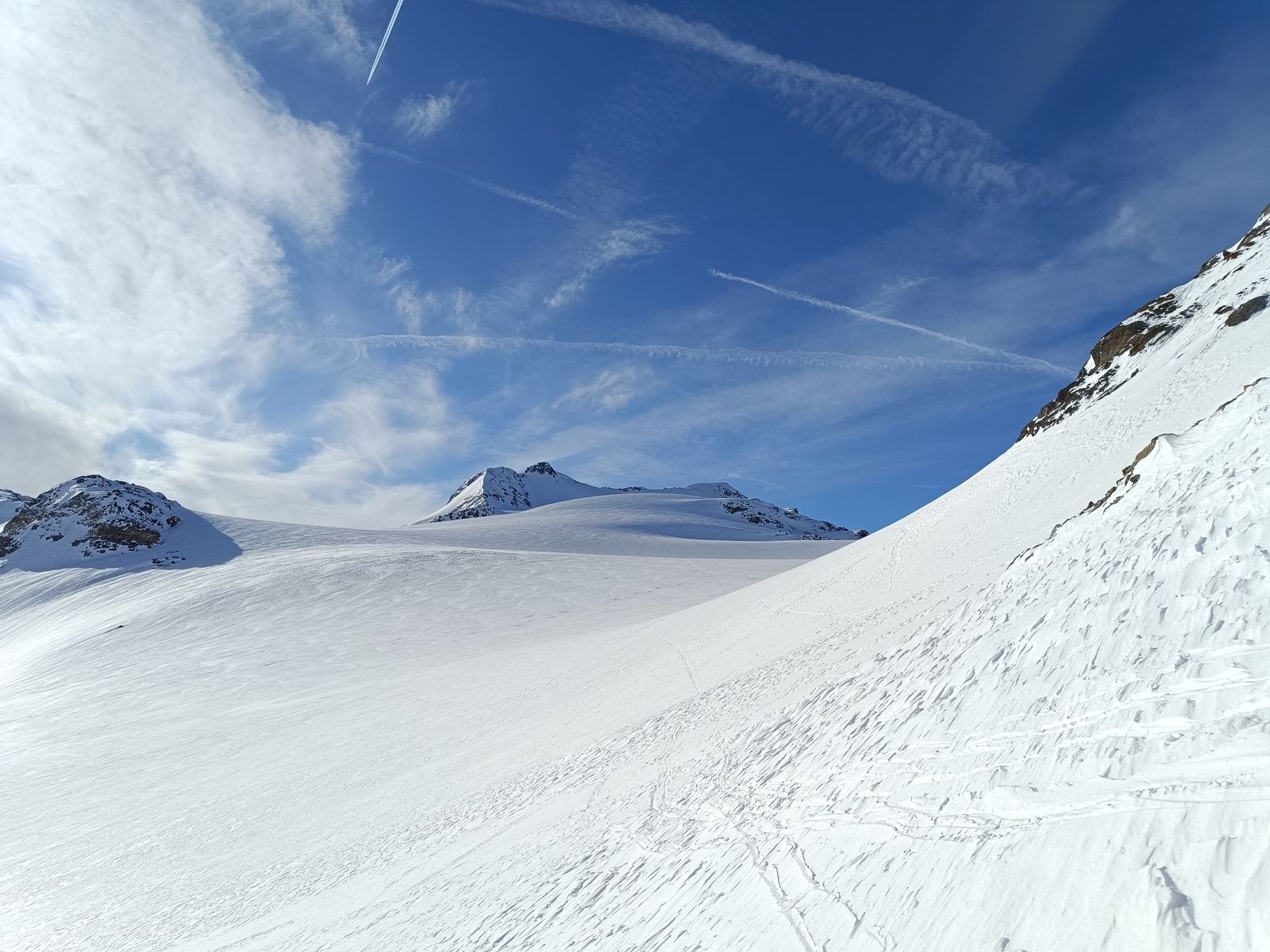 Die Tour kann man skifahrerisch gut mit dem Hocharn vergleichen - mit dem Bonus einer immens eindrucksvollen Landschaft. Eine der schönsten Touren, die ich kenne. Hinzu kam heute noch, dass ich ganz allein in dieser wie von Riesen geformten Landschaft war - einfach ein gigantisches Erlebnis!