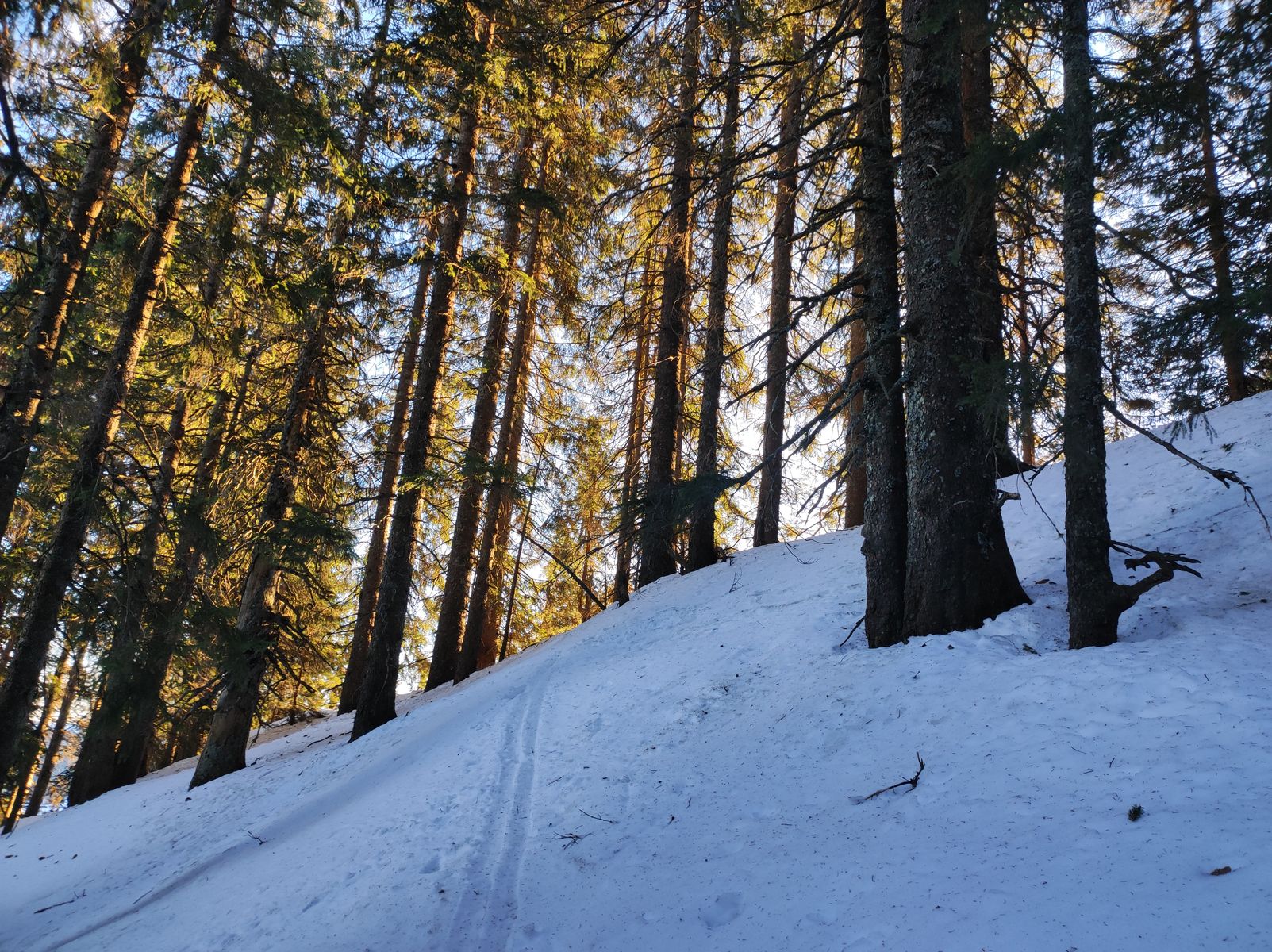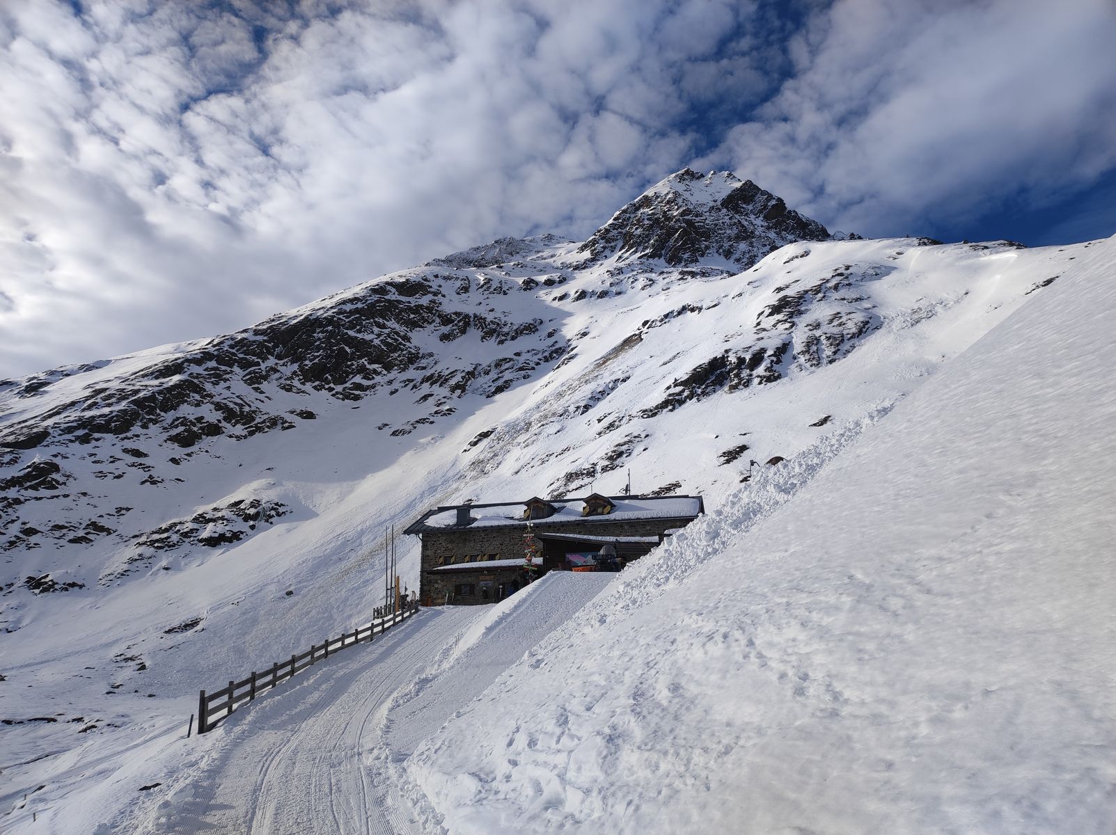 Abfahrt bis etwa 2800 Meter und dann Aufstieg ins Hauslabjoch (auf Fineilspitze hatten wir bei dem Sturm keine Lust mehr). Abfahrt + kleiner Gegenanstieg zum HJH, wo wir um halb 3 ankamen. Dort trafen wir Hüttenwirt Florian und seine Mannschaft, die mal nach dem Rechten schauen wollten (Hütte öffnet Anfang März). Das war für uns aber keine Überraschung, denn Florian hatte mir schon am Freitag am PP gesagt, dass sie am Samstag mit dem Heli hochfliegen. Für uns Laien war es dann spektakulär zu beobachten, wie der Heli sie wieder abholte. Nun wäre es natürlich sehr verlockend (und im Nachhinein auch gescheiter) gewesen, im Winterraum des HJH, den man nur als urgemütlich und exzellent eingerichtet beschreiben kann, zu bleiben. Allein wären wir auch gewesen. Doch da unsere Ziele für Sonntag im Bereich der Vernagthütte lagen, sind wir nochmal 750 Hm zu den Guslarspitzen hoch und haben die VH im letzten Abendlicht um 18 Uhr erreicht. Hier großer Trubel und wir haben gerade noch die letzen freien Betten bekommen. 20 Leute dort im Winterraum...