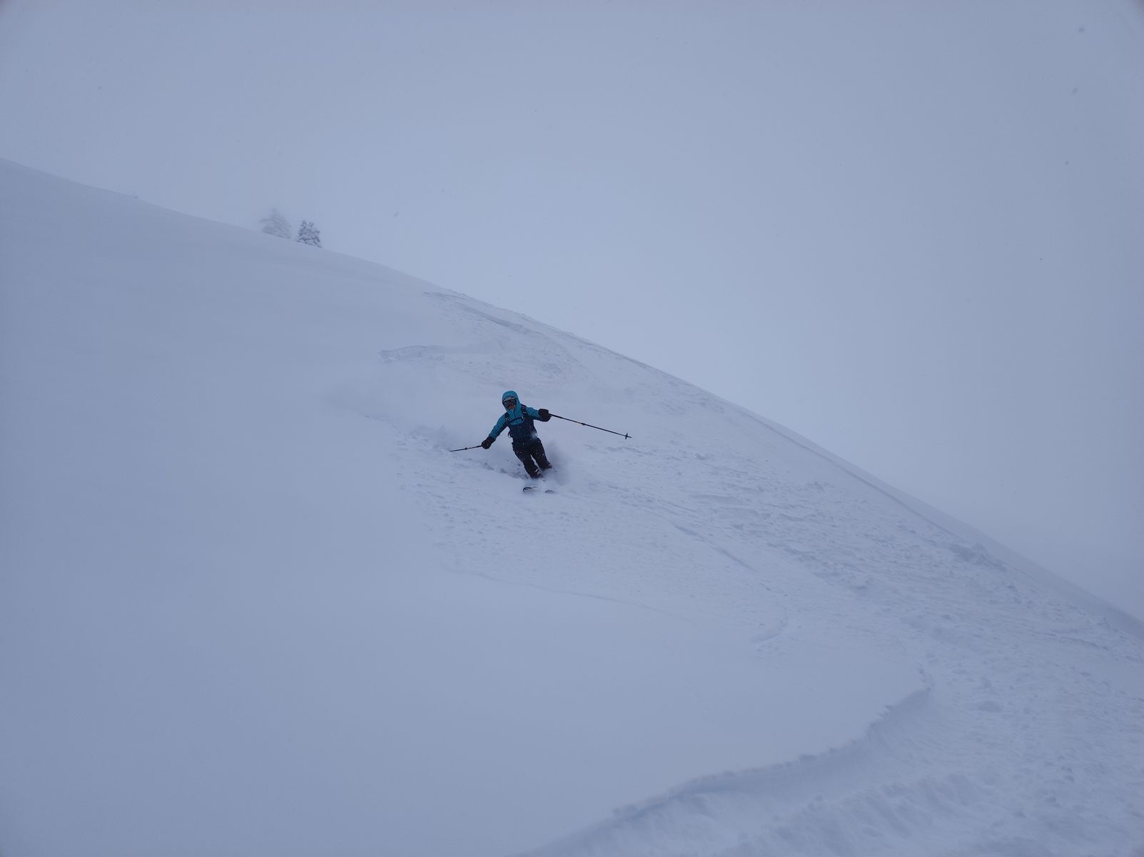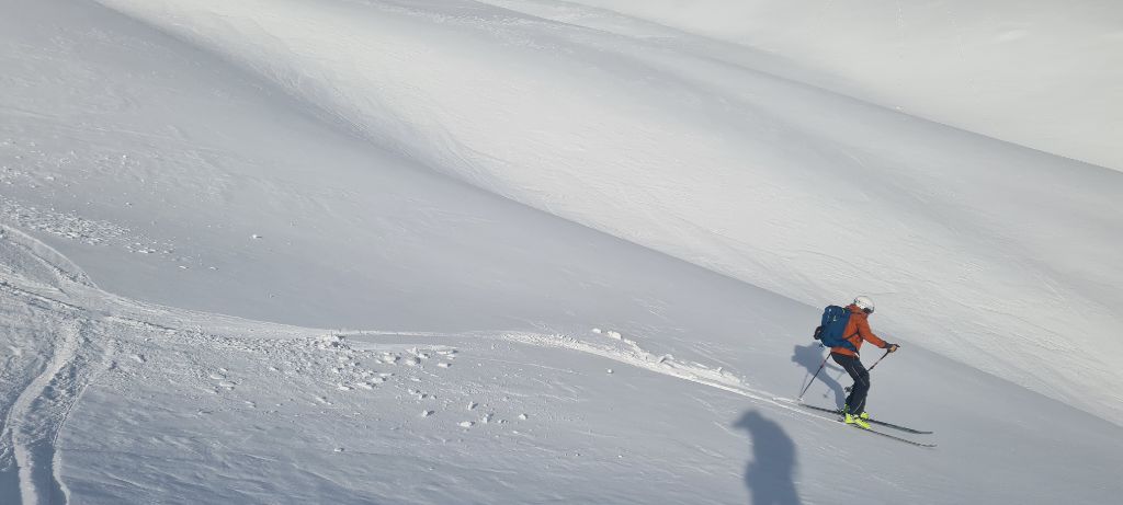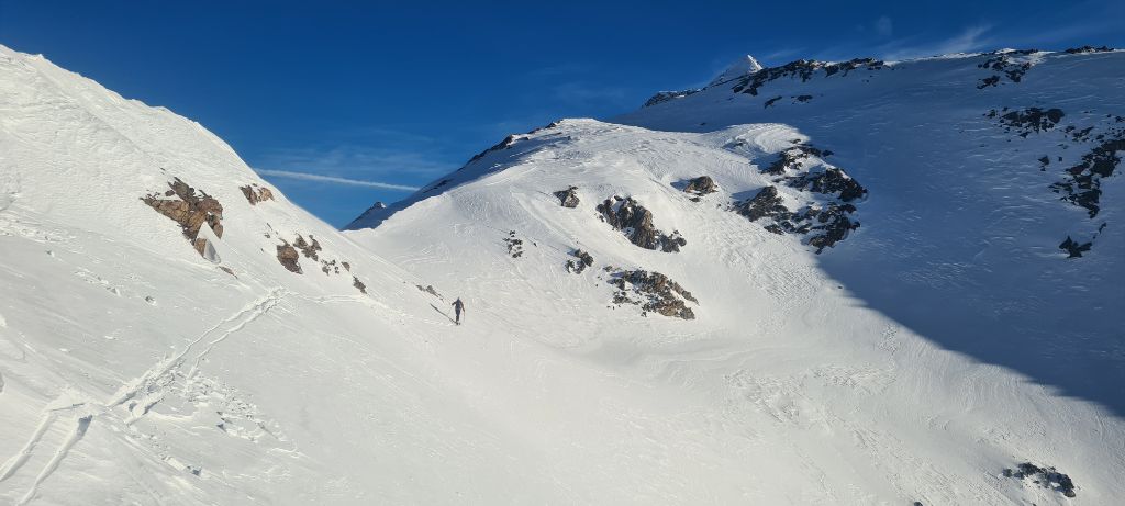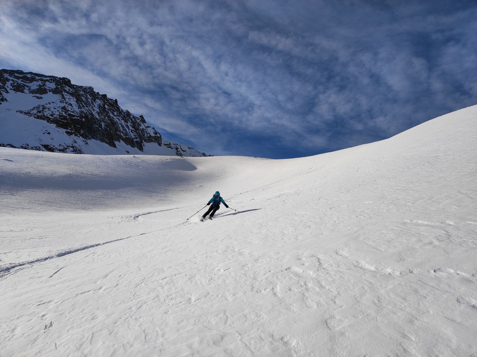 5: Guter Schnee in den steilen Mulden unter dem Gletscher.