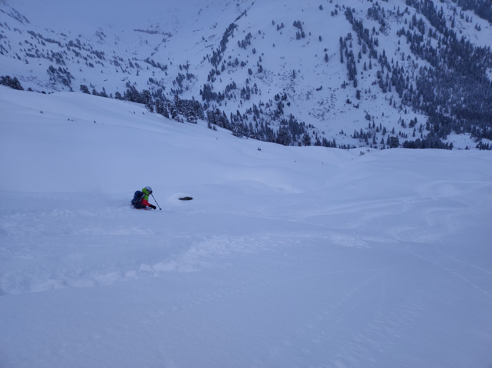 9/10: Geile Pulverabfahrt eben dort - schaut auf den Bildern natürlich nicht so steil aus, wie es realiter ist...