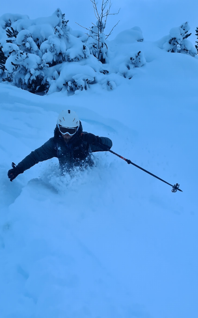 Die Abfahrt selbst war einfach genial: Steil (40 Grad+), eng, Pulver und ein bisserl Dolomiten-Feeling!