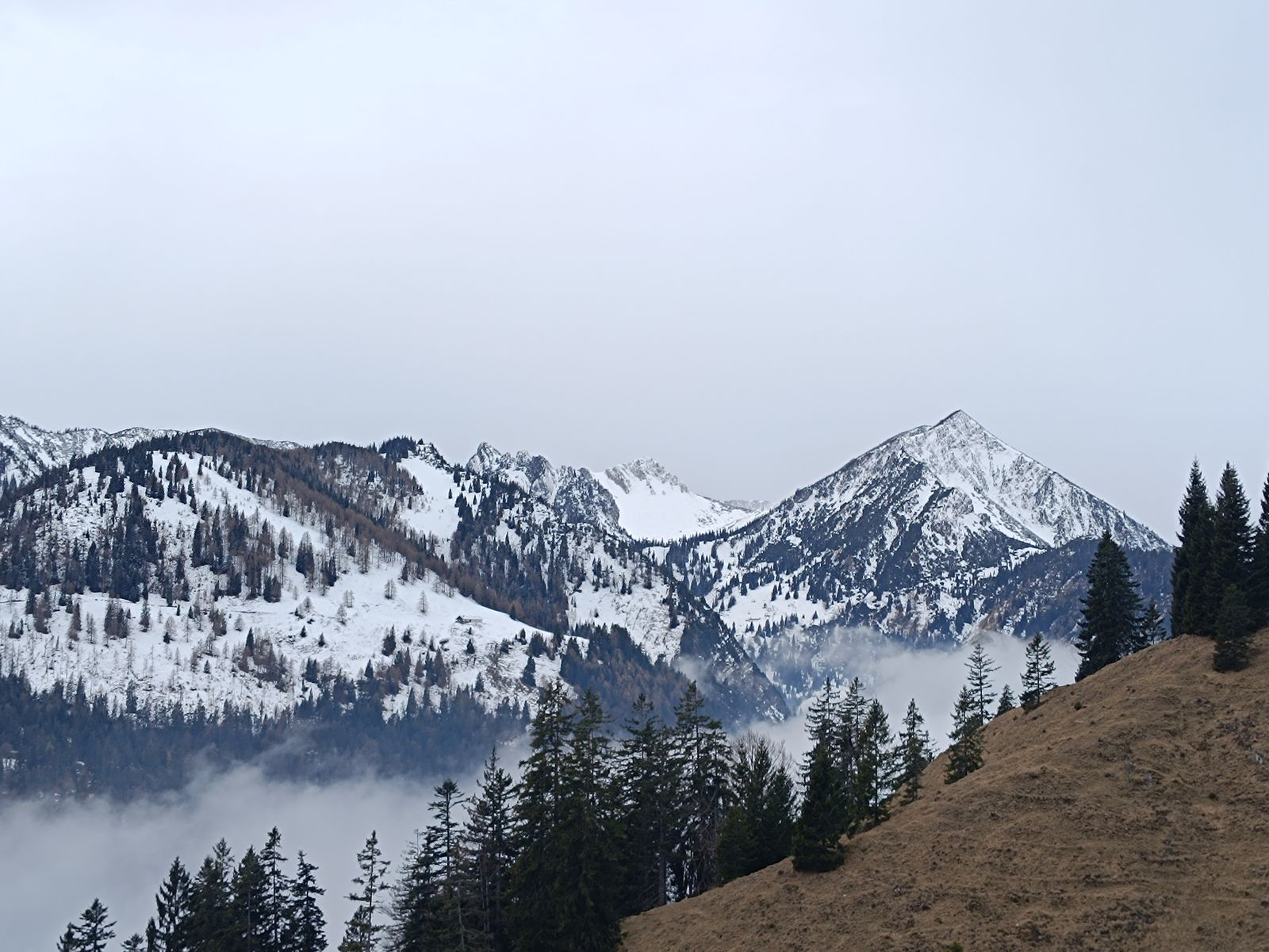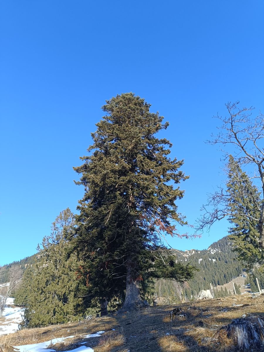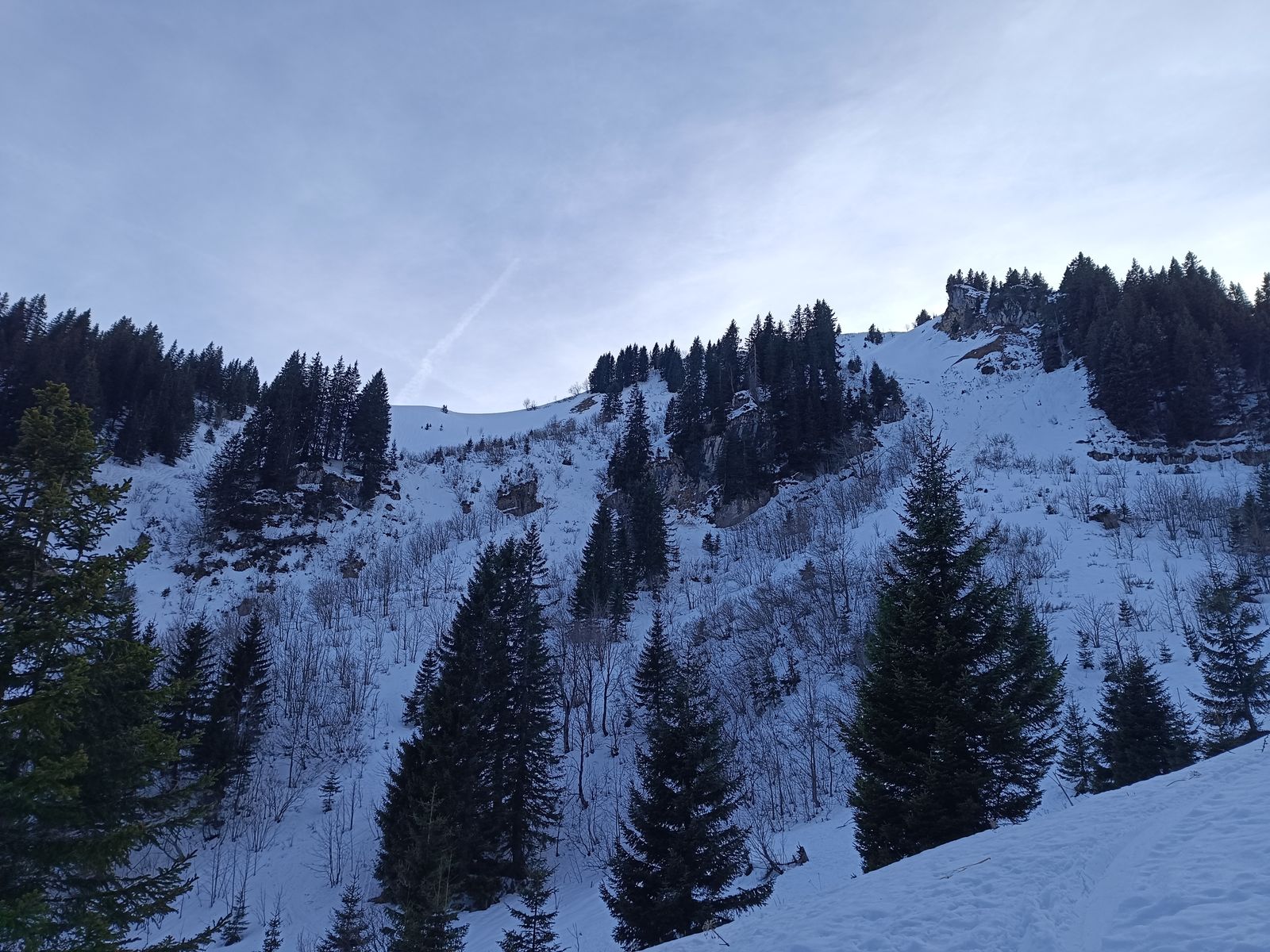 Zunächst bin ich auf der Normalroute zum Kreuzjöchl. Das schöne Waldstück ging heute auf der Route des Sommerwegs noch gut mit Skiern im Aufstieg, bald wird es aber besser sein, länger auf der Forststraße zu bleiben. Für die Talabfahrt sollte man aber auf jeden Fall die Seebless-Route nehmen, weil's im Wald ja nicht gescheit auffirnt.