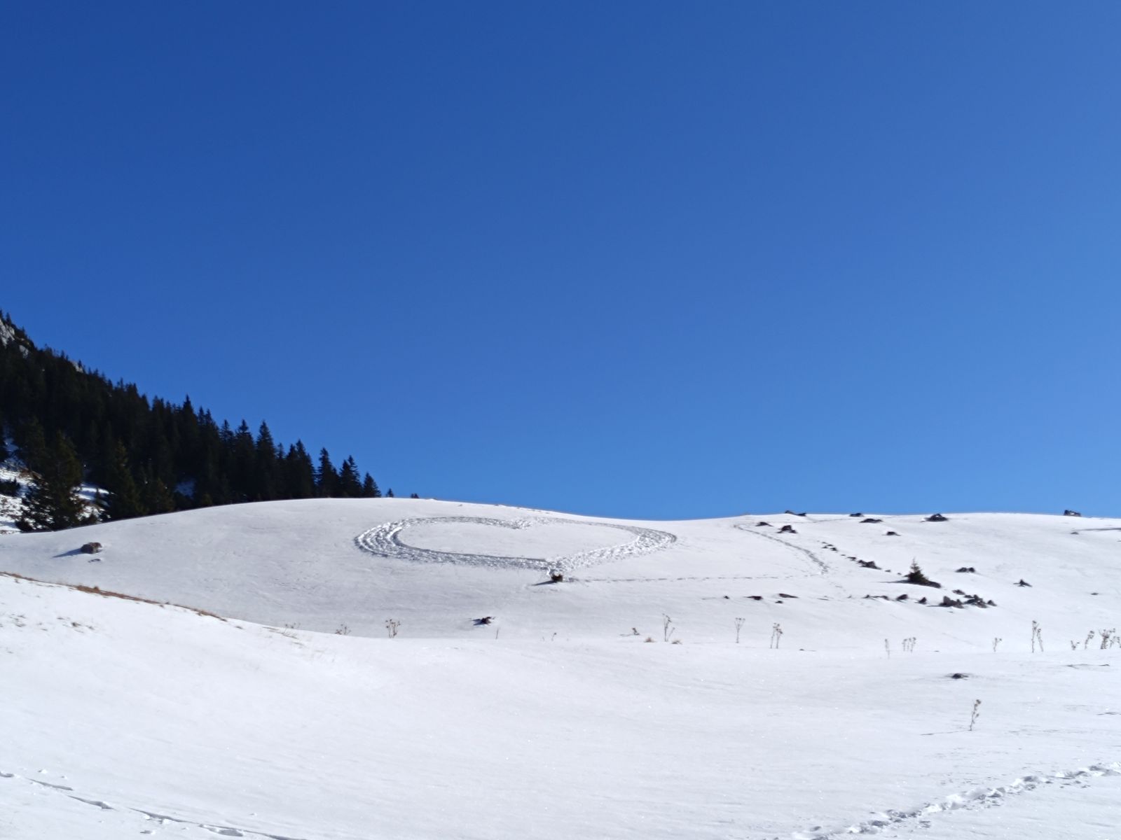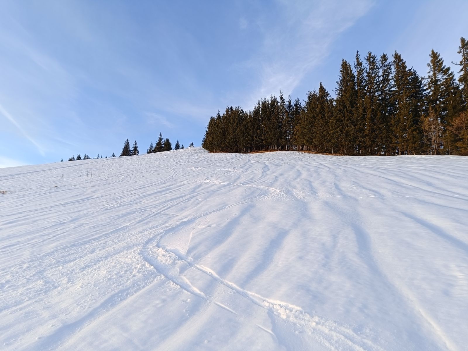 Im Vergleich mit der gestrigen Tour gefällt mir diese landschaftlich noch besser - man hat bei den breiten Hängen fast das Gefühl, auf einem Gletscher zu sein. Skifahrerisch lohnender ist aber Grafmart/Grünberg, da die Hänge steiler sind.