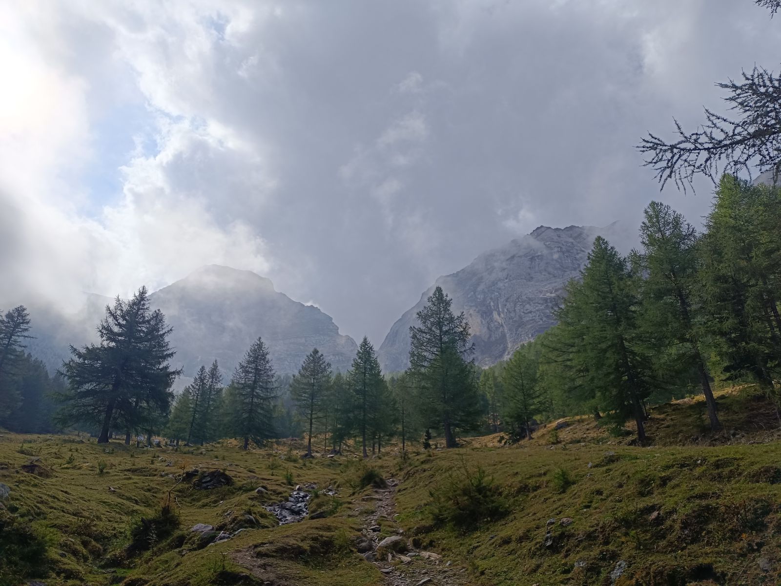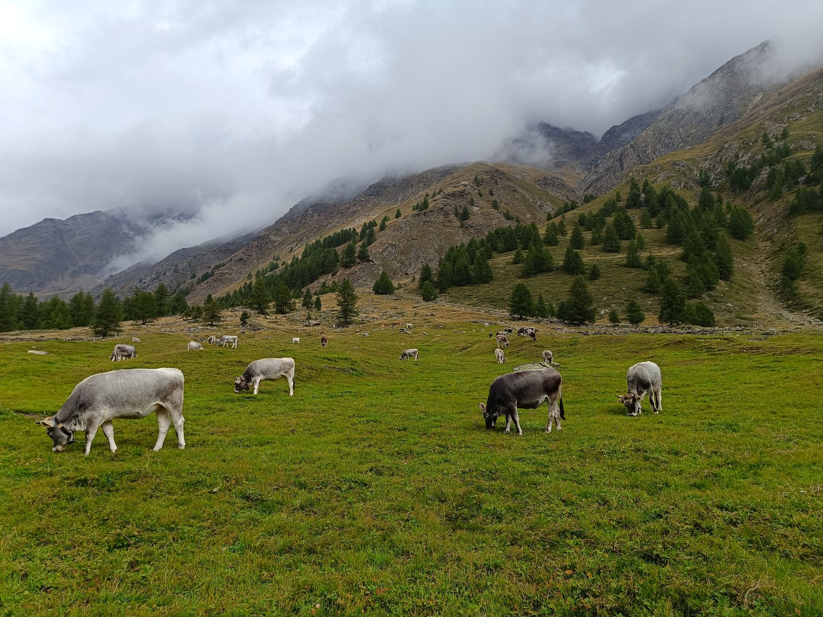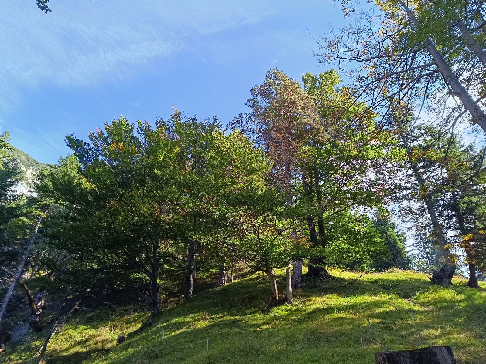 Route: Vom PP am Stausee vorbei hoch zur Malga Erera, die mitten in der "unendlichen Ebene" liegt. Auf etwa 1500m verzweigt sich der Weg. Hoch habe ich den direkten Steig, der durch einen schattigen Graben führt, genommen, runter den längeren, aber viel schöneren Weg (tolle Ausblicke). Von der Erera-Alm könnte man direkt weglos auf den Mondo steigen - schöner ist aber die Umrundung und Überschreitung dieses an sich unscheinbaren Grasbergs. Und das geht so: Von der Erera-Alm zur Forcella Pelse und danach ein Stück bergab Richtung Casera Campotorondo. Aus der Karte hatte ich ersehen, dass kurz vor der Casera ein gutmütiger Grashang zum Gipfelkamm hochführen müsste, was dann auch so war. Danach runter zur Erera-Alm und auf der Variante zurück ins Tal. Wie die anderen Grasberge rund um die Piani Eterni ist der Mondo fast komplett weglos, die Orientierung ist aber bei guter Sicht kein Hexenwerk.