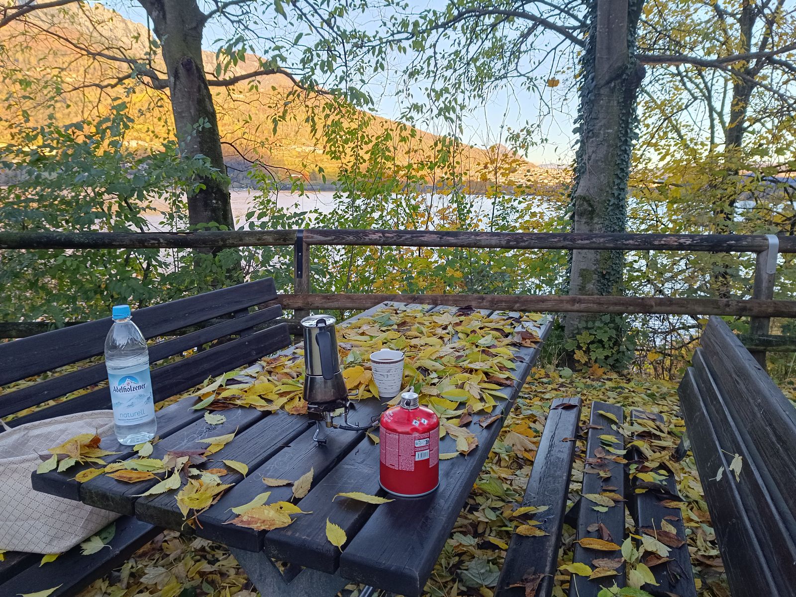 1: Am Lago Caldonazzo hab ich mir bei der Anfahrt an malerischer Stelle meinen Kaffee gegönnt.
