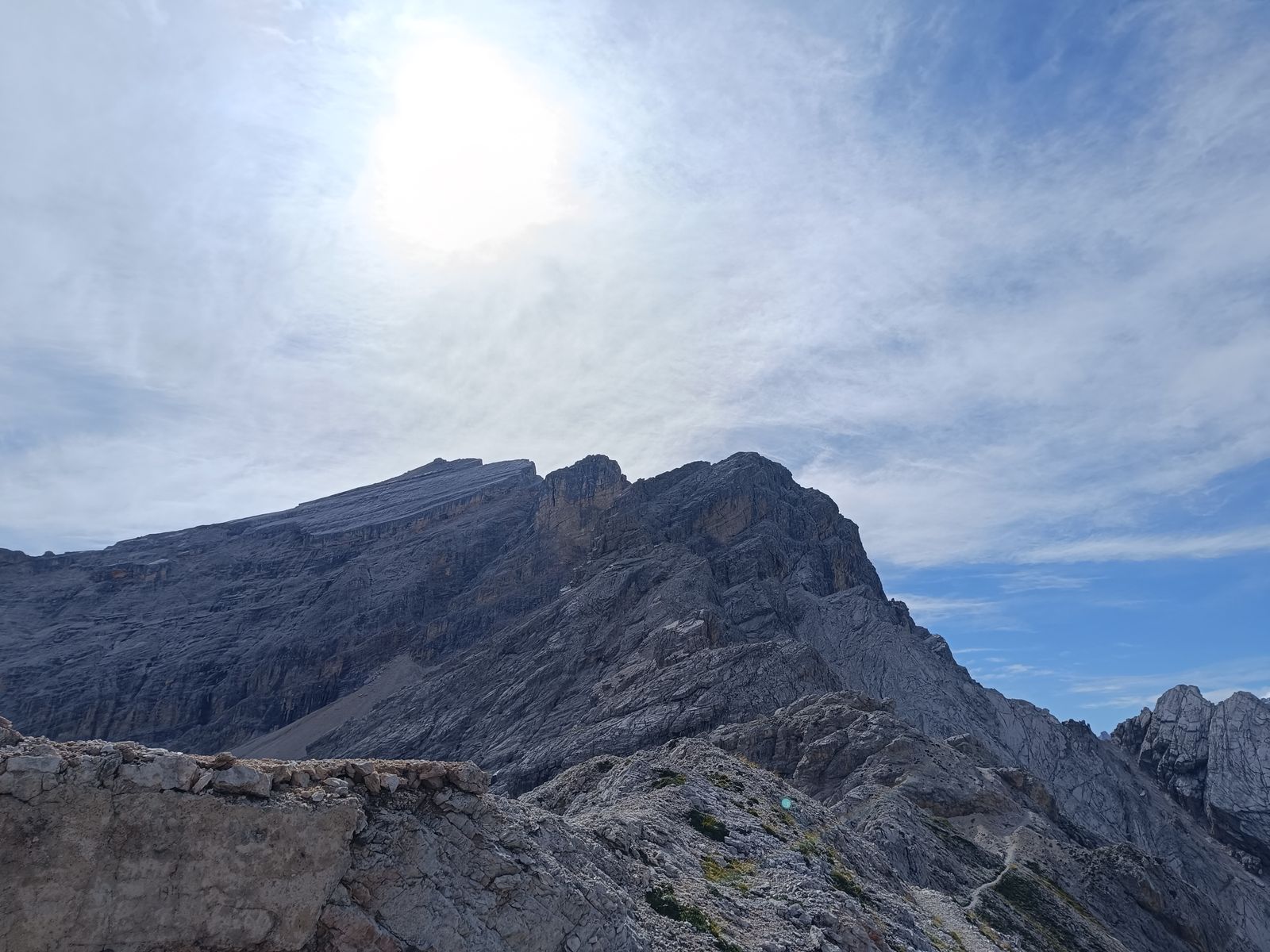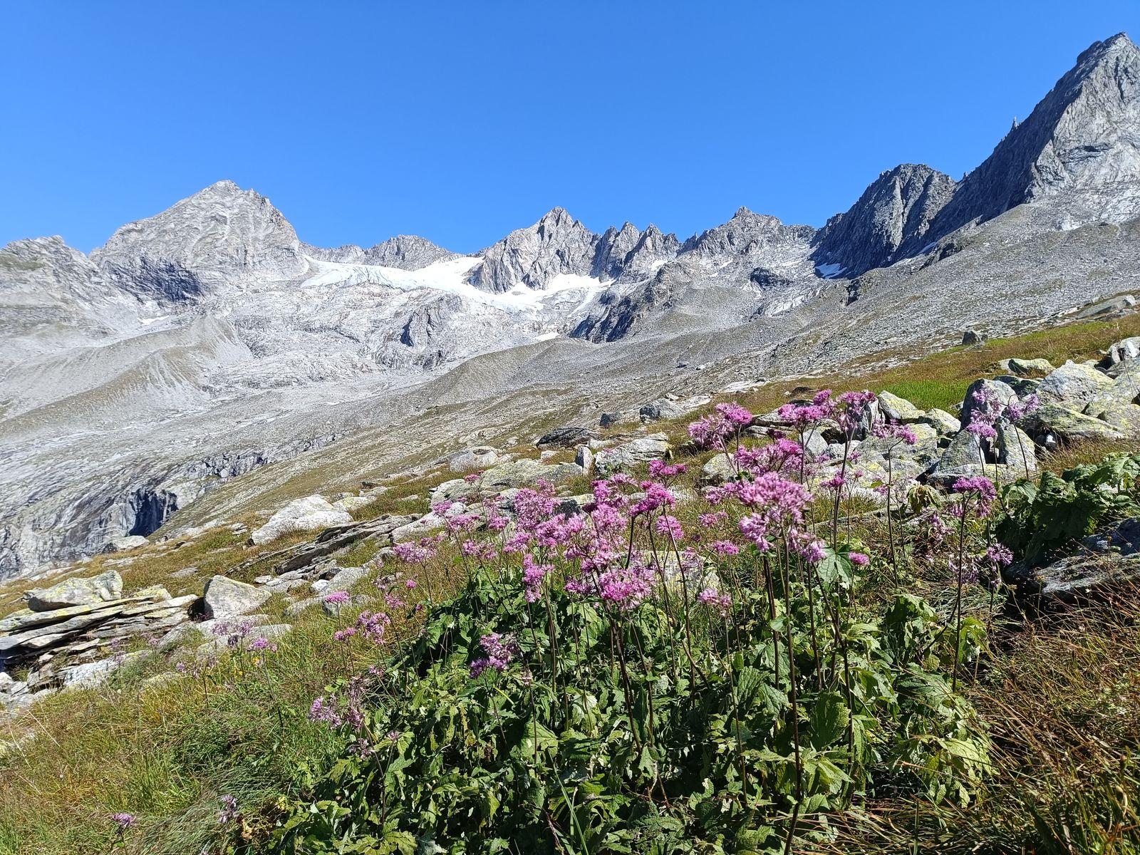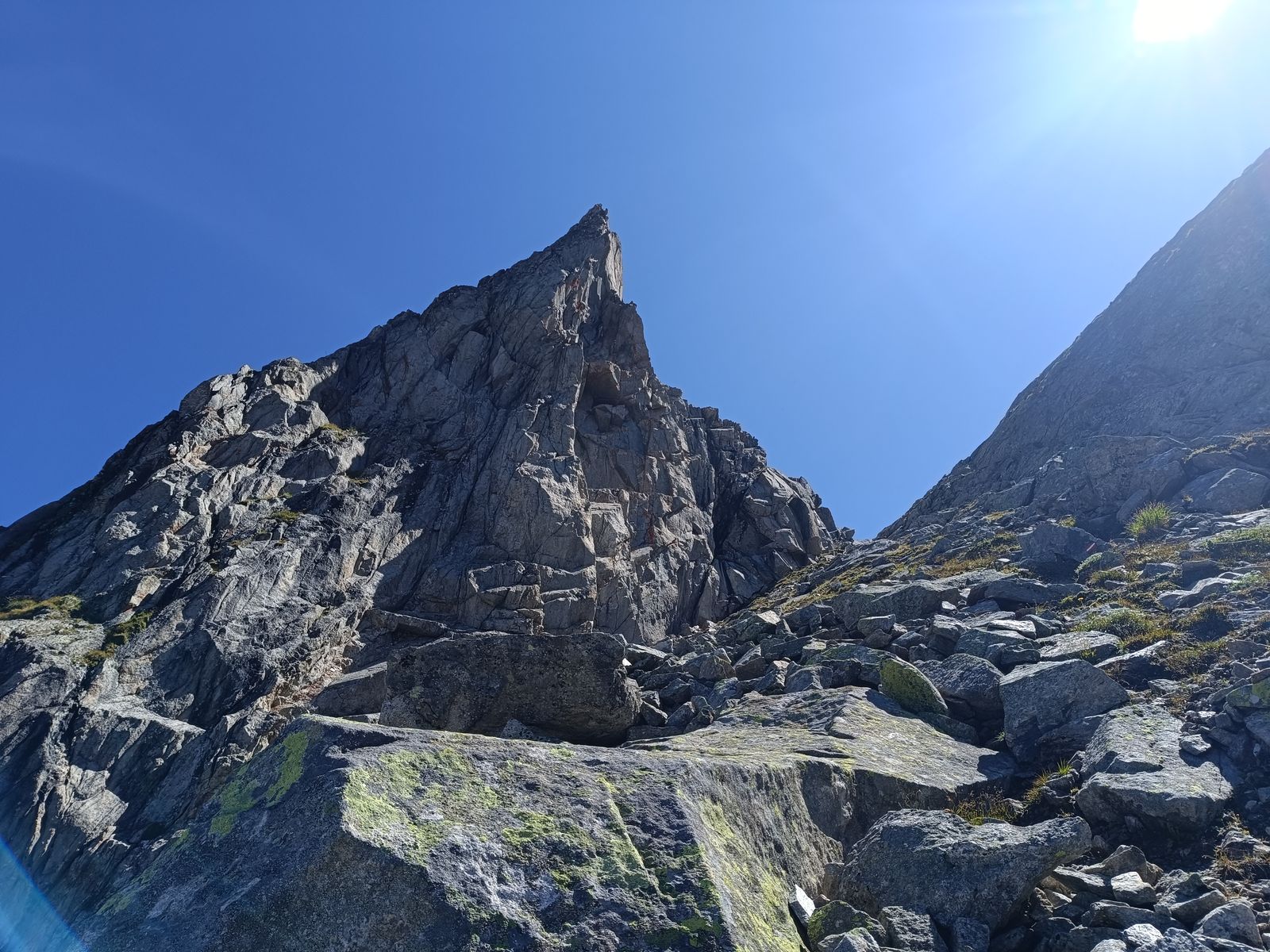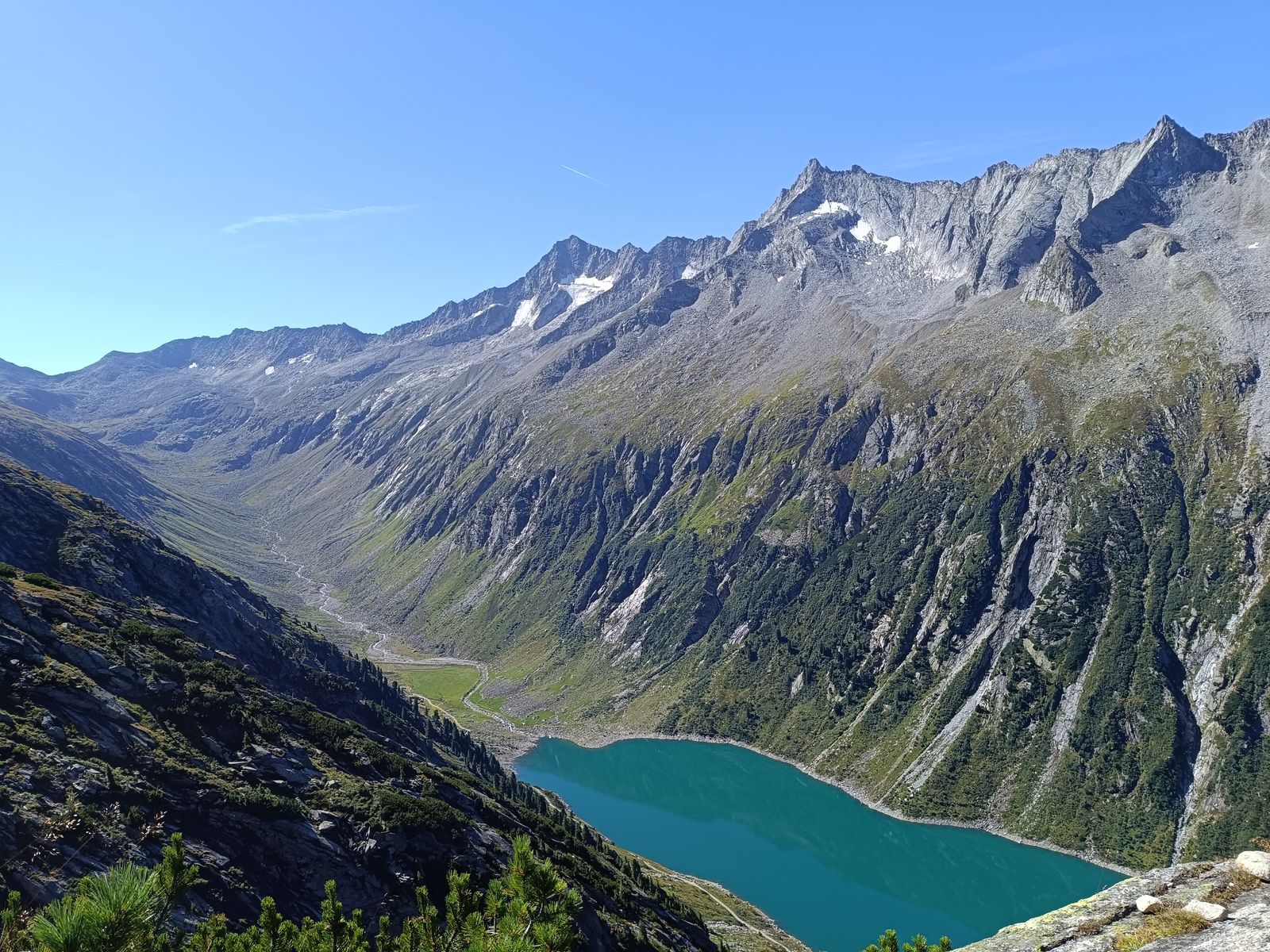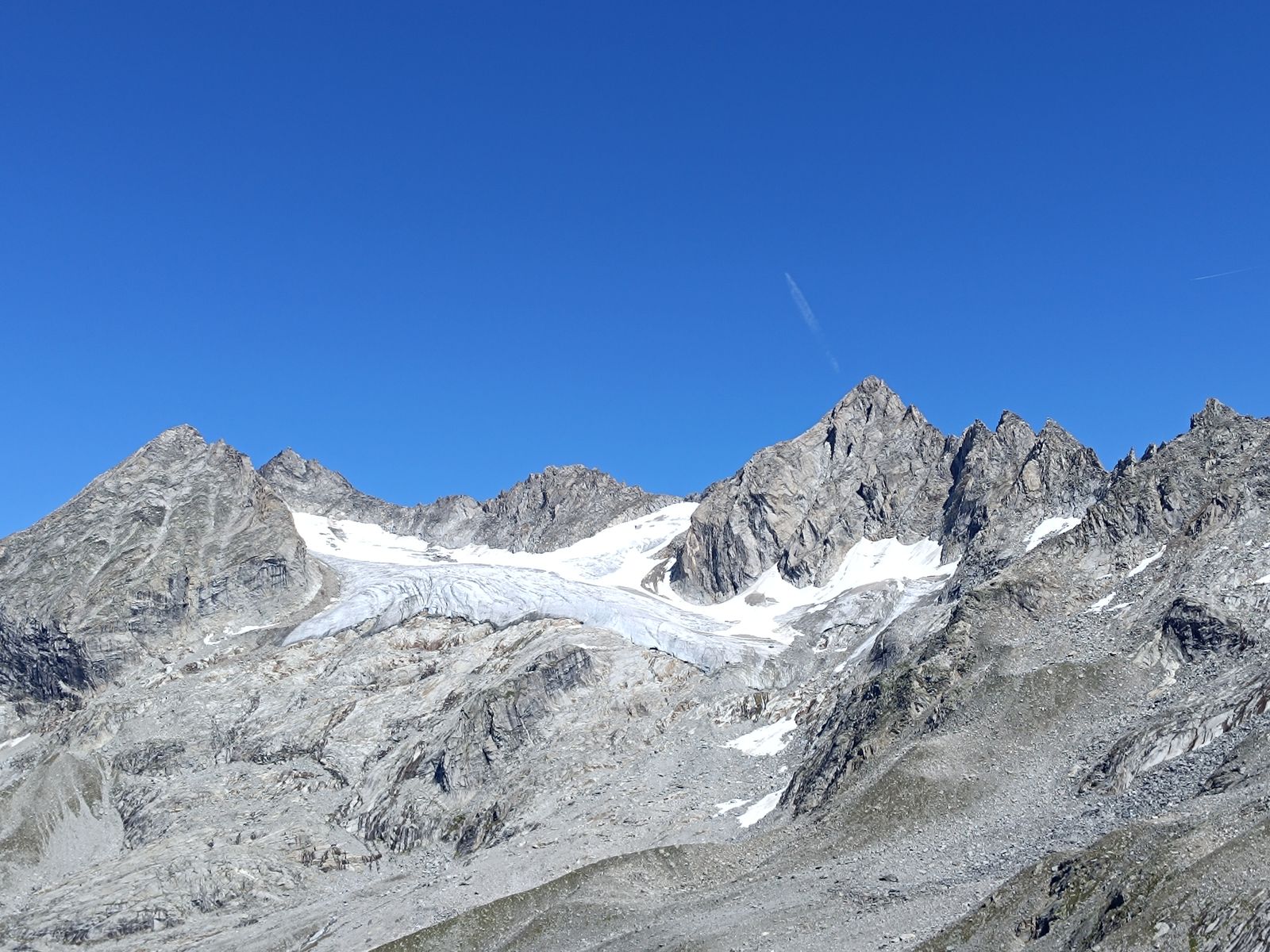 Anforderungen: Etwa 1800 Hm (zwei Gegenanstiege) und um 25 Km Strecke, 8-10 Stunden. Bis Stettiner Hütte T2/3; wirklich ganz einfach - selten erreicht man eine hochgelegene Hütte so leicht. Obwohl die Hohe Weiße von allen Seiten wild ausschaut, ist der Gipfelanstieg nicht schwierig: T4 ohne echte Kletterstellen. Spektakulär ist der luftig Grat in der Mitte des Anstiegs. Von der Stettiner Hütte (mittlerweile steht der Neubau) könnte man freilich auch auf die Hochwilde gehen, aber das hab ich vor ein paar Jahren schon gemacht.