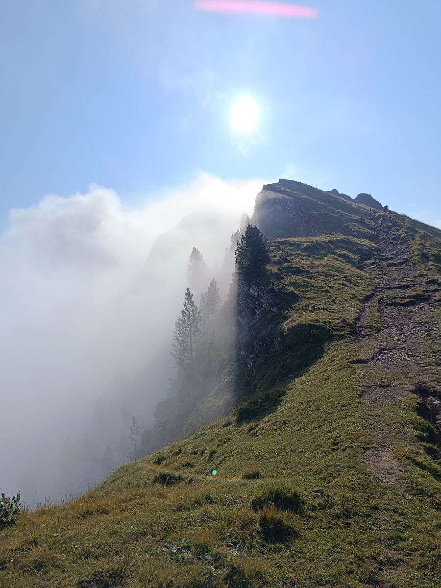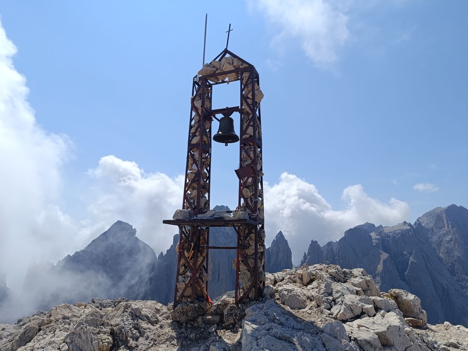 8: Gipfelmadonna in den Wolken. Es gibt auch ein Kreuz, aber Maria ist mir viel lieber.