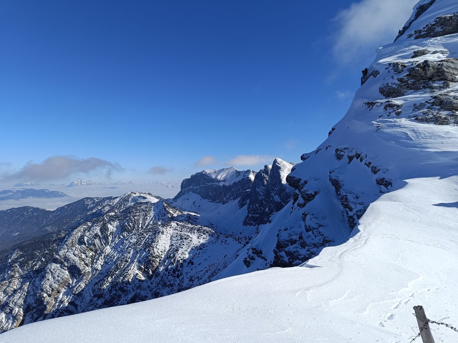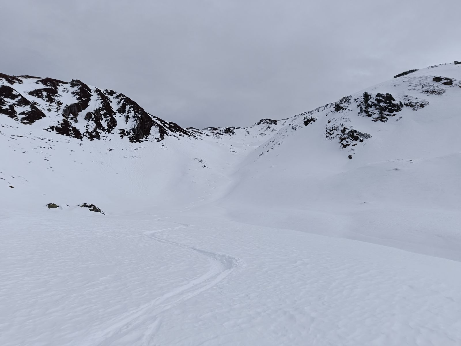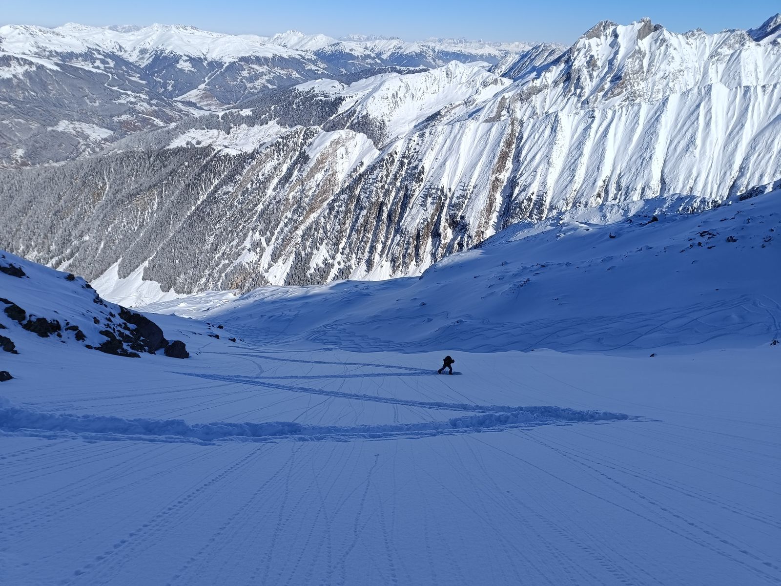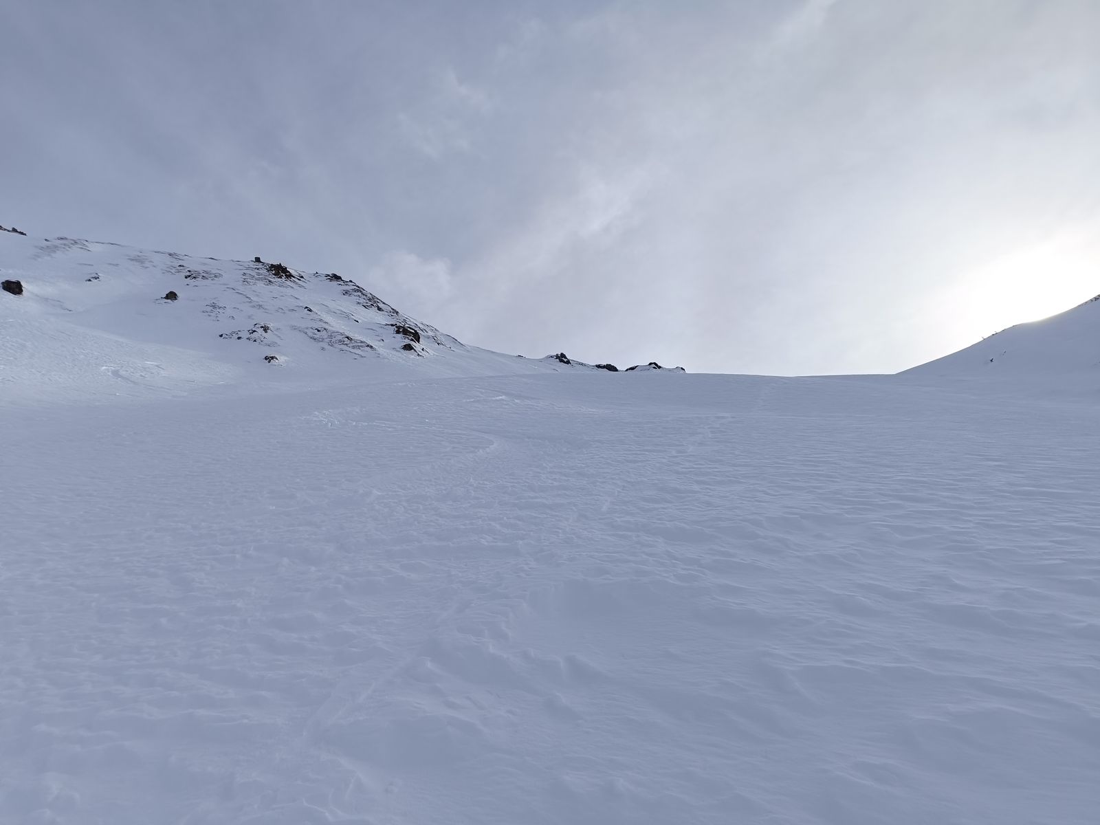 Ausblick: Die Nord- und Ostabfahrten der beiden Gipfel sind schon sehr verspurt; der Kenner wird vor allem am Schwarz aber schon noch unberührtes Gelände finden. Ansonsten sollte man viel befahrenes, sonniges Gelände in den nächsten Tagen tunlichst meiden, weil es da üblen Bruchharsch haben wird - war heute in einen kurzen Teilstück der Talabfahrt (südost) am Nachmittag schon so. Wenig befahrene sonnige Hänge können aber bei entsprechenden Timing durchaus sehr fein sein.