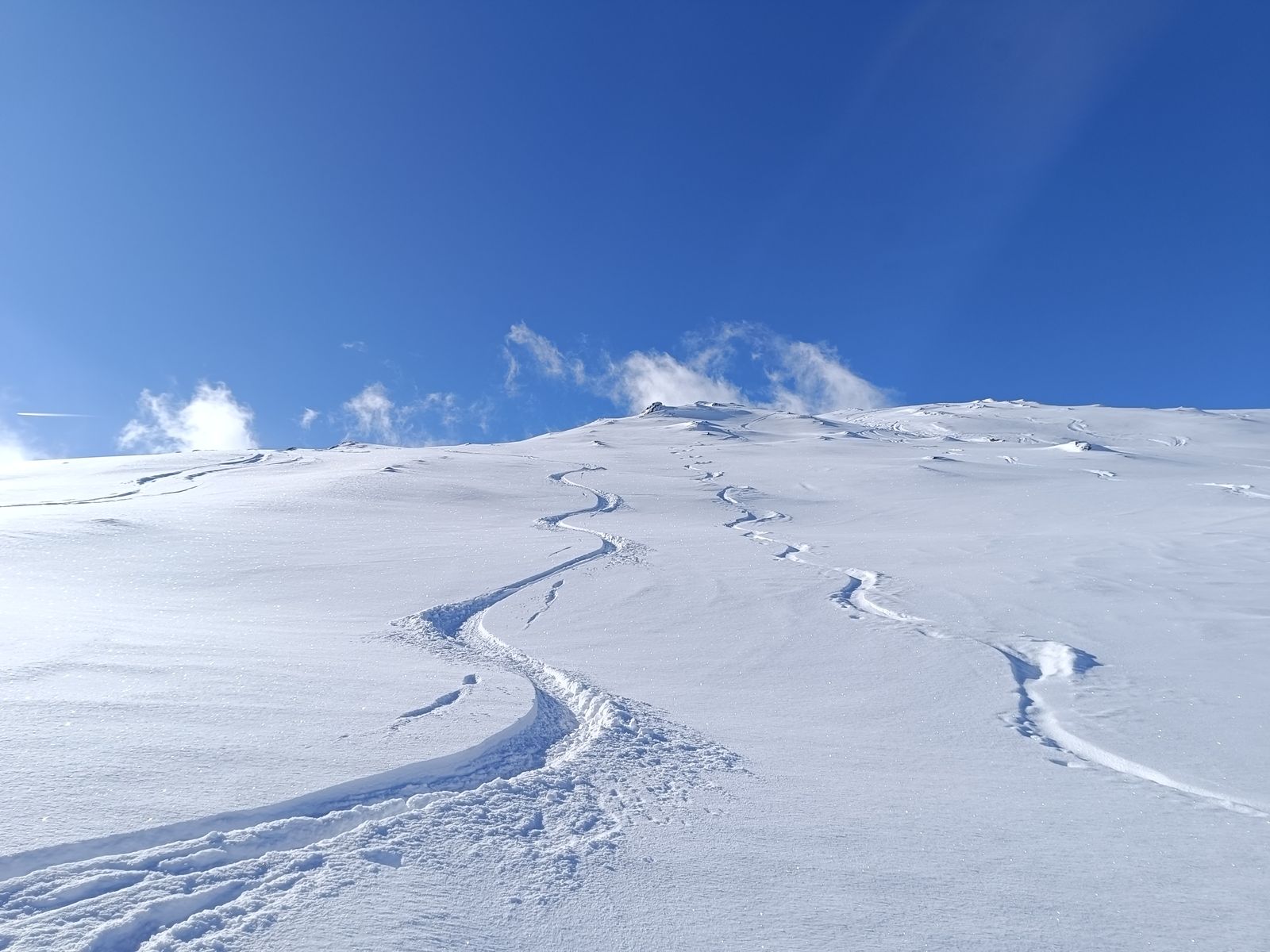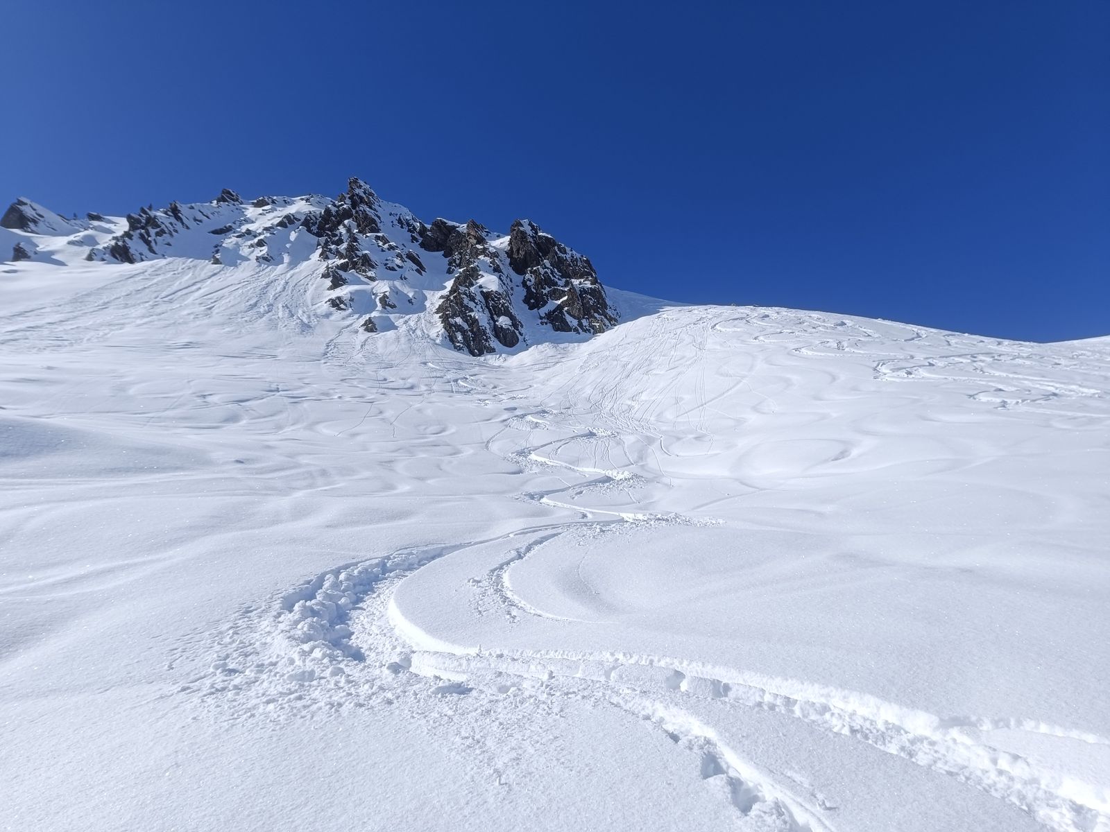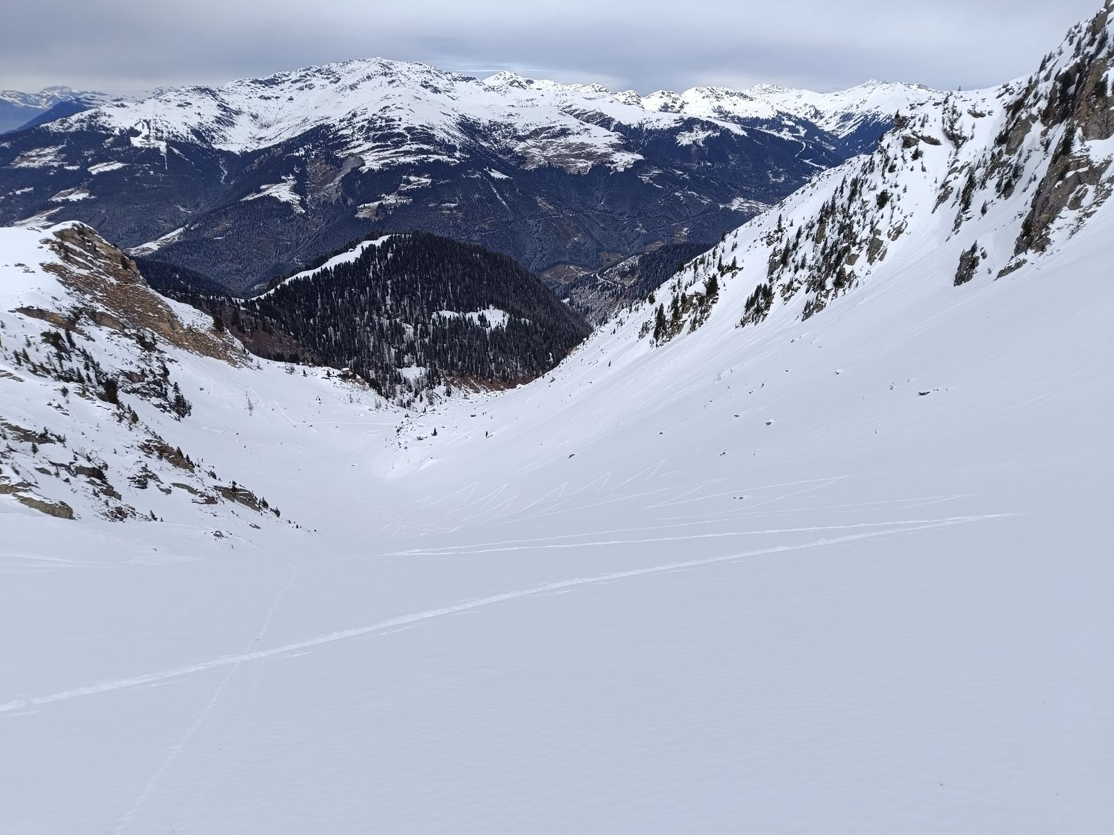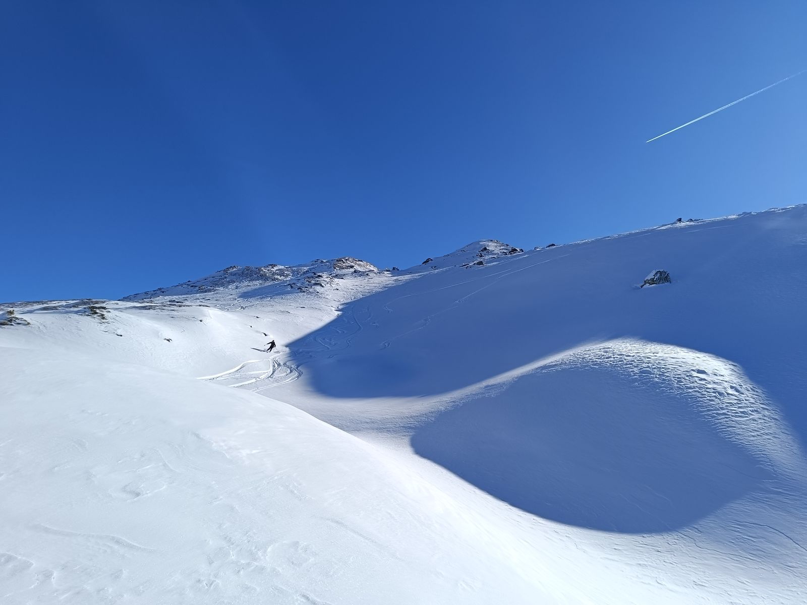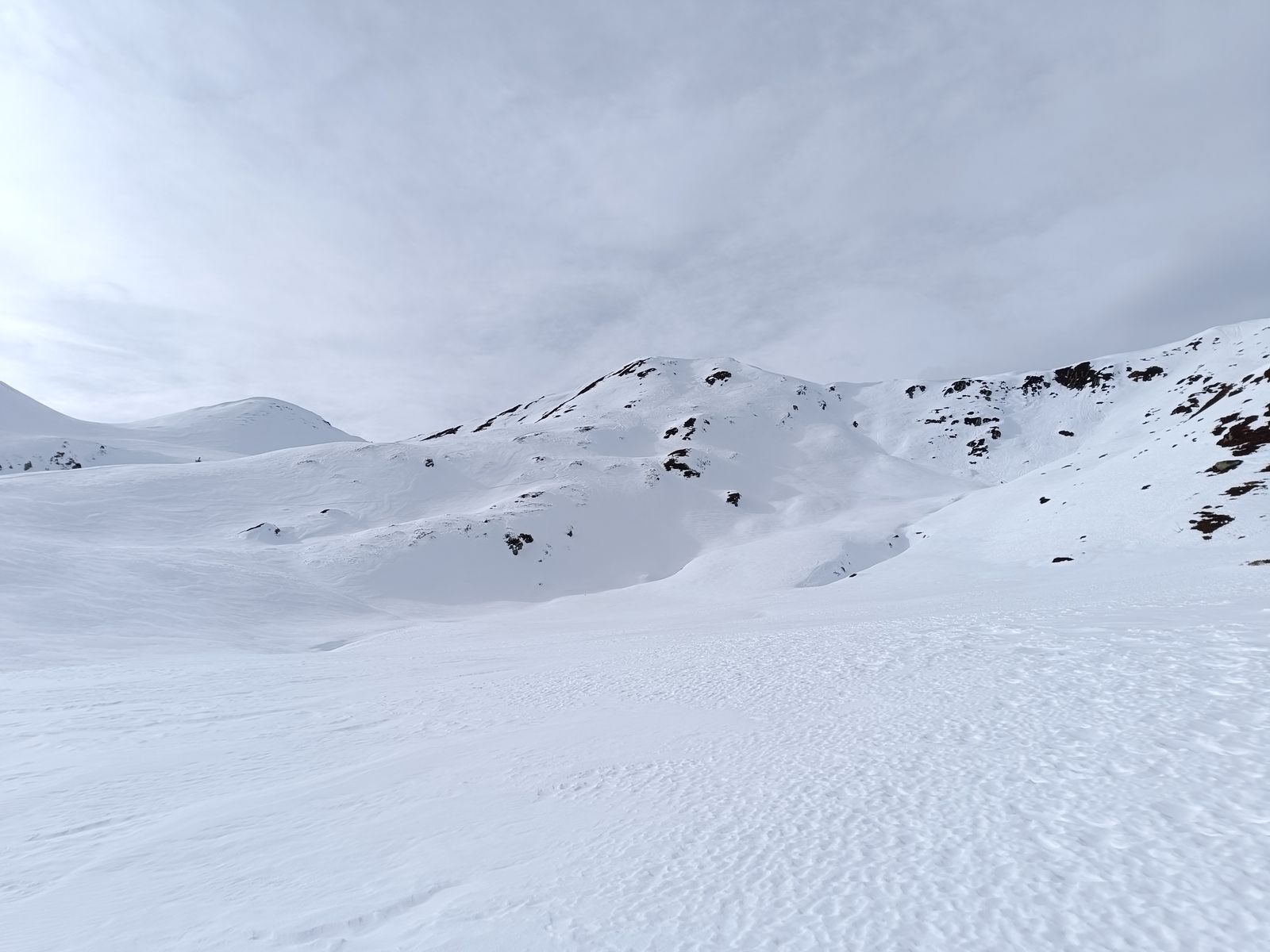 Ausblick: Die Nord- und Ostabfahrten der beiden Gipfel sind schon sehr verspurt; der Kenner wird vor allem am Schwarz aber schon noch unberührtes Gelände finden. Ansonsten sollte man viel befahrenes, sonniges Gelände in den nächsten Tagen tunlichst meiden, weil es da üblen Bruchharsch haben wird - war heute in einen kurzen Teilstück der Talabfahrt (südost) am Nachmittag schon so. Wenig befahrene sonnige Hänge können aber bei entsprechenden Timing durchaus sehr fein sein.