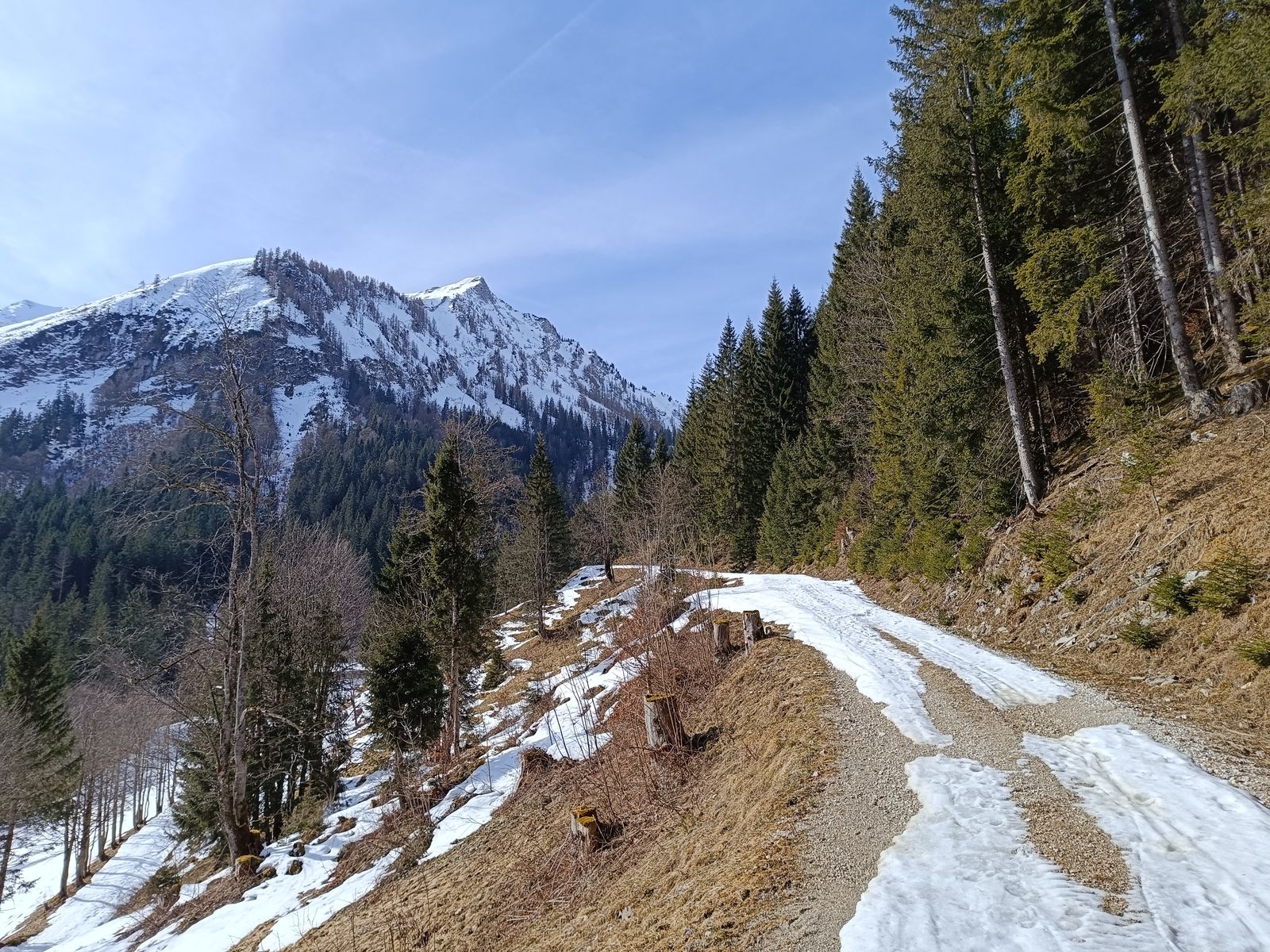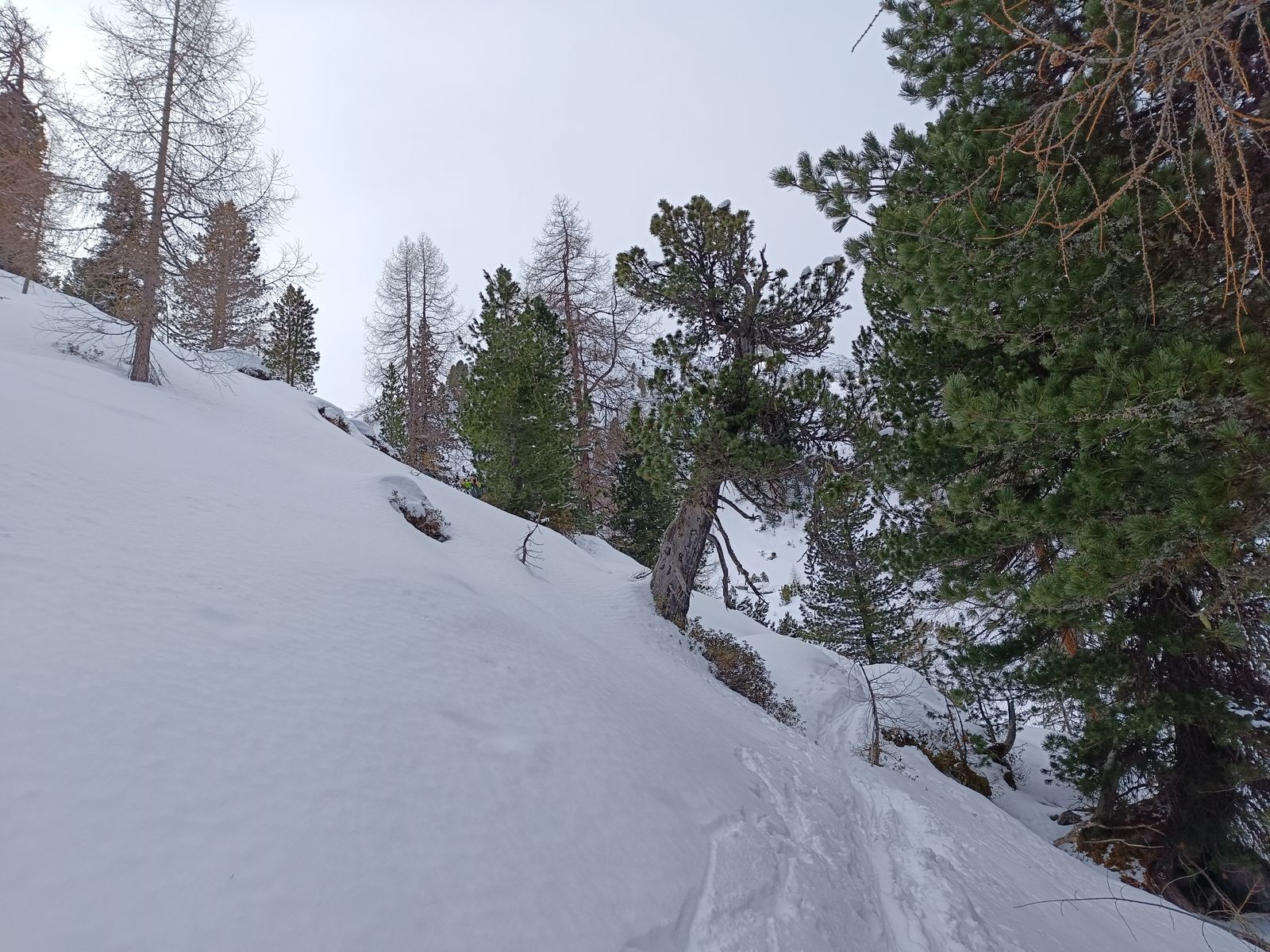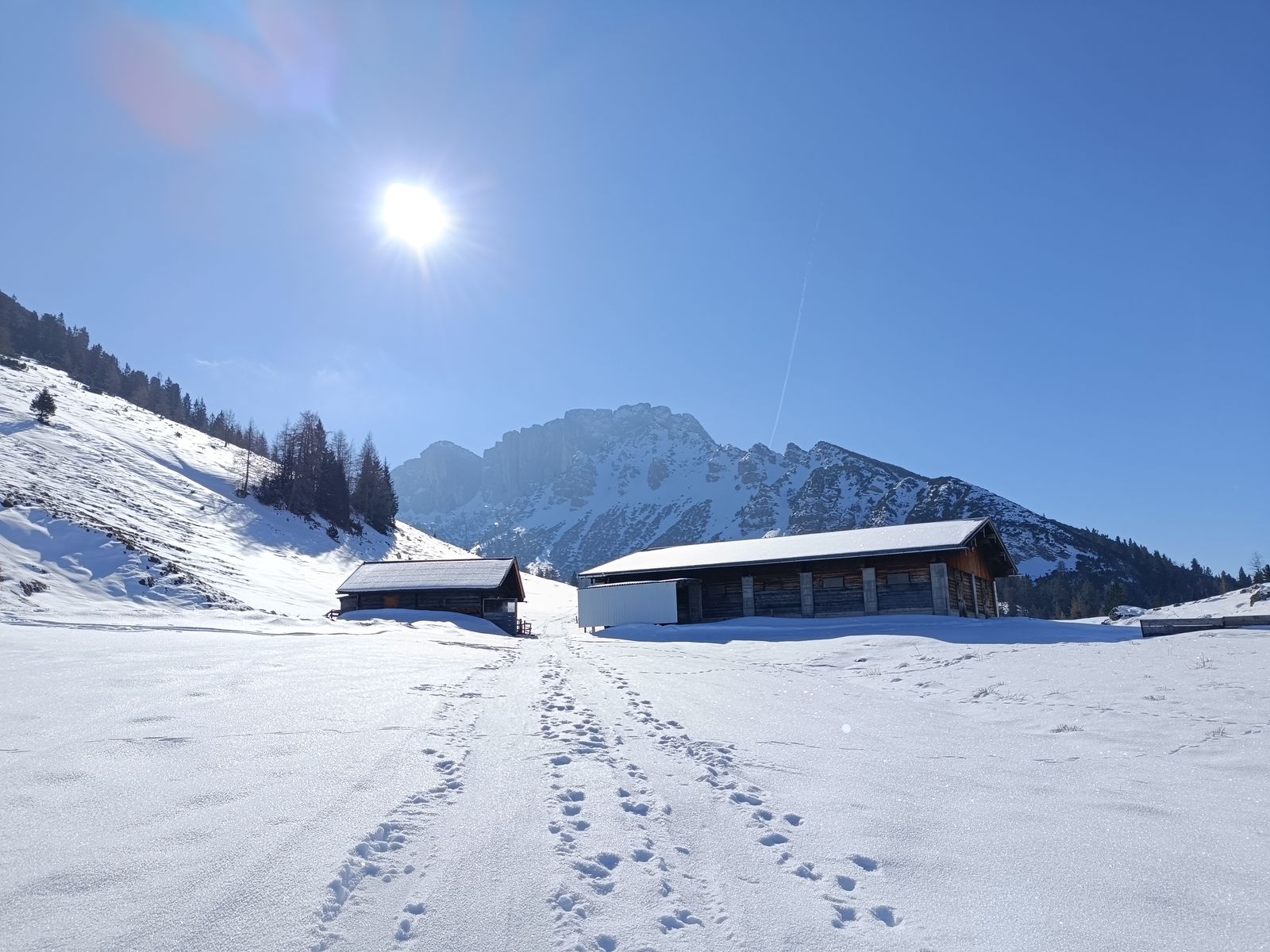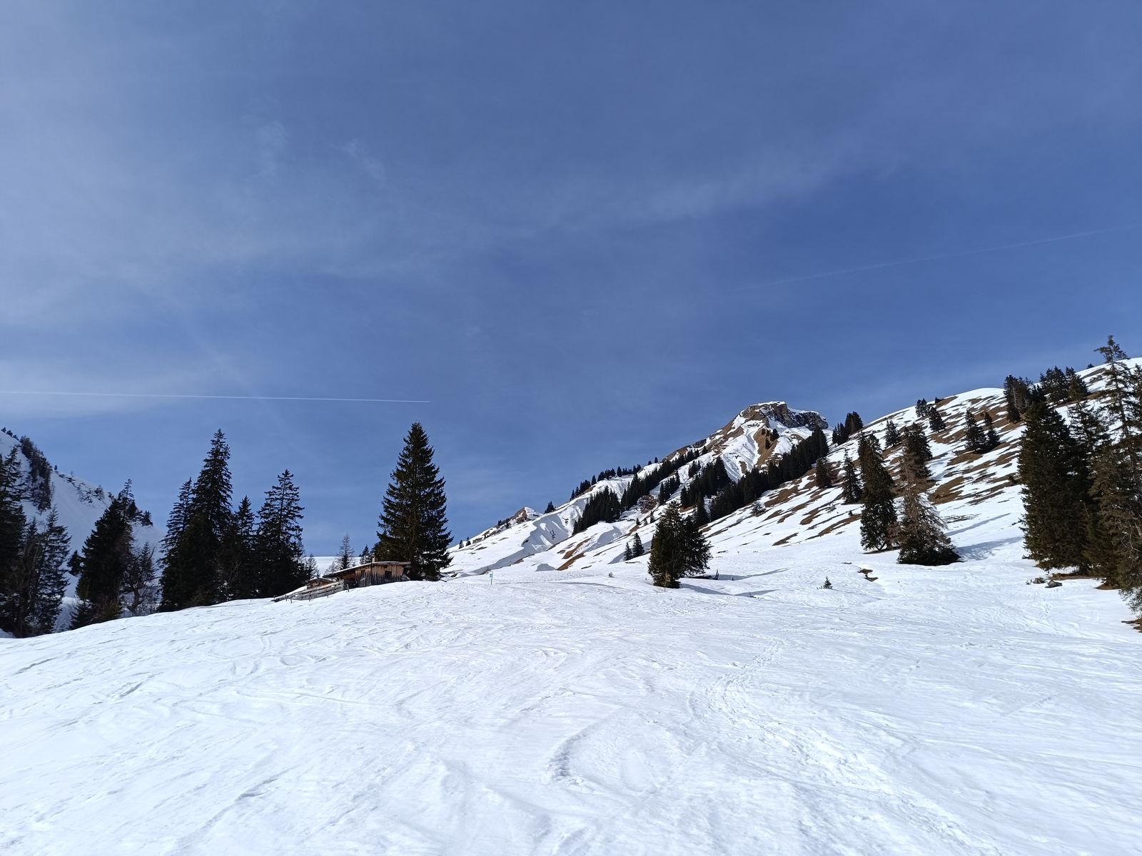 Talabfahrt: Normalerweise ist es üblich vom Tanz- bzw. Schwarzkarkogel über eine der steilen Waldschneisen zur Karalm abzufahren, aber die haben unten raus nur sehr wenig Schnee. Daher ist es momentan besser, sich nach dem Gipfelhang weit rechts zu halten und über die Karhochalm in der Unteren Grund zu gelangen (man passiert dabei den Abzweig zum Westeracherkogel).