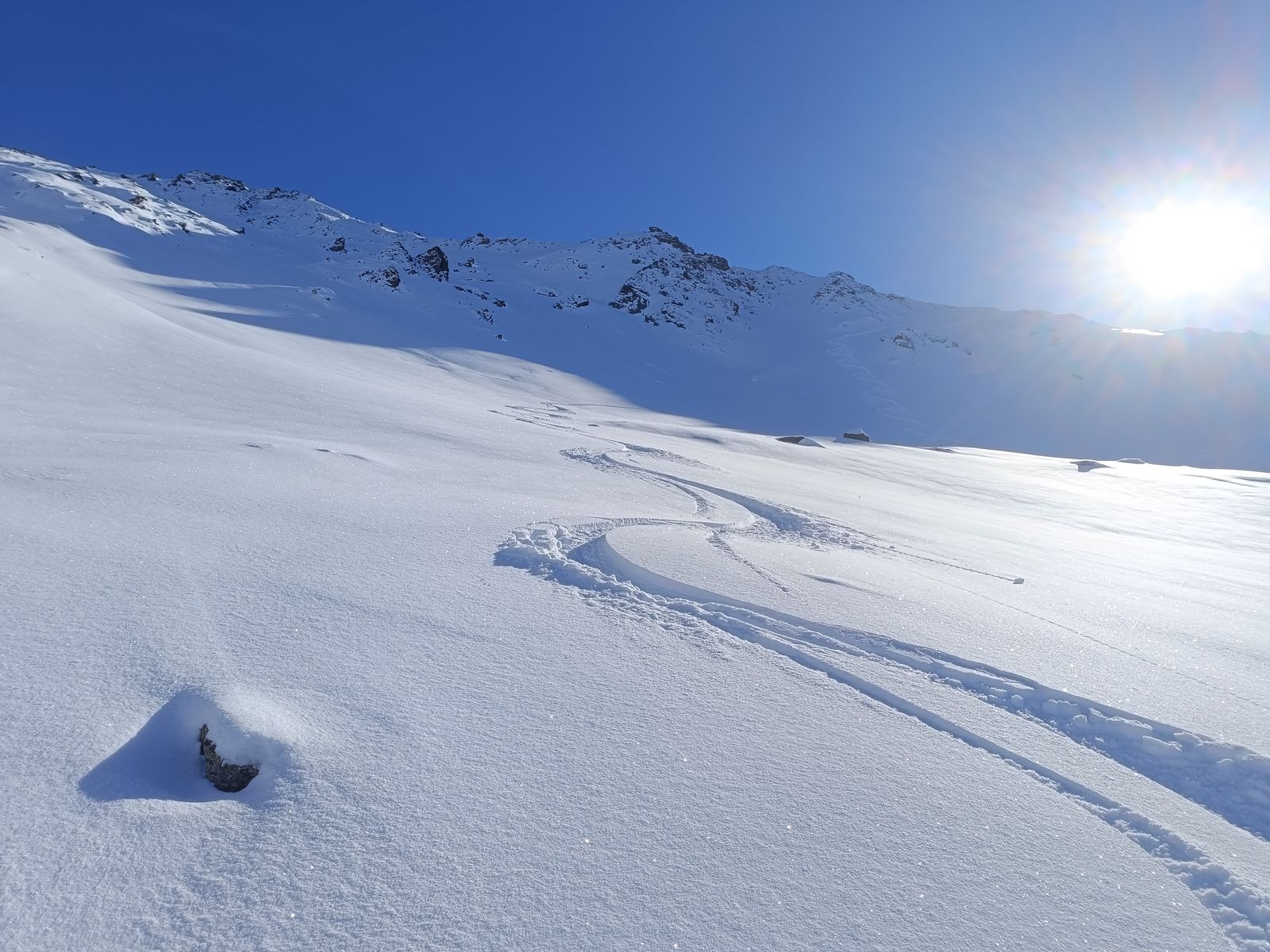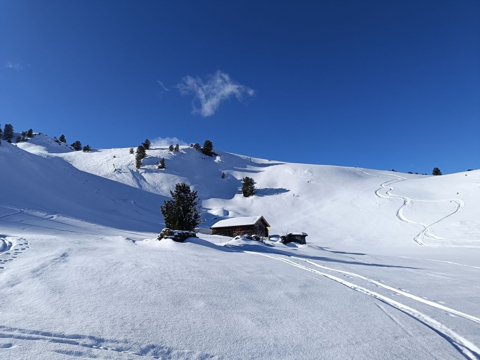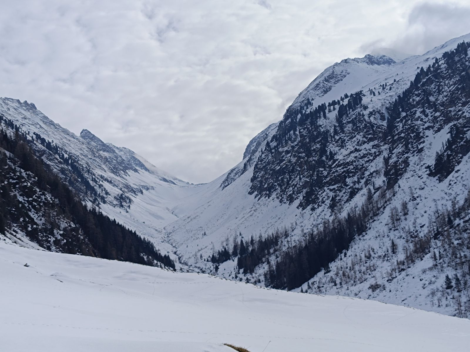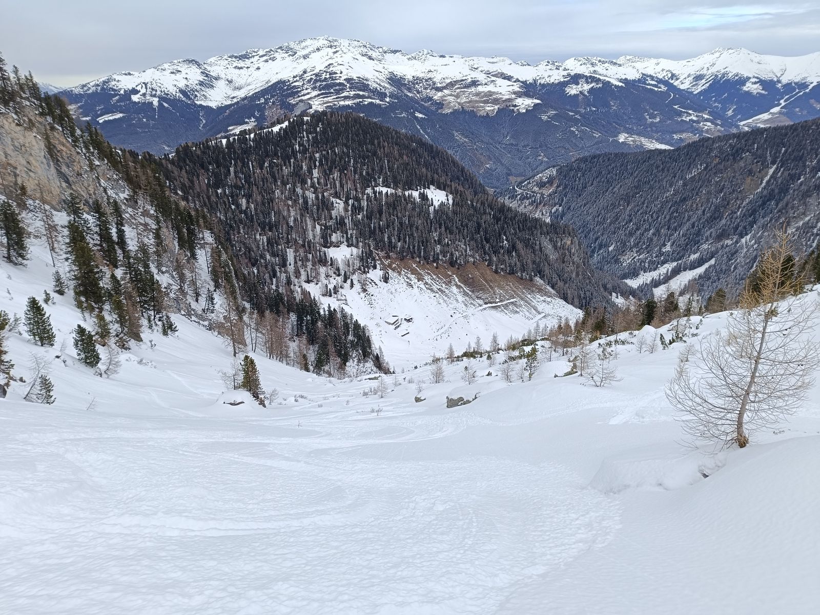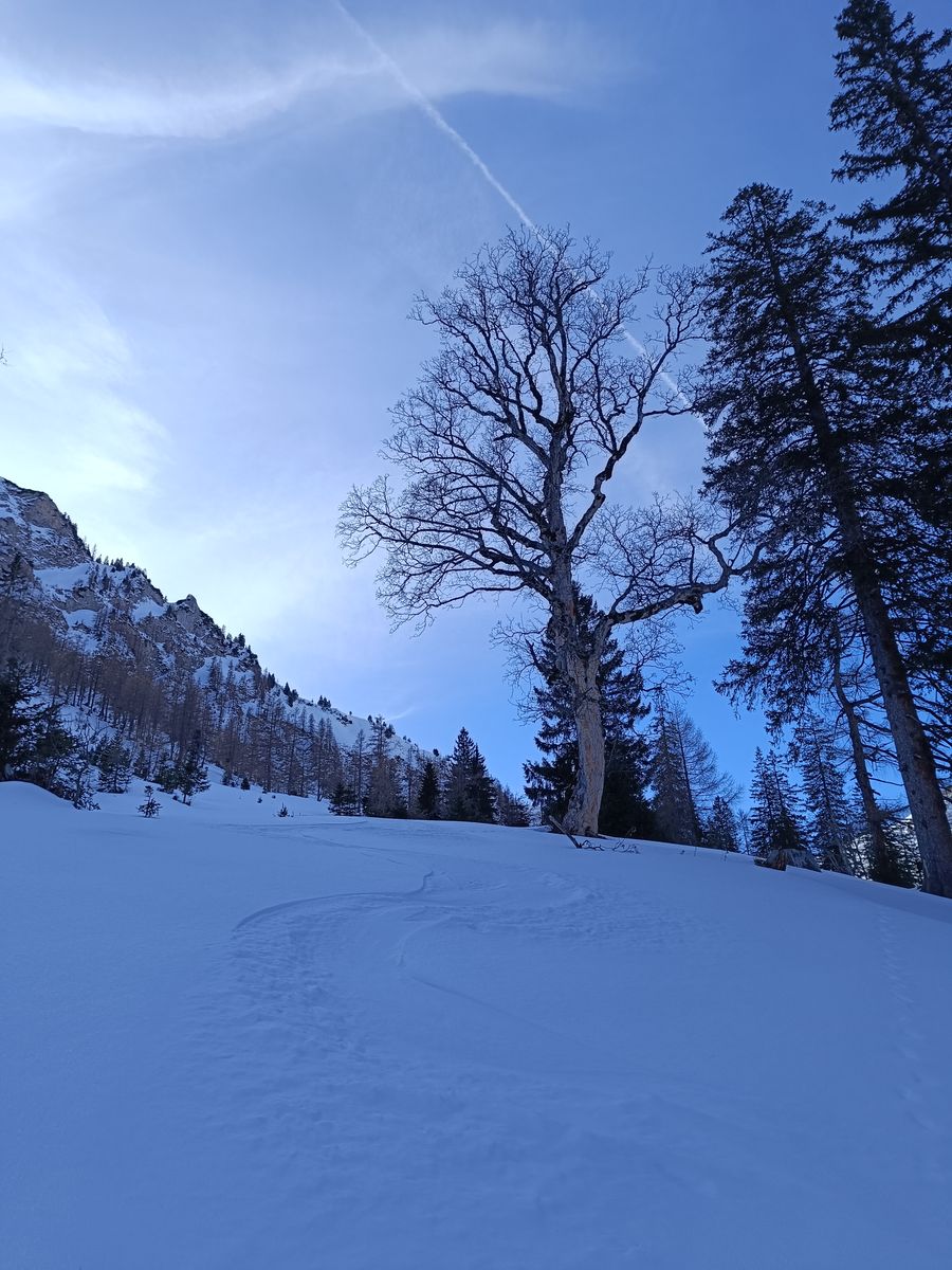 Im Spertental ist die Schneelage oberhalb von 1300m, sowohl was die Gesamtschneemenge als auch den Neuschnee (25-40cm) angeht, deutlich besser als gestern im Jochbergtal - ein Drittel mehr Schnee würde ich sagen.