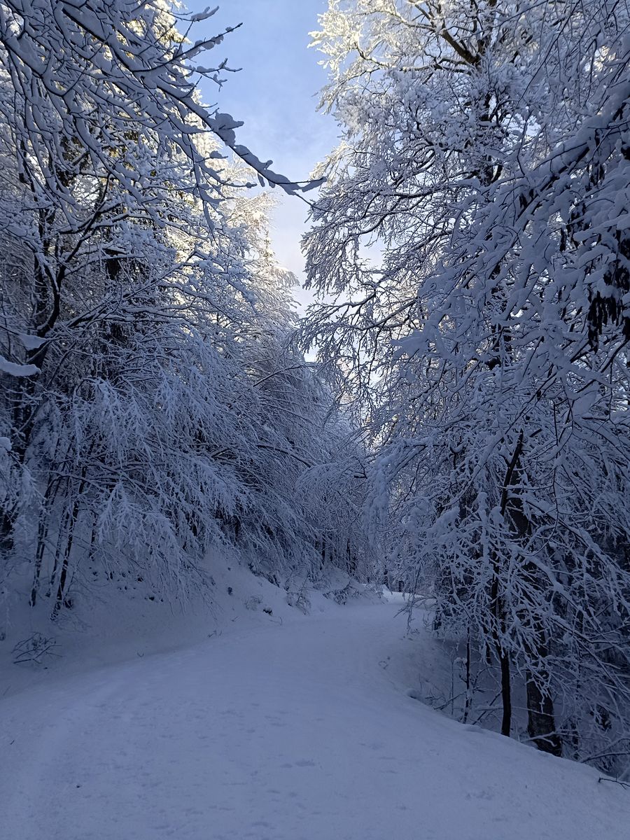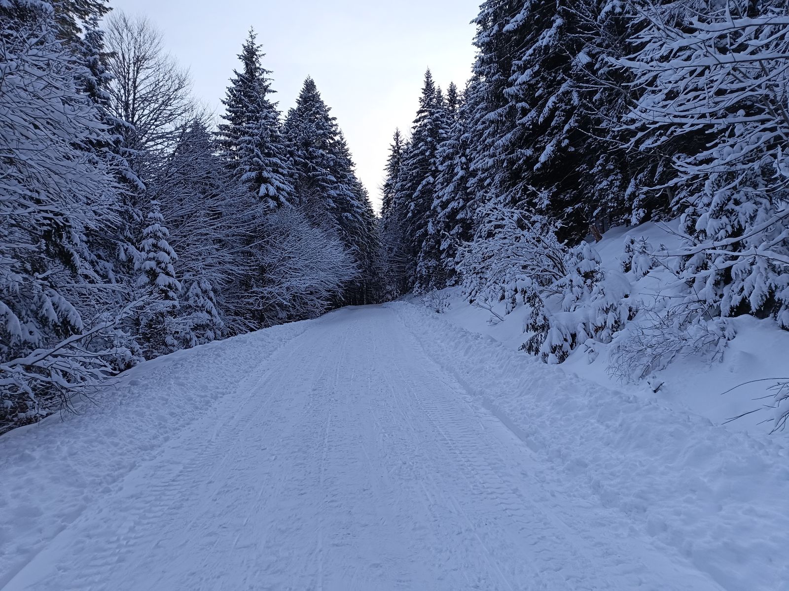 Anmerkung: Warum die Straße zur Schwarztennalm immer recht tief geräumt wird, verstehe ich nicht ganz. Würde Planieren nicht auch reichen? Da der Schnee zum Zeitpunkt der Räumung hier sehr feucht war, wird sich hier bis zum nächsten Schneefall ein regelrechter Eisschlauch bilden. War heute Nachmittag schon sehr hart.