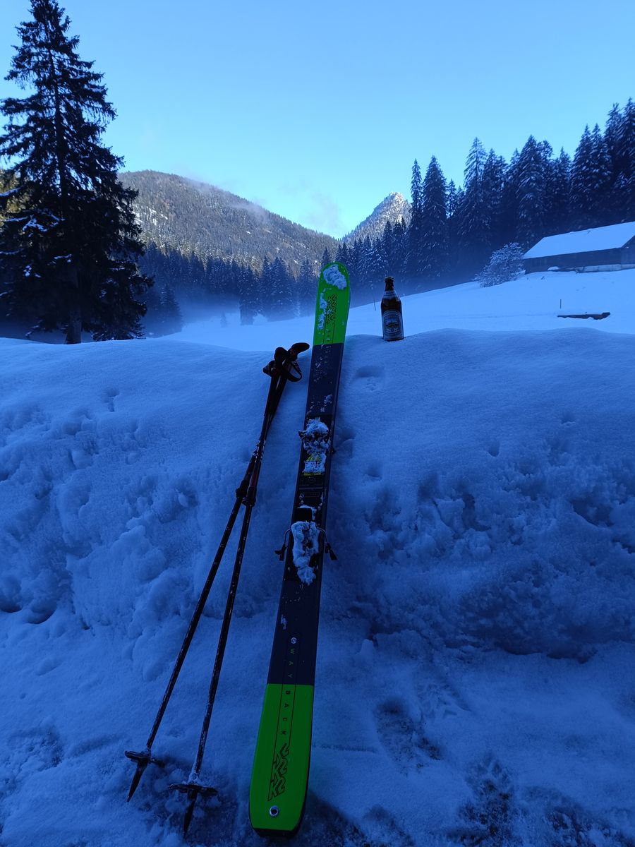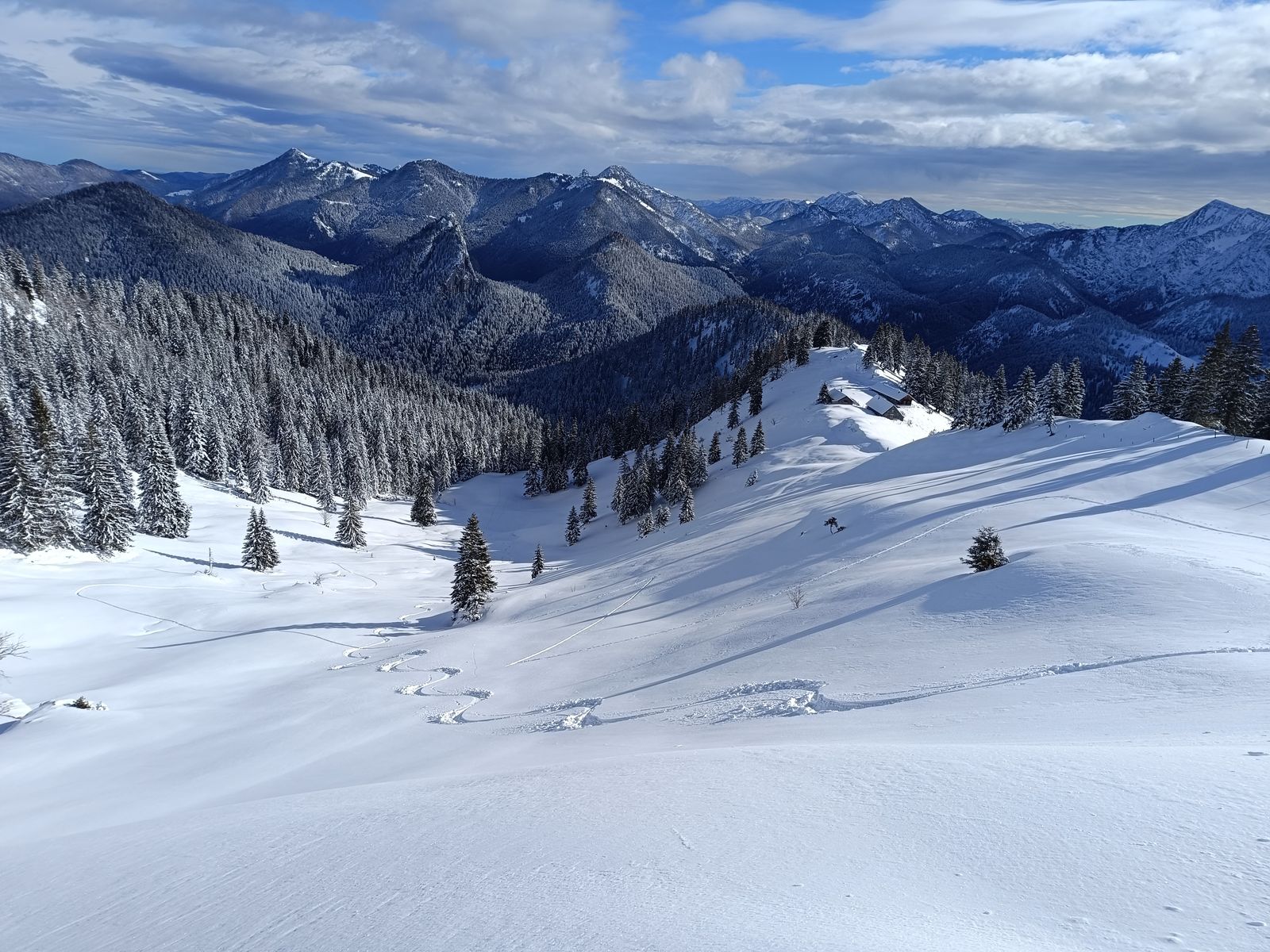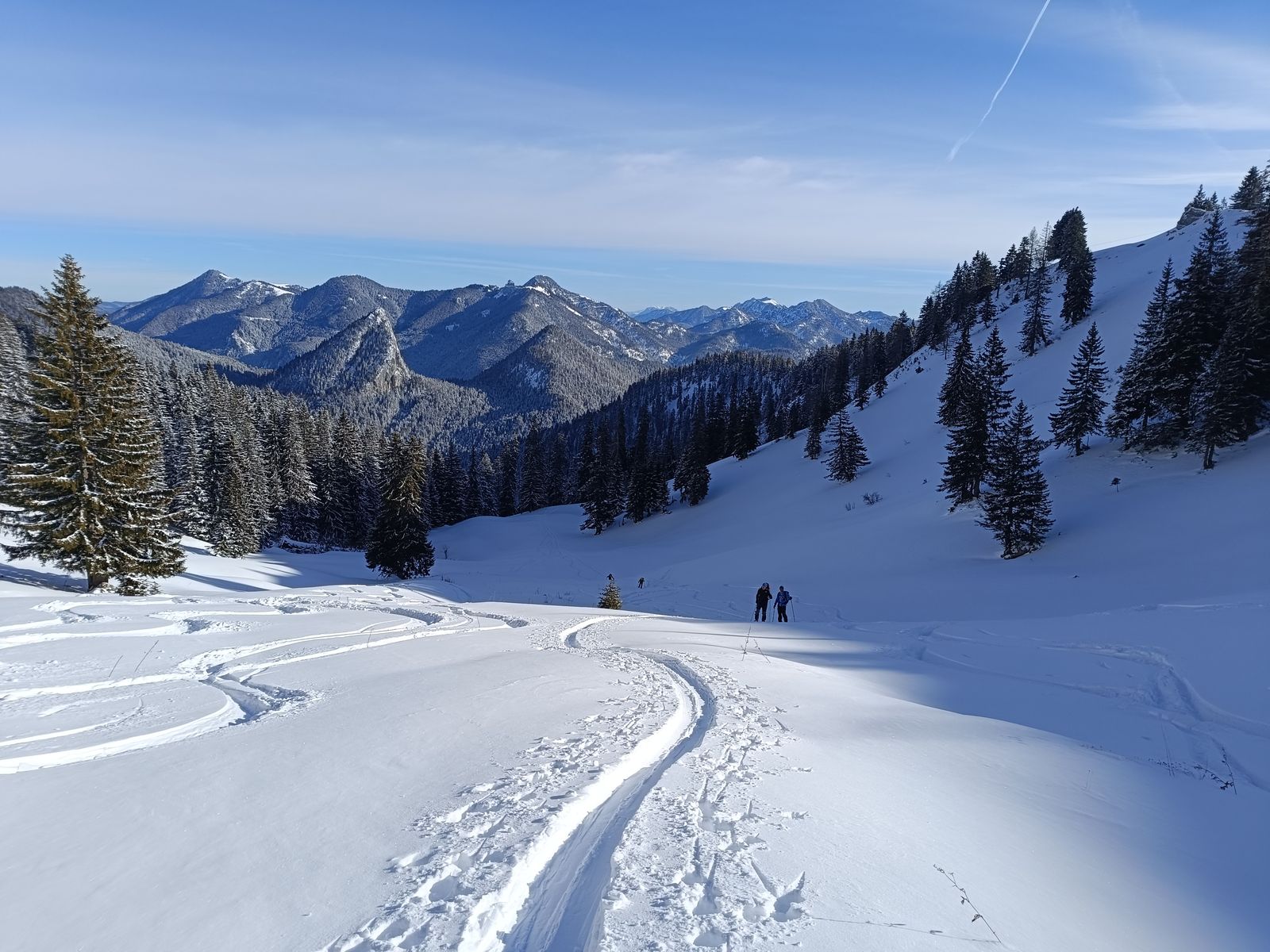 Heute war ich mit dem guten Material unterwegs - immer wieder erstaunlich, was es doch ausmacht, wenn der Ski noch ordentlich Vorspannung hat und nicht völlig durchgenudelt ist. Einsam war es auch. Nur einen Kollegen hab ich am Nachmittag getroffen. Im Gebiet eh noch alles fast jungfräulich. Die Rauhalm-Reibn (Seekarkreuz, Schönberg, Hochplatte) hat ebenfalls bisher genau eine Person gemacht.