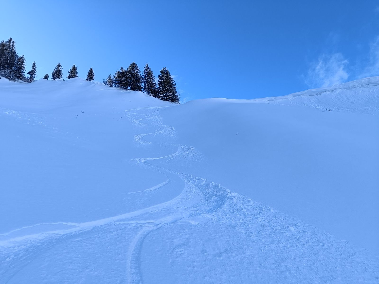 Ausblick: Bleibt in Ost und Nordhängen pulvrig; in anderen Expositionen eher nicht, da es heute ab Mittag sehr sonnig und nicht wirklich kalt war.