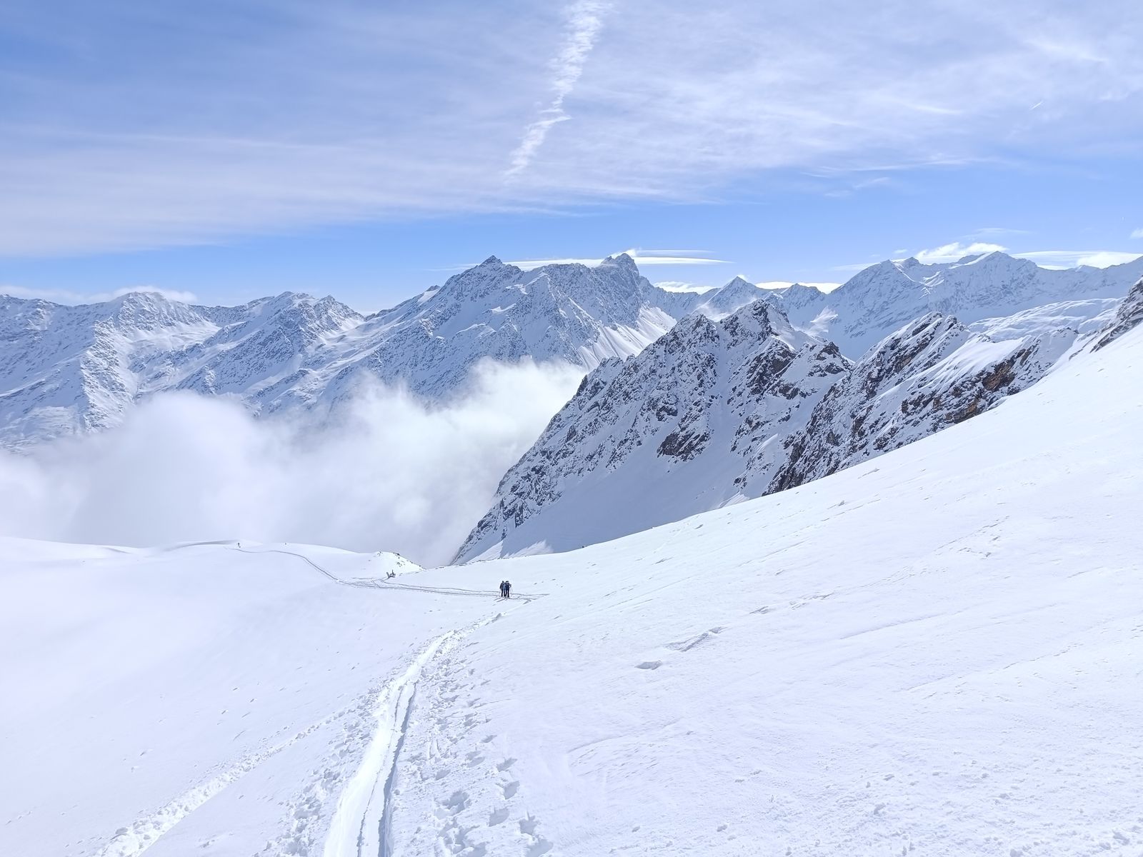 Der war gestern mit seinen Tourenkollegen auch an der Aglsspitze und wir ham ein bisserl geratscht. Sigi ist aus dem Ahrntal und berichtete von sehr guten Verhältnissen. Ich wollte ursprünglich in die Dolomiten, hab aber dann spontan umdisponiert, was kein Problem ist, wenn man eh im Auto schläft. War sicher die richtige Entscheidung - in den Dolomiten heute auf Firn zu spekulieren, wäre bei der Abkühlung + Wind wohl nicht aufgegangen.