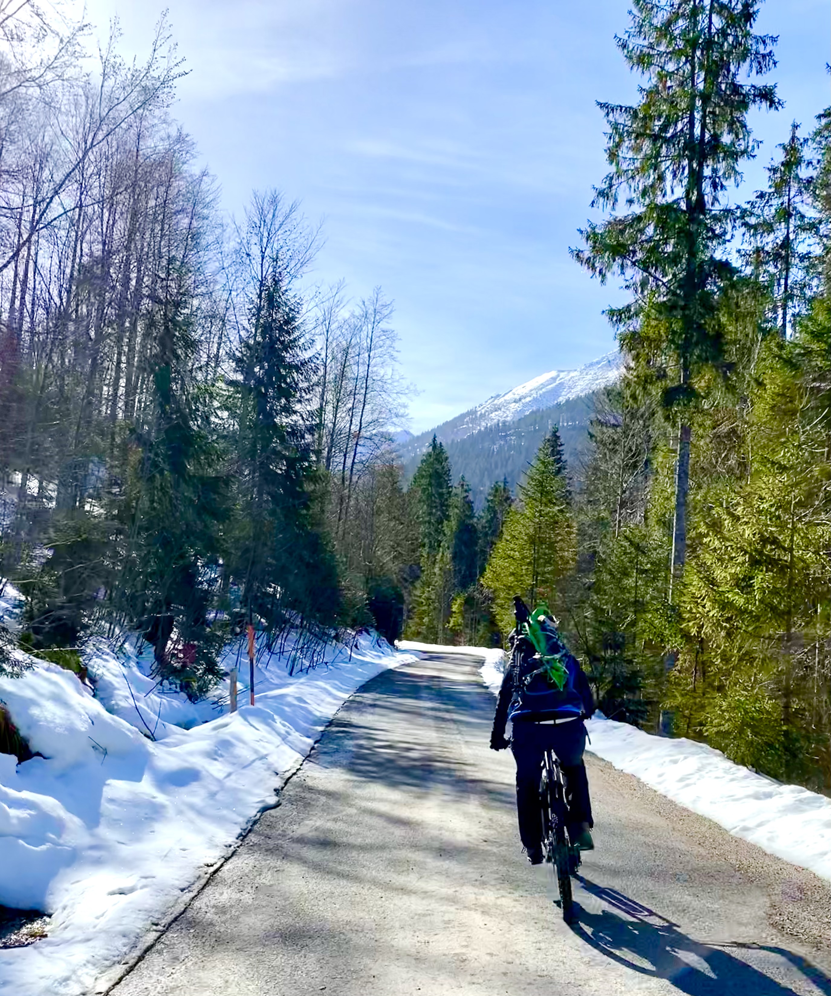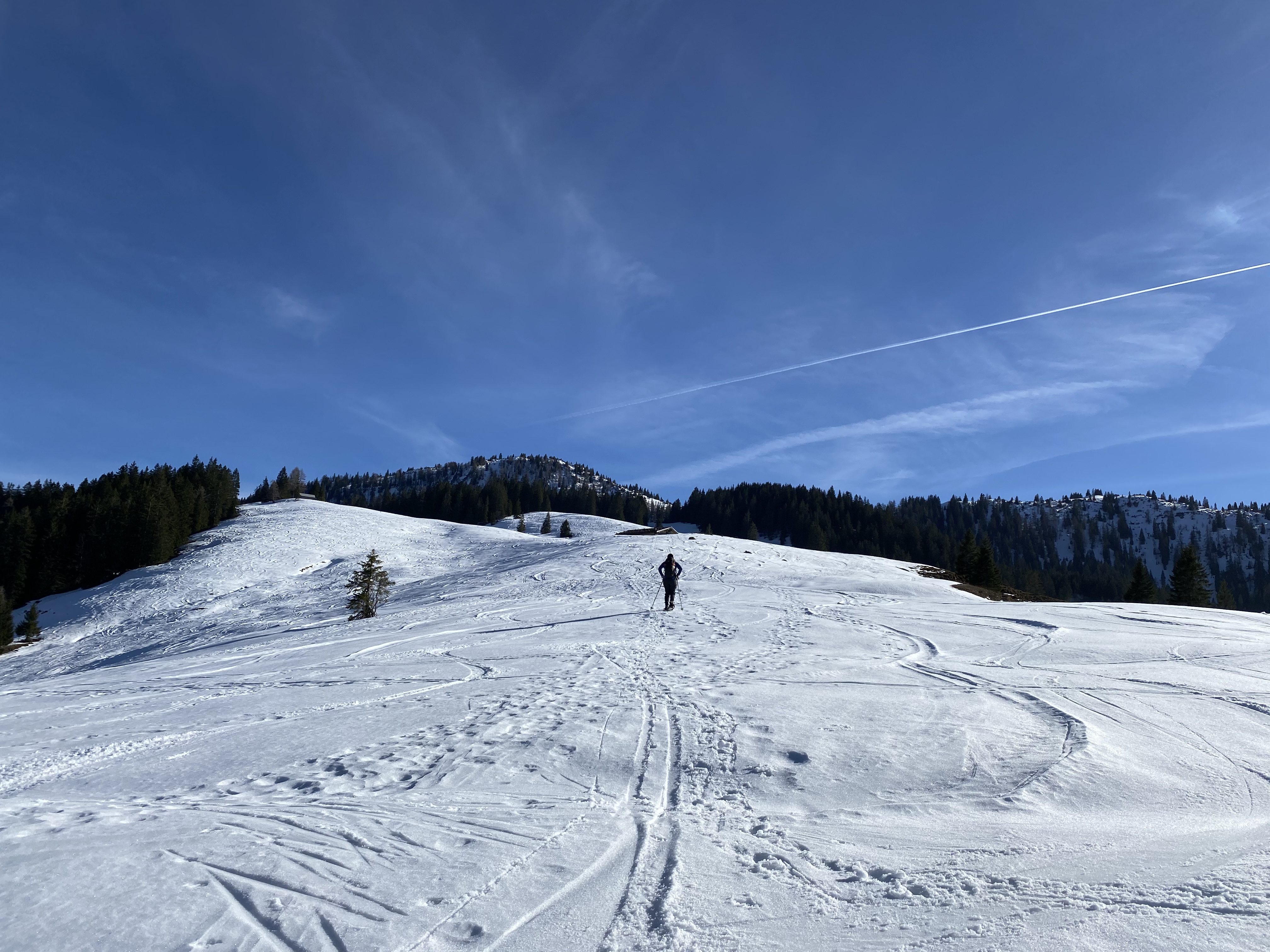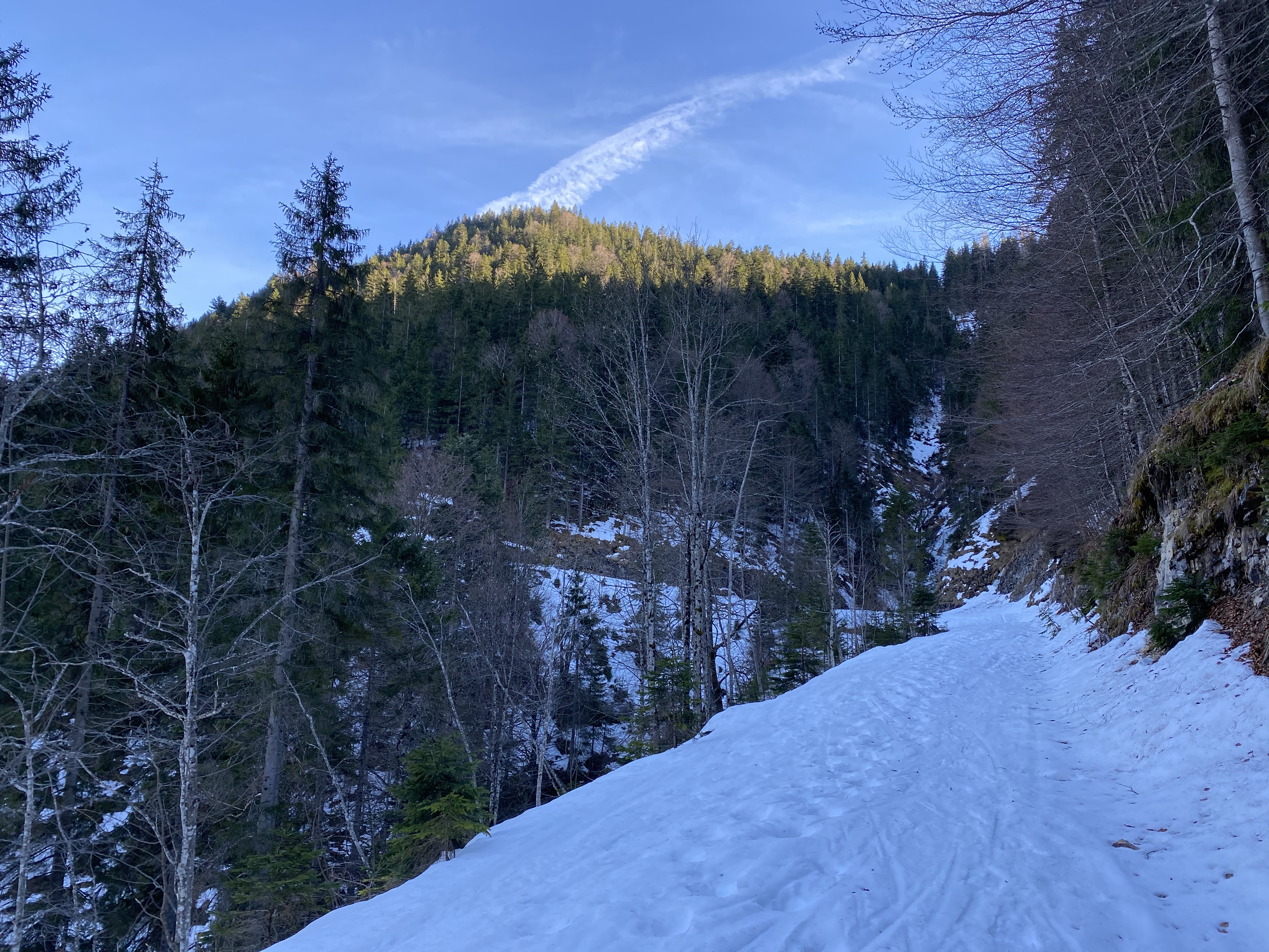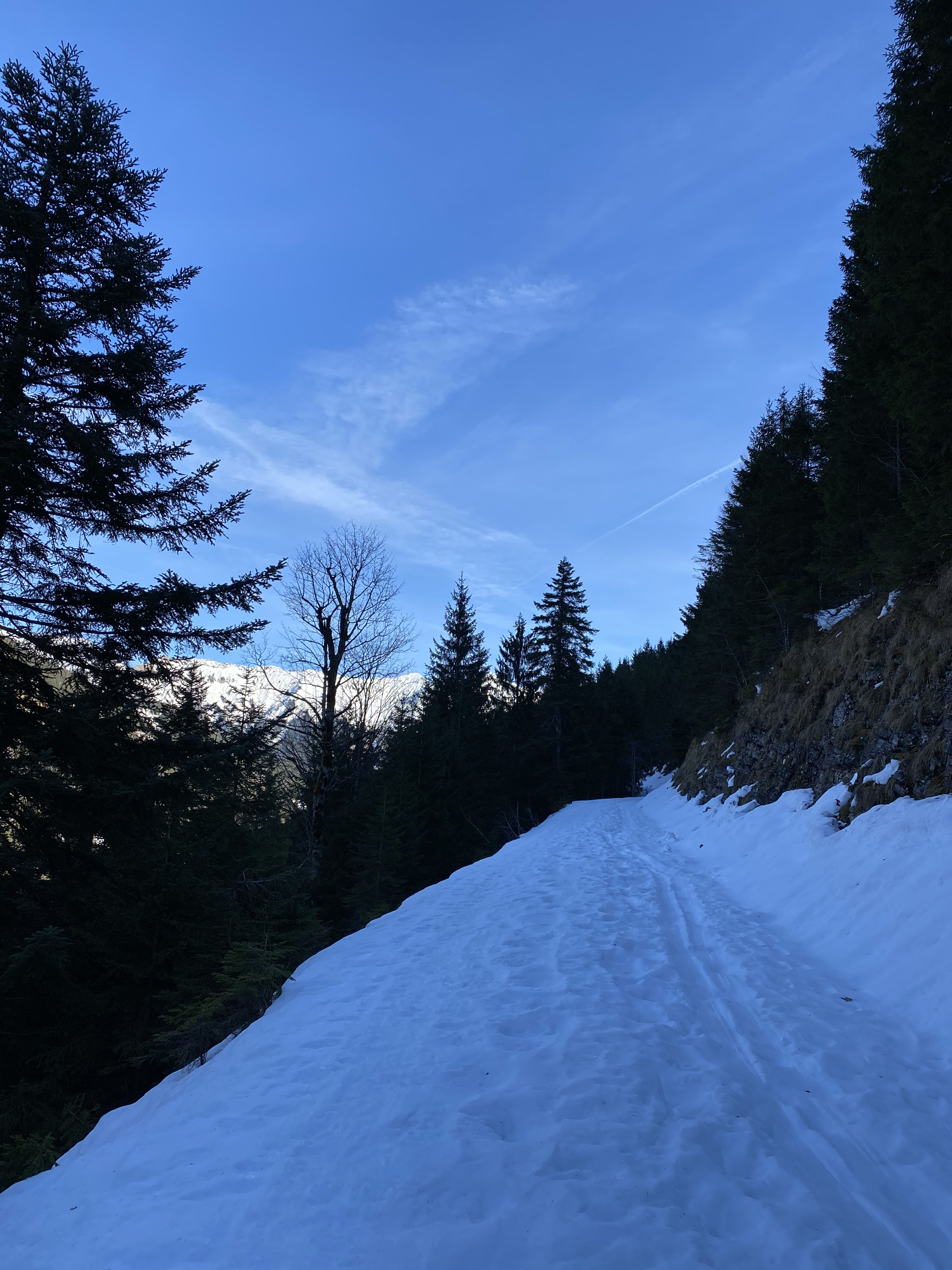 Habe gehört, dass in Seefeld die Piste schrecklich war und dann habe ich mich gegen die Skitour entschieden. Aber eigentlich hätte ich die gleiche Route mit den Ski hoch laufen können und dann auf der Rodelstrecke runter. Es war eh kaum Betrieb🤣
