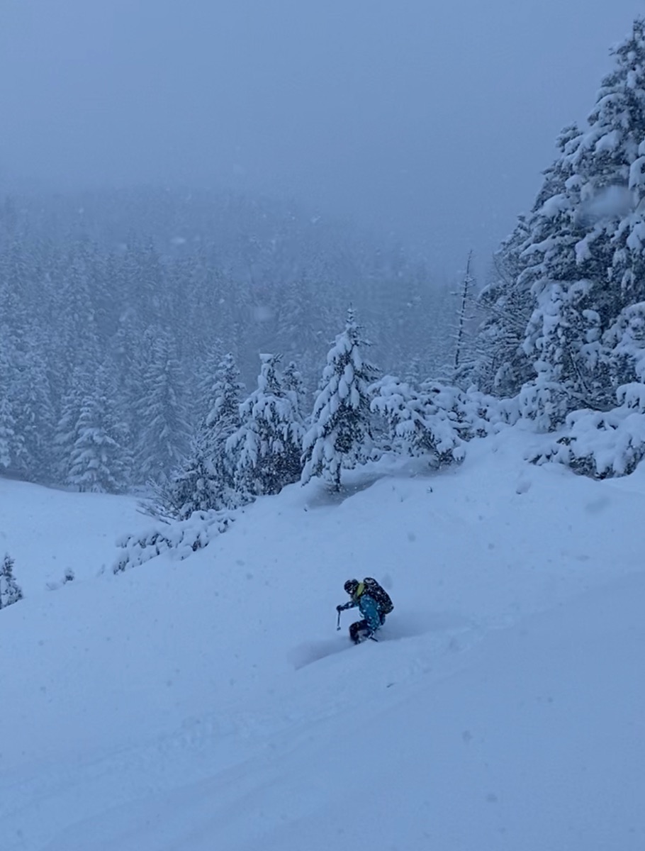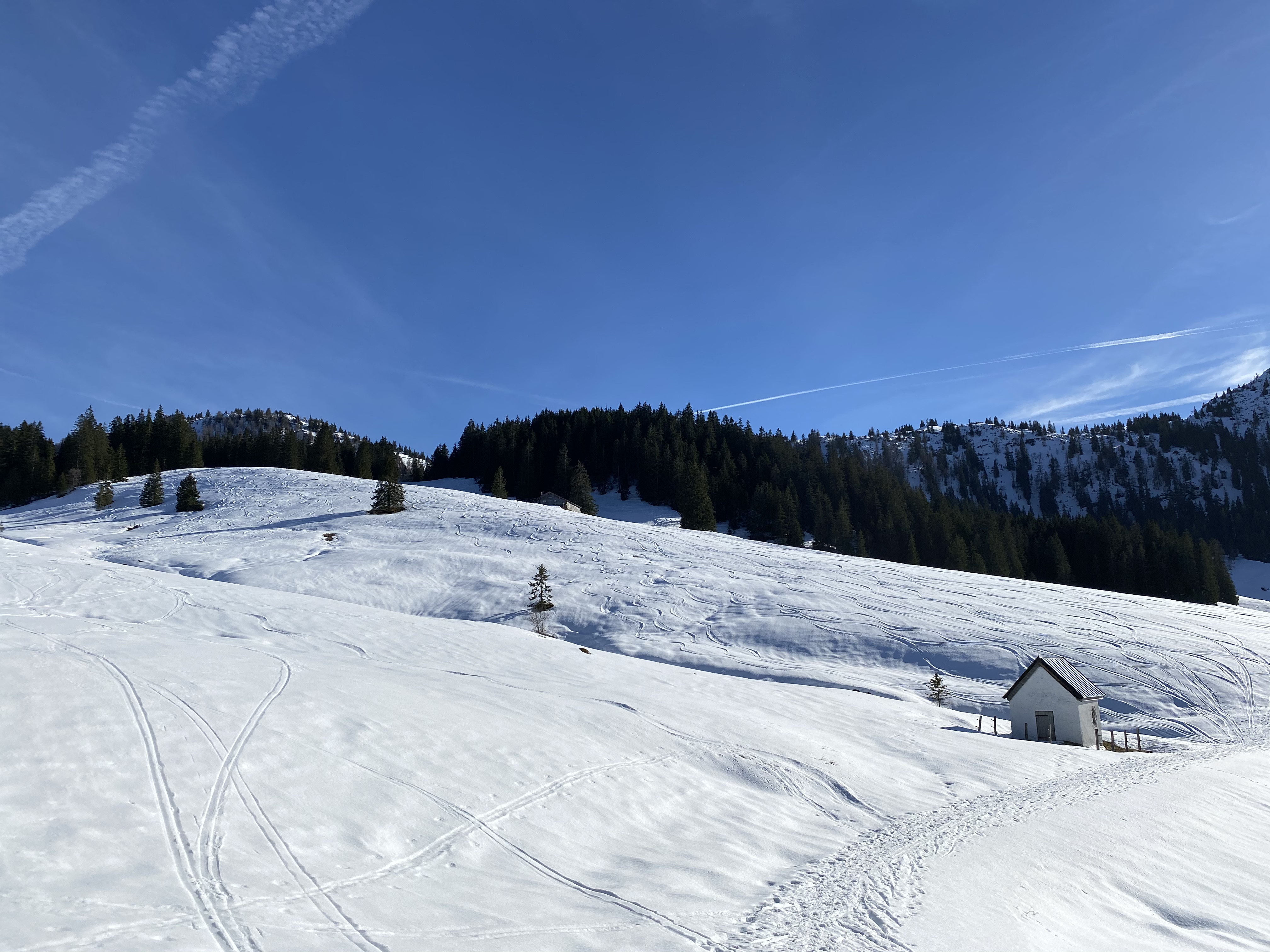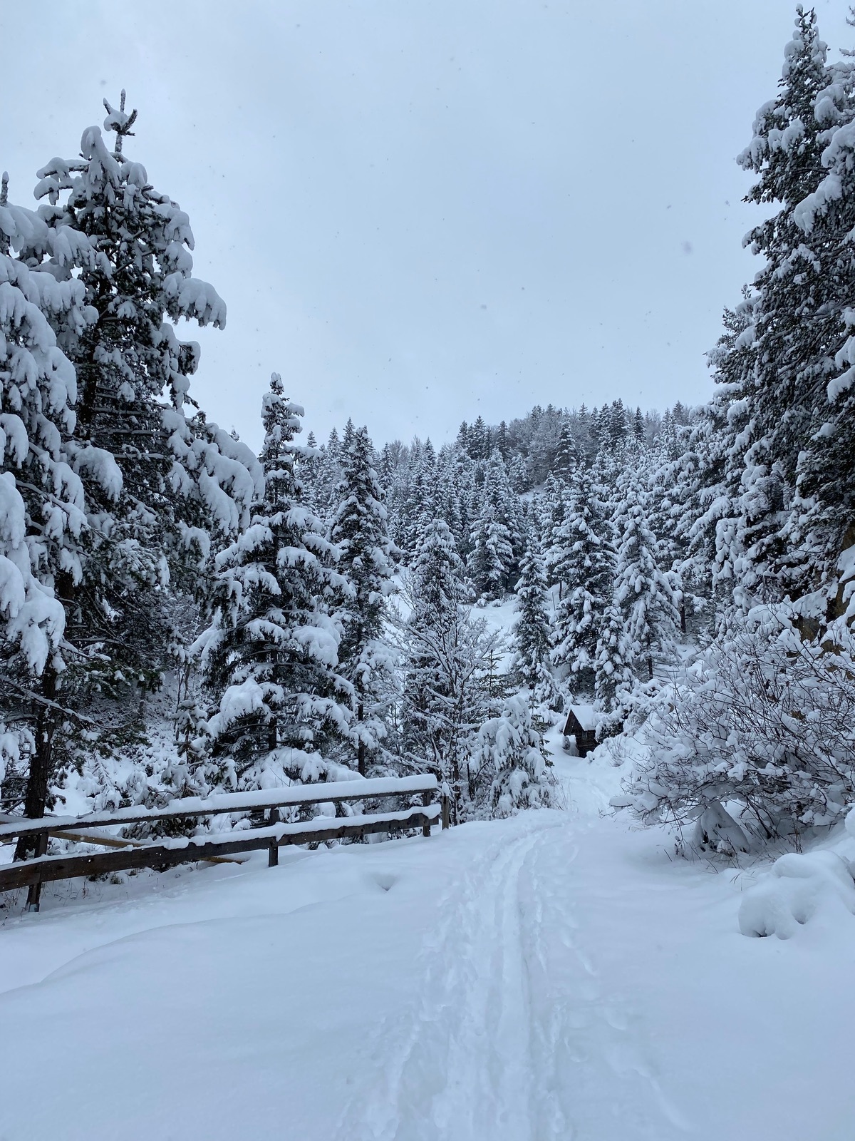 Wir haben heute ein kleines Abenteuer gewagt. Wir waren uns nicht sicher, ob es vom Schnee her für eine Abfahrt reichen würde. Aber wir waren überwältigt! Unten am Parkplatz schaute hier und da noch ein bisschen Gras raus, aber die Pistenraupen haben heute angefangen, die Piste zu walzen. An der Höhe nach dem ersten Schlepplift war es dann Winterwonderland pur